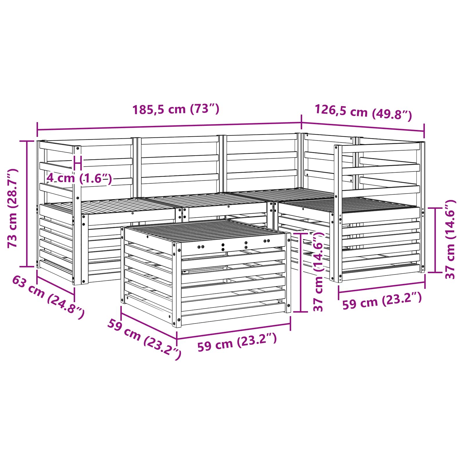 - 1 x Kotna sedežna: 63 x 63 x 73 cm (D x Š x V)