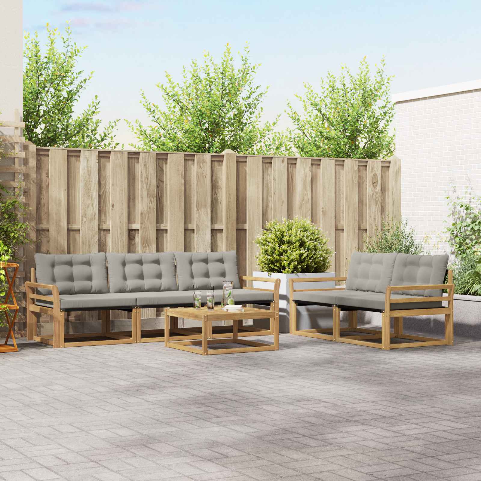 Set zunanjega pohištva boringa stil in funkcionalnost, postane središče tvoje terase ali vrta. Sodobna zasnova s čistimi linijami in preprostimi detajli dodaja eleganco, hkrati pa omogoča sproščanje in druženje na zraku. Izdelan iz trdnega akacijevega lesa, ta set je vzdržljiv in bo dolgotrajno privlačen, zato je idealen za vse, ki iščejo tako praktičnost kot tudi estetiko v svojem zunanjem pohištvu. Vzdržljiv trdi akacijev les: Ta set je izdelan iz močnega akacijevega lesa, kar pomeni, da je zelo trpežen in odporen na različne vremenske vplive. Njegova robustna konstrukcija zagotavlja zanesljivo podporo in dolgotrajnost, naravna barva pa lepo obogati vsako teraso ali vrt. Vremensko odporna zasnova: Lakirana površina tega pohištva nudi zaščito pred soncem, lahko dežjem in drugimi zunanjimi vplivi. Poliran videz ohranja funkcionalnost in zunanji izgled, zato bo dolgo služil tvojemu vrtu ali terasi. Komponente in dizajn: Vsi kosi pohištva, od naslonjal do ročno naslonov, so načrtovani tako, da so hkrati stilni in funkcionalni. Dodatne podpore nudijo udobje, medtem ko kohezivna zasnova ustvari vizualno privlačen sklop, primeren za različne zunanje dogodke. Udobje in vsestranskost: Modularna zasnova ti omogoča različne postavitve, da ustreza različnim prostorom in potrebam. Odličen je za počitek, družabna srečanja ali mirno branje, saj se brez težav prilagodi vsakemu okolju, kar povečuje udobje in uporabnost. Enostavno vzdrževanje: Pohodite pohištvo, obrišite površino z vlažno krpo in se izogibajte ostrim čistilom. Redno vzdrževanje ohranja videz pohištva in podaljšuje njegovo življenjsko dobo.
