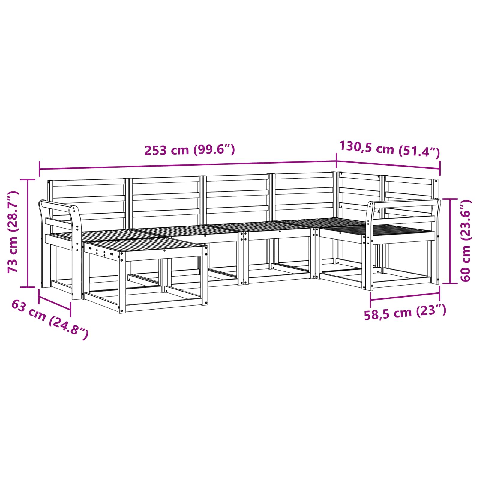 - 2 x naslonjalo: 58,5 x 8 x 60 cm (D x Š x V)