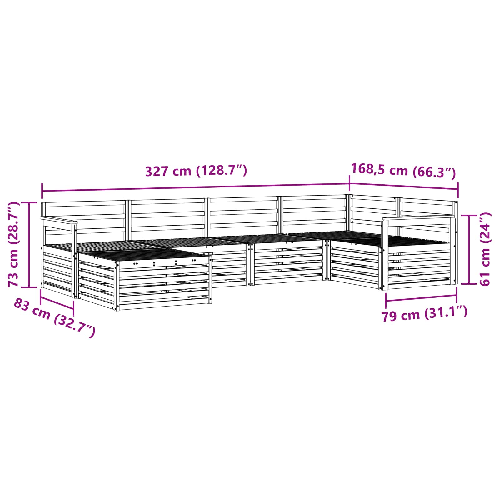 - 4 x srednji kavč: 79 x 83 x 73 cm (DxŠxV)