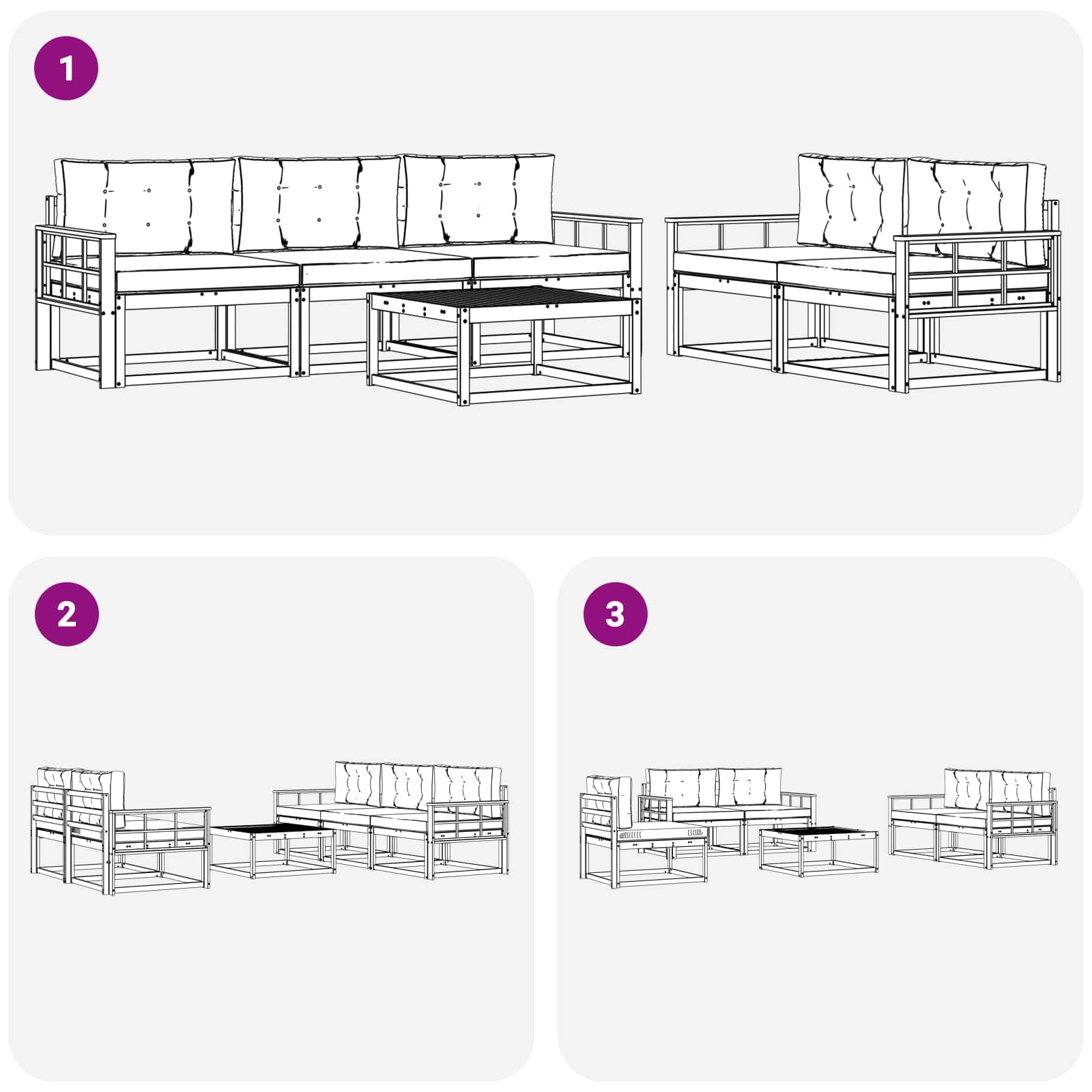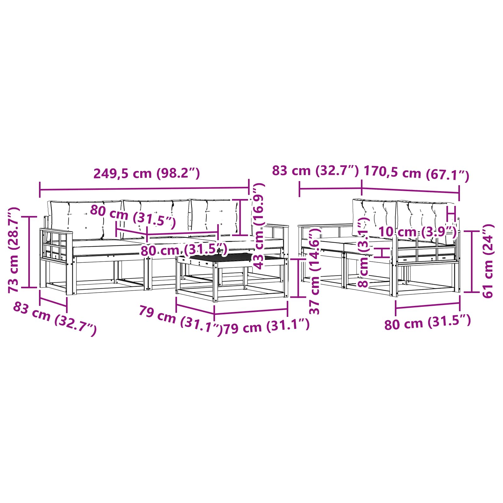- 5 x srednji kavč: 79 x 83 x 73 cm (D x Š x V)