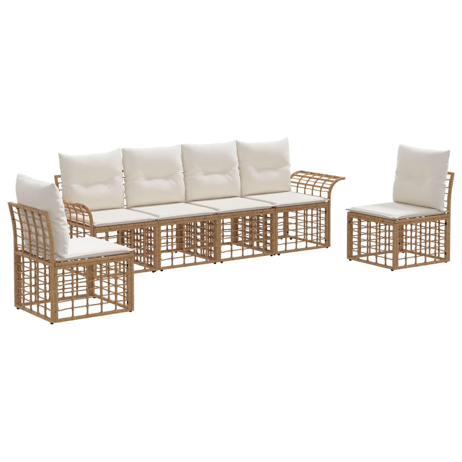 Ta zunanja sekcijska sedežna garnitura je večnamenska rešitev za sedenje na vašem vrtu ali terasi. Kombinira poli ratansko pletenje in vremensko odporne blazine, kar omogoča prilagodljivo postavitev za prijetno preživljanje časa na prostem s prijatelji in družino. Vsak kos je velik 70,5 x 62 x 70 cm, kar je idealno za manjša srečanja ali večje prostore. Oblika omogoča enostavno osvežitev zunanjega prostora, ne da bi pri tem žrtvovali udobje. Struktura iz poli ratana: Naša sekcijska sedežna garnitura je narejena iz poli ratana, kar ji daje moderen in trpežen izgled, ki prenese različne vremenske razmere. Material zagotavlja, da pohištvo ohranja privlačnost in je odporen na vremenske vplive. Moč jeklene konstrukcije: Garnitura ima robustno jekleno konstrukcijo s praškasto premazano površino, ki zagotavlja dodatno stabilnost in dolgo življenjsko dobo, saj preprečuje poškodbe, kar je idealno za zunanje okolje, kot so vrtovi in terase. Udobne vključene blazine: Uživajte v udobnem sedenju zahvaljujoč blazinam z odstranljivim pokrovom, ki olajšajo čiščenje. Blazine so prevlečene s poliesterom in napolnjene za mehak in prijeten občutek. Prilagodljiva modularna zasnova: Naša zasnova vam omogoča preprosto prerazporeditev sedežnih delov, kar omogoča več funkcionalnosti za različne priložnosti. Ne glede na to, ali prirejate zabavo ali le uživate v miru, modularnost povečuje uporabnost. Nizko vzdrževanje: Enostavno vzdržujte svojo sezonsko garnituro z brisanjem z vlažno krpo. Minimalno vzdrževanje omogoča, da uživate v svojem zunanjem oasisu brez prevelikih skrbi o stanju.