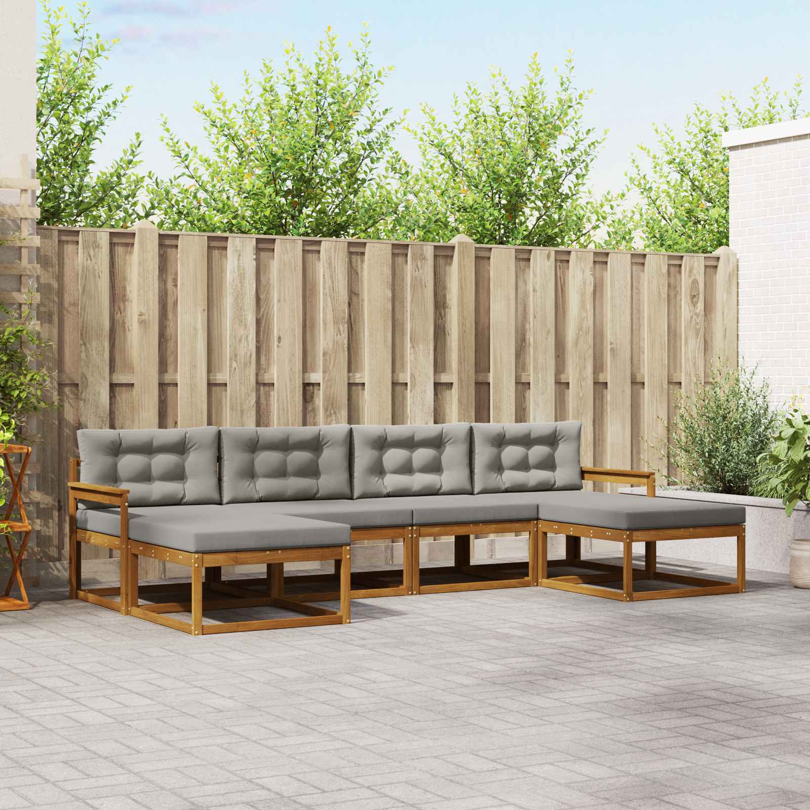 Ta set modernih kavčev je odlična izbira za vsak zunanji prostor. Zasnovan je s stilom in vzdržljivostjo, kar mu daje eleganten in sodoben videz, idealen za vrtne površine, terase in območja ob bazenu. Izdelan iz trden akacijevega lesa, ta set nudi privlačno in trdno izbiro za druženje in sprostitev na prostem. Njegova podrobna konstrukcija preoblikuje prostor v sofisticirano okolje, ki se brez težav sklada z različnimi zunanjimi dekoracijami, zato je odlična izbira za tiste, ki cenijo estetiko zunanjega pohištva. Trden akacijev les: Ta robusten set kavčev je iz trdnega akacijevega lesa, ki se dobro upira vremenskim vplivom, kar ga dela zanesljivo izbiro za zunanjo uporabo. Lepota lesa se kaže v njegovi sposobnosti, da prenese vsakodnevno obrabo in ponuja dolgo uporabo v vsakem vrtu, na terasi ali ob bazenu. Eleganten dizajn z letvami: Zasnova z letvami prinaša privlačen videz in izboljšuje udobje z odličnim opornim naslonom. Ta značilnost zajema tako stil kot udobje, kar naredi vsako sedenje prijetno. Udobni nasloni za roke: Opremljen z nasloni za roke, ta moderne set nudi dodatno oporo in udobje za dolge trenutke sprostitve. Nasloni za roke se skladajo z oblikovanjem in dodajajo eleganco celotnemu videzu. Stabilen okvir: Fiksni okvir zagotavlja varno strukturo pohištva. Vsaka komponenta je skrbno izbrana, da izboljša vzdržljivost in održi obliko tudi v spremenljivem vremenu, kar dodaja k njeni robustnosti in dolgi življenjski dobi. Enostavna skrb: Za vzdrževanje preprosto obrišite pohištvo z vlažno krpo, da ohranite čisto in podaljšate njegovo življenje. Enostavna skrb omogoča dostopno izbiro za tiste, ki želijo praktičnost brez žrtev pri estetiki.