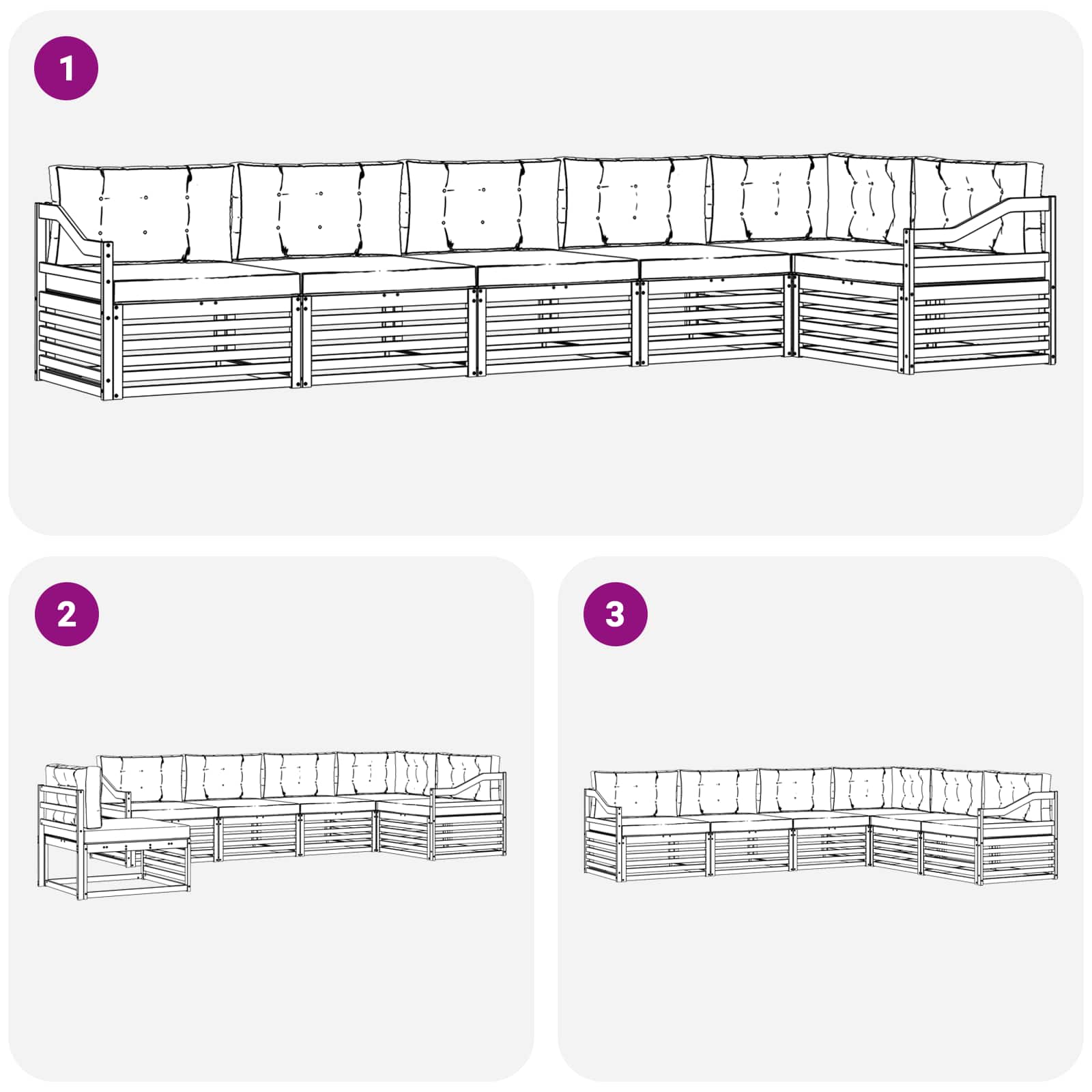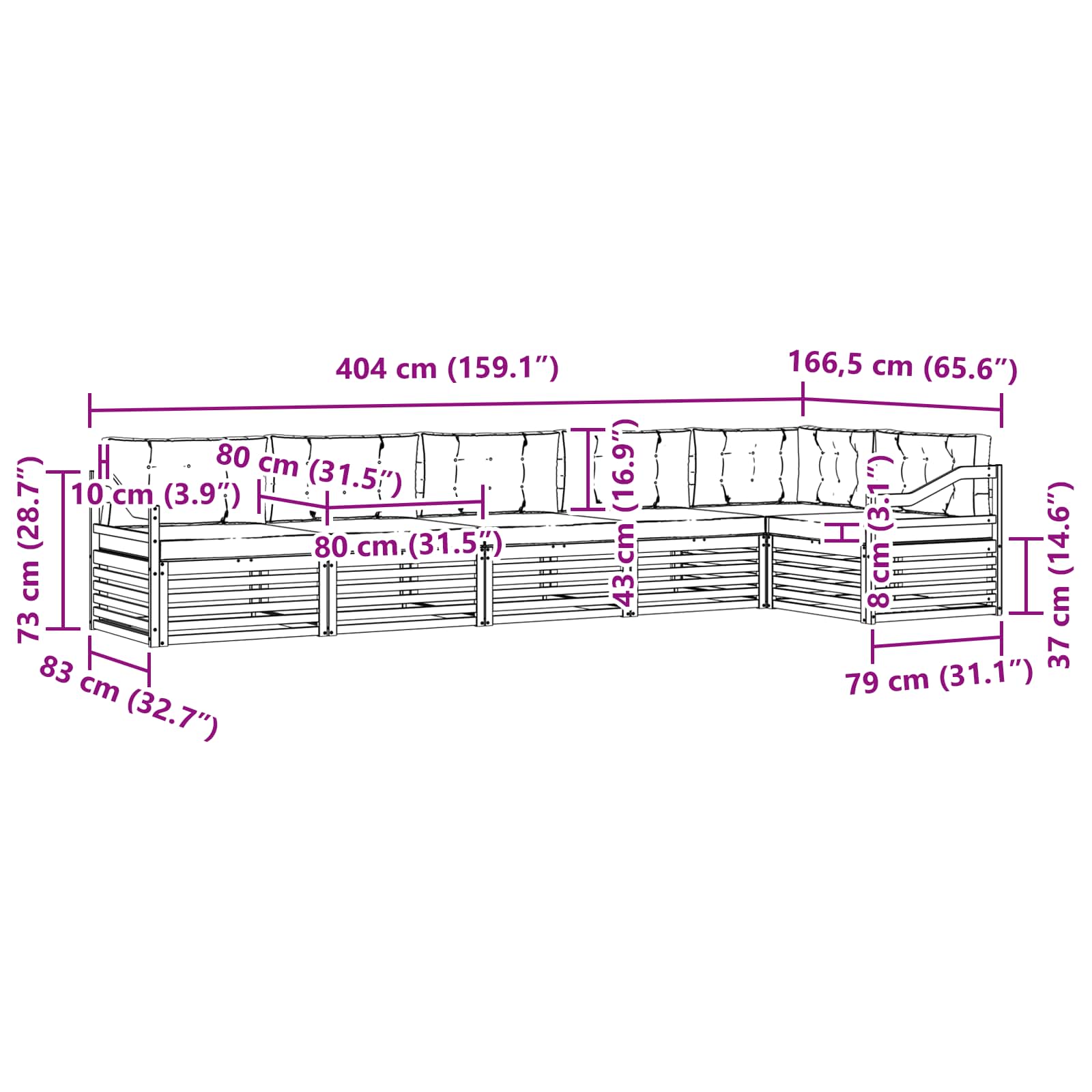 - 6 x Sedežna blazina: 80 x 80 x 8 cm (D x Š x V)
