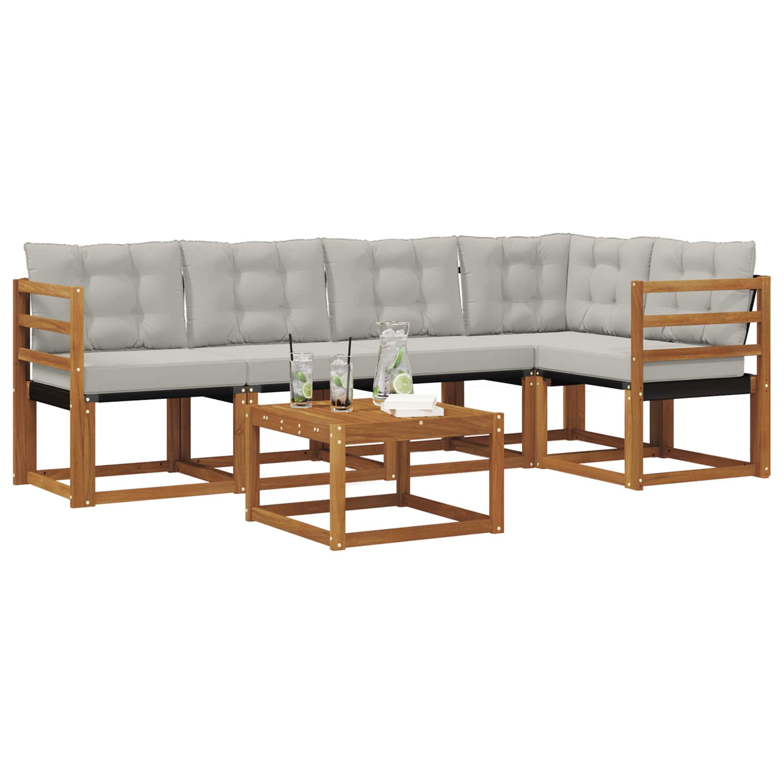 Ta moderni set kavč odlično združuje stil in funkcionalnost, kar omogoča, da se prilega vsakemu vrtu, terasi, dvorišču ali okolici bazena. S preprosto zasnovo prinaša čiste linije in minimalno okraševanje, kar ustvarja sofisticirano, a vabljivo vzdušje. Idealno za zunanjo uporabo, set obsega sedežno postavitev s sleek dizajnom, ki vabi goste, da se sprostijo in uživajo. Materiali: Skrbno narejen iz trdnega akacijevega lesa in textilena, ta set kavč prinaša naravno eleganco za zunanjo uporabo. Akacijev les je zelo trpežen, z lepim naravnim zaključkom, medtem ko textilen nudi udobno sedišče, kar zagotavlja dolgotrajno udobje. Kombinacija teh materialov pomeni, da set zlahka prenese vremenske vplive. Vključene komponente: Set vključuje uporabne elemente, kot so vodoodporne blazine, ki lahko prenesejo različne vremenske razmere. Odstranljive prek priročnih zadrg so enostavne za vzdrževanje. Naslonjala in kvalitetni nasloni za roke so zasnovani za večje udobje z zračno površino sedenja iz textilena. Lastnosti / Funkcija / Oblikovanje: Napredne lastnosti zagotavljajo udobje in praktičnost, saj ohranijo privlačnost tudi ob dolgotrajni izpostavljenosti soncu. Enostavno čiščenje omogoča udobje, medtem ko slatamelna postavitev omogoča učinkovito odvodnjavanje in suho površino, kar je idealno za osvežilne napitke. Priporočena uporaba: Popolno za vrtnarske kotičke, ob bazenih ali terasnih umikih, je set dovolj vsestranski, da obogati različne zunanje prostore. Prostoren je za zabave in udoben za osebno sprostitev, ponuja praktično rešitev za boljše zunanje doživetje. Nege in vzdrževanje: Ohranite privlačnost tako, da set brišete z vlažno krpo, kar omogoča enostavno čiščenje in brezskrbno vzdrževanje. Idealna izbira za vsak zunanji prostor.