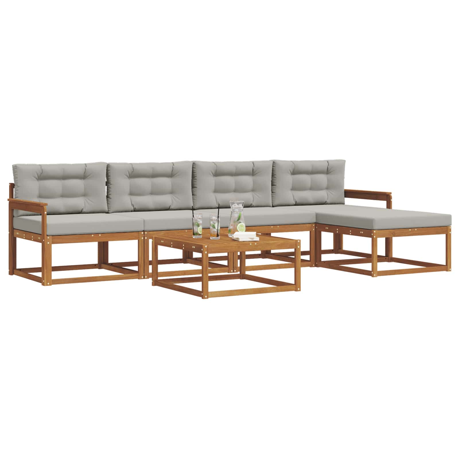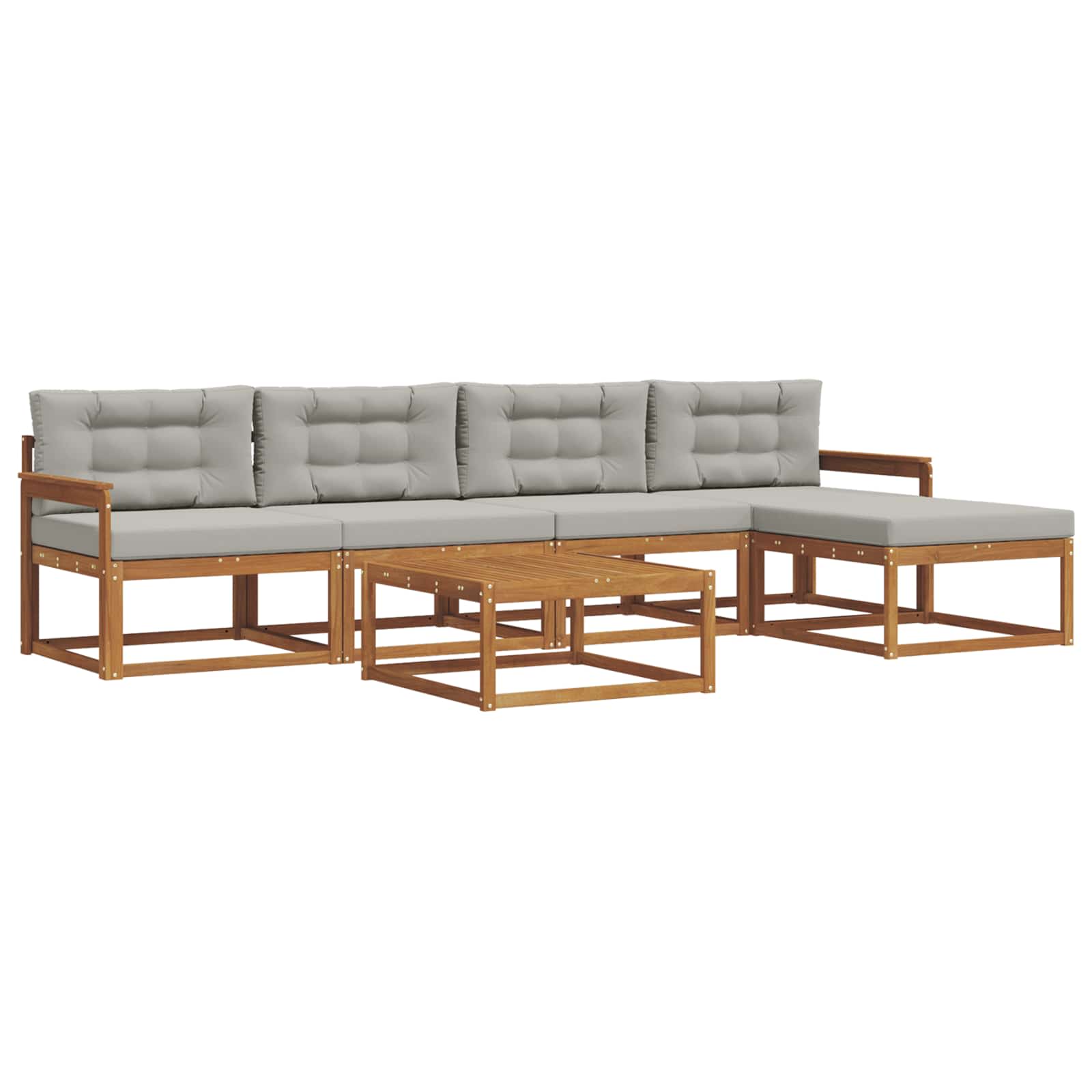 Ta eleganten zunanji kotni kavč ponuja stilsko rešitev za vsak patio ali vrt. S čistimi linijami in modernim dizajnom je narejen iz trdnega akacijevega lesa, znanega po svoji trajnosti in lepih vzorcih. Njegova rjava barva doda toplino, kar ga naredi privlačen v vseh zunanjih prostorih. Super je za goste ali mirne večere, saj se brez težav vklopi v raznolike stile in prinese prijetno vzdušje. Trden akacijev les: Material zagotavlja dolgotrajno vzdržljivost in brezčasen videz. Njegova naravna lepota doda šarm vsakega zunanjega prostora. Letvičasta zasnova: Ne samo, da izgleda dobro, ampak omogoča tudi, da zrak kroži, da je udobno tudi v vročih dneh. Funkcionalen dizajn za tiste, ki cenijo styling in udobje. Odporno na vreme: Kavč obdrži svojo lepoto kljub vremenskim vplivom, saj se upira UV žarkom in vlagi. Ni skrbi skozi vse leto. Modularna prilagodljivost: Enostavno premikaj dele, da ustreza tvojemu prostoru in dogodku. Z lahkoto preideš od manjših srečanj do večjih zabav. Enostavno vzdrževanje: Da ohraniš njegov videz, očistiš z vlažno krpo in uporabljaš pokrov, ko ni v uporabi. Tako ostane vedno videti super.