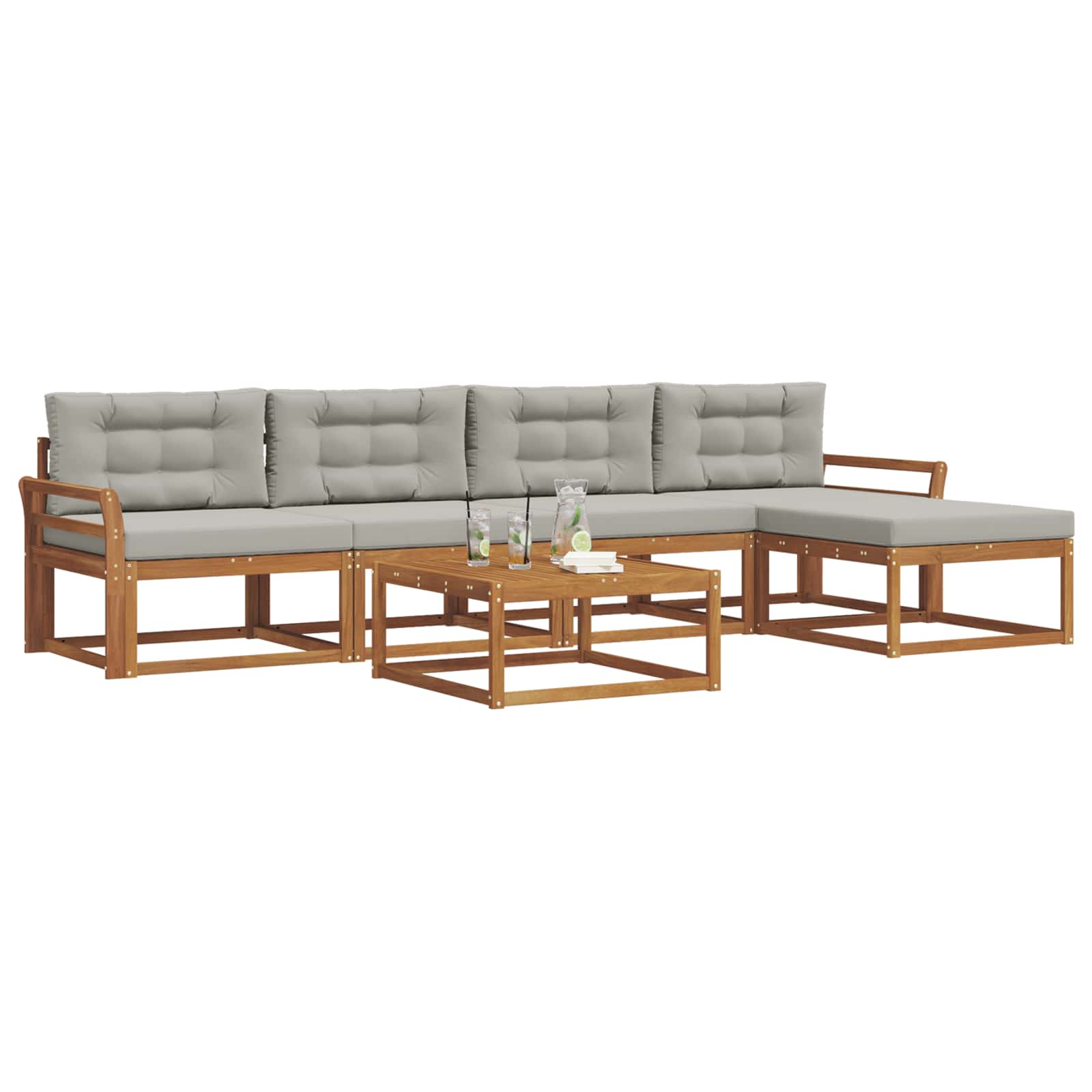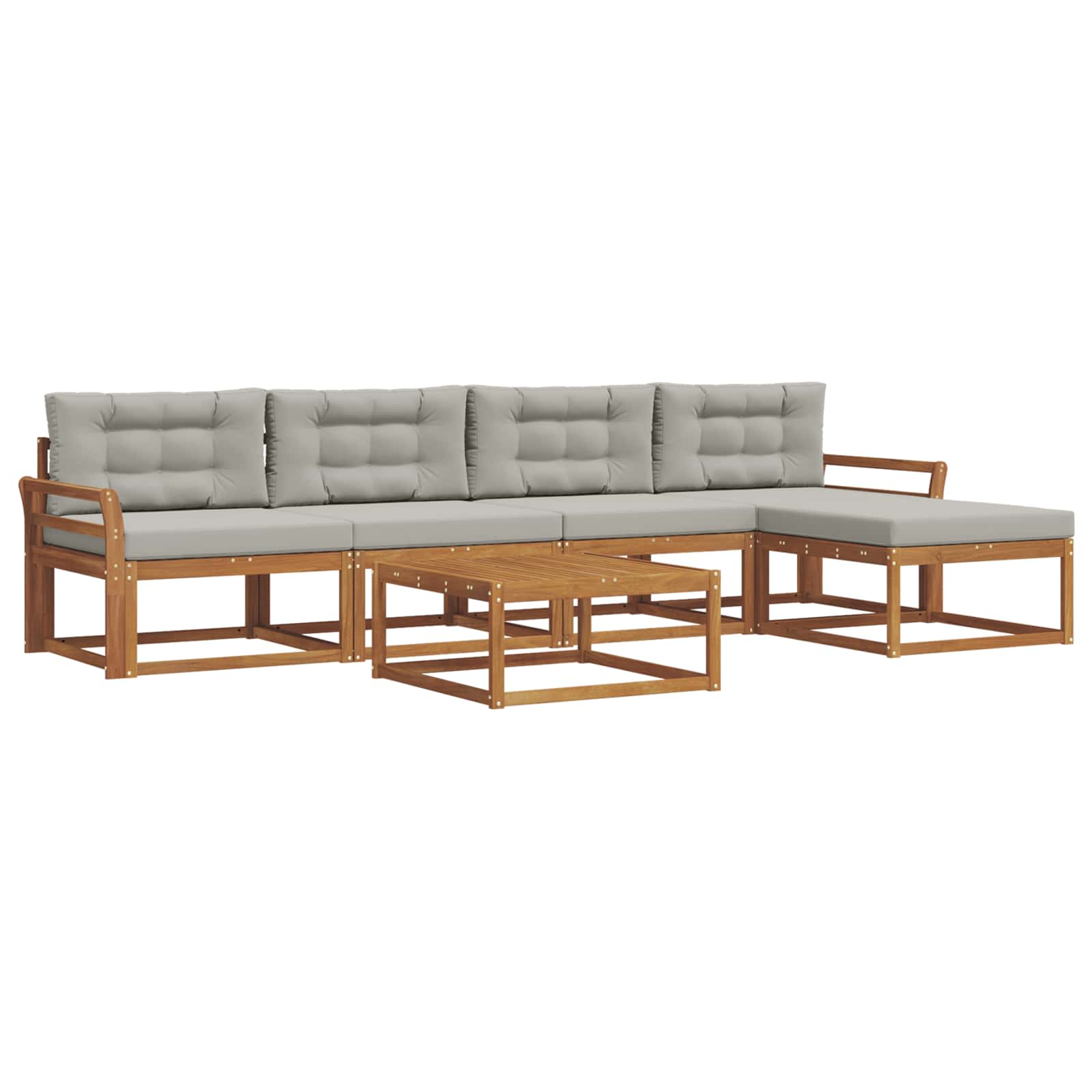 Ta eleganten zunanji kotni kavč ponuja stilsko rešitev za vsak patio ali vrt. S čistimi linijami in modernim dizajnom je narejen iz trdnega akacijevega lesa, znanega po svoji trajnosti in lepih vzorcih. Njegova rjava barva doda toplino, kar ga naredi privlačen v vseh zunanjih prostorih. Super je za goste ali mirne večere, saj se brez težav vklopi v raznolike stile in prinese prijetno vzdušje. Trden akacijev les: Material zagotavlja dolgotrajno vzdržljivost in brezčasen videz. Njegova naravna lepota doda šarm vsakega zunanjega prostora. Letvičasta zasnova: Ne samo, da izgleda dobro, ampak omogoča tudi, da zrak kroži, da je udobno tudi v vročih dneh. Funkcionalen dizajn za tiste, ki cenijo styling in udobje. Odporno na vreme: Kavč obdrži svojo lepoto kljub vremenskim vplivom, saj se upira UV žarkom in vlagi. Ni skrbi skozi vse leto. Modularna prilagodljivost: Enostavno premikaj dele, da ustreza tvojemu prostoru in dogodku. Z lahkoto preideš od manjših srečanj do večjih zabav. Enostavno vzdrževanje: Da ohraniš njegov videz, očistiš z vlažno krpo in uporabljaš pokrov, ko ni v uporabi. Tako ostane vedno videti super.