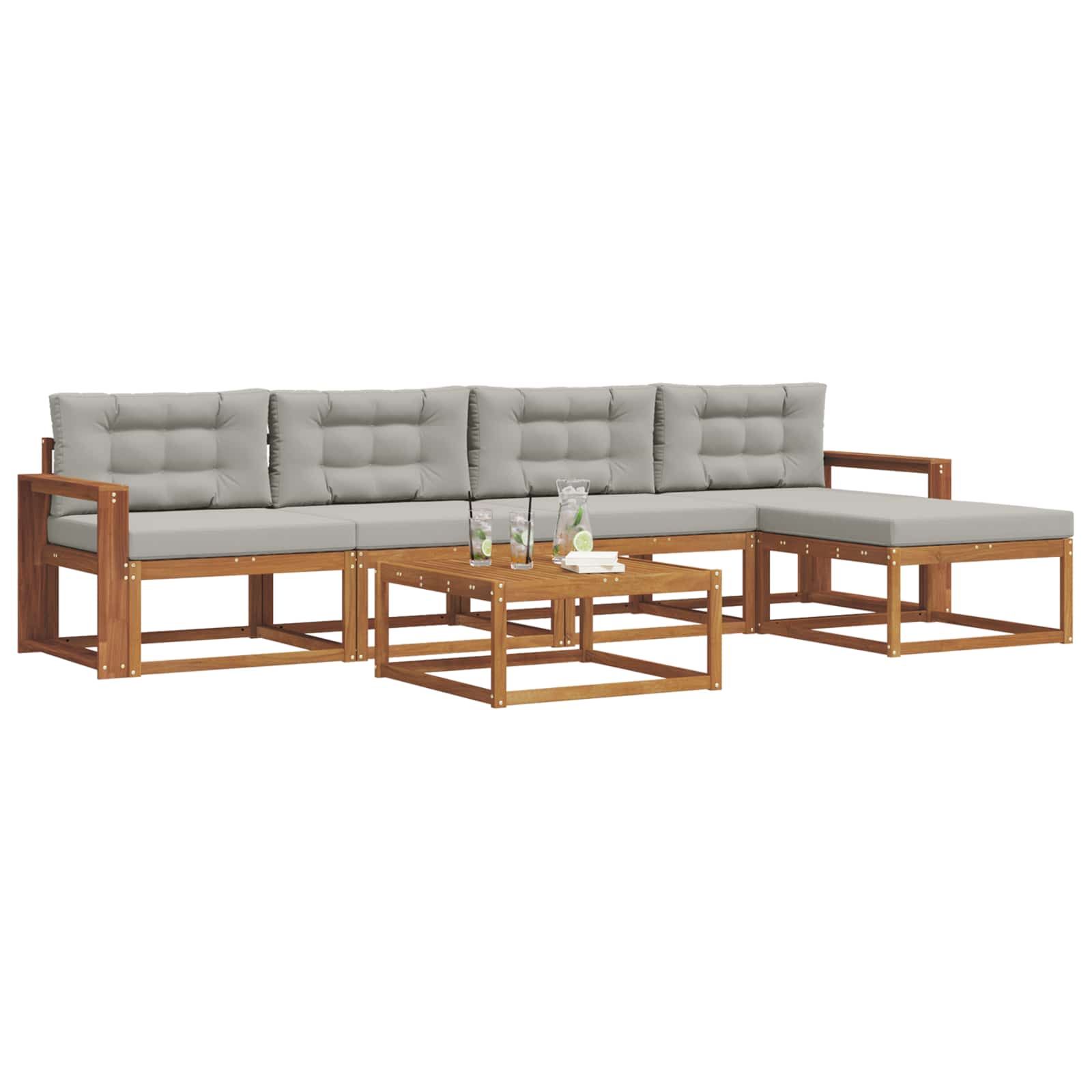 Ta eleganten zunanji kotni kavč ponuja stilsko rešitev za vsak patio ali vrt. S čistimi linijami in modernim dizajnom je narejen iz trdnega akacijevega lesa, znanega po svoji trajnosti in lepih vzorcih. Njegova rjava barva doda toplino, kar ga naredi privlačen v vseh zunanjih prostorih. Super je za goste ali mirne večere, saj se brez težav vklopi v raznolike stile in prinese prijetno vzdušje. Trden akacijev les: Material zagotavlja dolgotrajno vzdržljivost in brezčasen videz. Njegova naravna lepota doda šarm vsakega zunanjega prostora. Letvičasta zasnova: Ne samo, da izgleda dobro, ampak omogoča tudi, da zrak kroži, da je udobno tudi v vročih dneh. Funkcionalen dizajn za tiste, ki cenijo styling in udobje. Odporno na vreme: Kavč obdrži svojo lepoto kljub vremenskim vplivom, saj se upira UV žarkom in vlagi. Ni skrbi skozi vse leto. Modularna prilagodljivost: Enostavno premikaj dele, da ustreza tvojemu prostoru in dogodku. Z lahkoto preideš od manjših srečanj do večjih zabav. Enostavno vzdrževanje: Da ohraniš njegov videz, očistiš z vlažno krpo in uporabljaš pokrov, ko ni v uporabi. Tako ostane vedno videti super.
