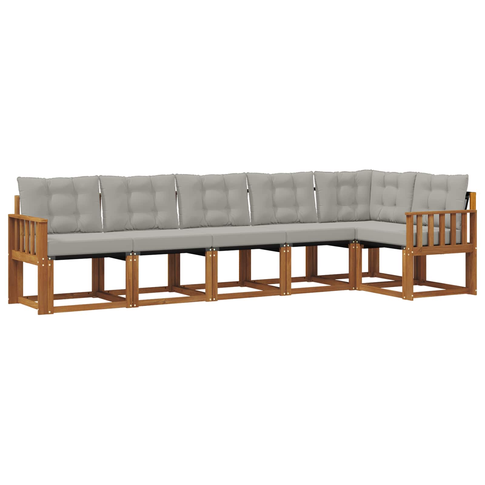 Komplet zunanjega pohištva združuje slog in funkcionalnost ter je prava zvezda vsake terase ali vrta. Moderno zasnovan s čistimi linijami in minimalnimi detajli, prinaša eleganco in je odličen za sprostitev ali druženje na prostem. Trdna akacijeva lesena konstrukcija zagotavlja trajnost in dolgotrajno privlačnost, kar ga dela idealnega za vse, ki iščejo funkcionalnost in eleganco pri zunanjem pohištvu. Vzdržljiv akacijev les: Ta zunanji set je izdelan iz trdnega akacijevega lesa, znanega po svoji odpornosti in dolgi življenjski dobi. Močna konstrukcija nudi zanesljivo podporo, medtem ko topli naravni odtenki lepo okrasijo vrt ali teraso. Vremensko odporen: Ta komplet zunanjega pohištva ima lakirano površino, ki ščiti pred soncem, lahkim dežjem in drugimi vremenskimi vplivi. Polirana površina ohranja tako videz kot funkcionalnost, kar zagotavlja dolgo življenjsko dobo za vaš vrt ali teraso. Zasnova in komponente: Vsak kos je zasnovan s poudarkom na slogu in funkcionalnosti. Podporna hrbtna naslonjala nudijo dodatno udobje, medtem ko celotna zasnova zagotavlja usklajen videz, ki se prilega različnim zunanjim priložnostim. Udobje in prilagodljivost: Modularna zasnova omogoča različne postavitve, ki ustrezajo različnim prostorom in potrebam. Odličen je za sprostitev, druženje ali branje, saj se brez težav prilagodi vsakemu okolju. Enostavno vzdrževanje: Da pohištvo ostane v dobrem stanju, enostavno obrišite površino z vlažno krpo in se izogibajte močnim čistilom. Redno vzdrževanje podaljša življenjsko dobo pohištva.
