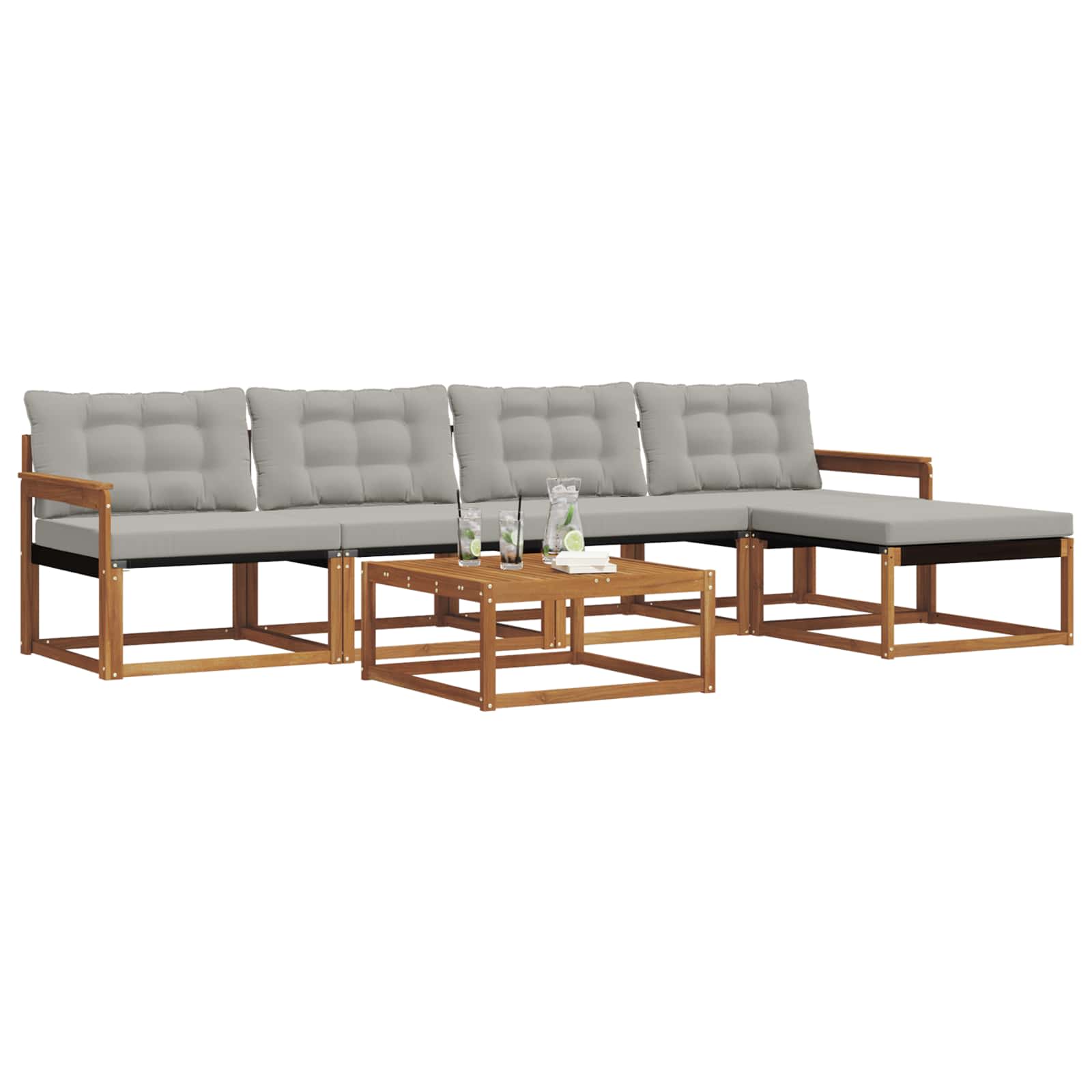 Ta sodoben kavč bo dvignil vaš vrt ali teraso. Minimalistično oblikovanje in robustna funkcionalnost se lepo združita, kar je idealno za vse, ki cenijo preprostost in naravne elemente. Nudi umirjen pobeg na prostem in ima dovolj prostora za sedenje, kar je super za druženja ali tihe trenutke razmišljanja. Premium materiali: Ta komplet je izdelan iz trdnega akacijevega lesa in tekstilena, kar pomeni dolgo življensko dobo in privlačnost. Topli naravni lesni ton in prejo tekstilena zagotavljata, da komplet ostaja eleganten in vzdržljiv v vašem zunanjem bivalnem prostoru. Vključene komponente: Ima praktične naslončke za roke iz trdnega akacijevega lesa, ki ponujajo udobje in stil. Set vsebuje tudi vremensko odporne zunanje blazine, ki so debelo podložene za udobno izkušnjo sedenja in naslon hrbta za sprostitev. Pametne funkcije: Modularna gradnja pomeni, da lahko preuredite kavč, da ustreza vašim potrebam. Površina je odporna na bledenje, kar olajša vzdrževanje, medtem ko naslončki izboljšujejo udobje. Vsestranska uporaba: Odlično za zunanje prostore, kot so terase in vrtovi. Prilagodljiva razporeditev omogoča različne namene, od počivanja do družabnih srečanj. Oprema in vzdrževanje: Enostavno vzdrževanje z preprostimi navodili – samo uporabite vlažno krpo za čiščenje. Odstranljive blazine z zadrgo omogočajo enostavno čiščenje in svežino.