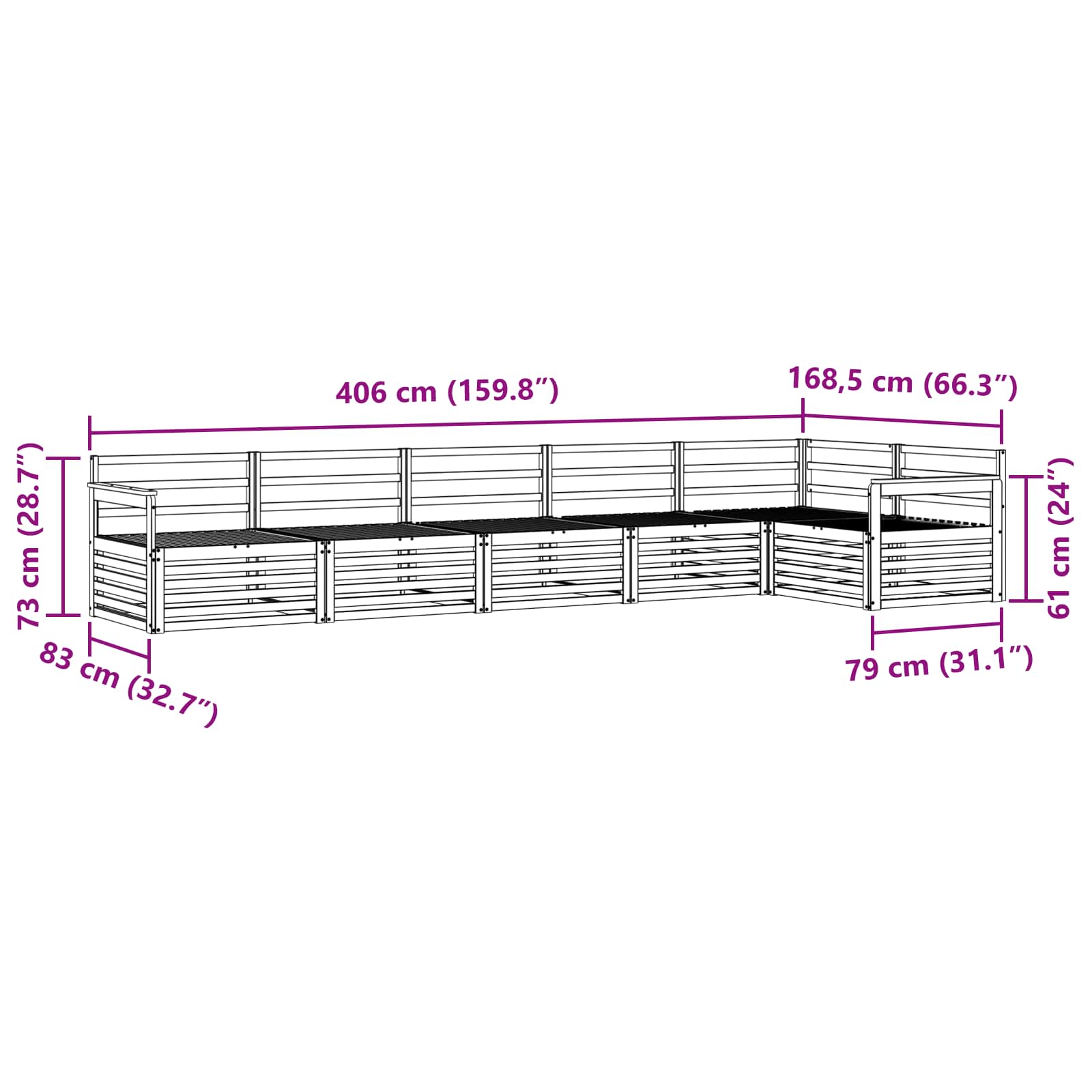 - 2 x Naslonjalo: 79 x 6 x 61 cm (Dolžina x Širina x Višina)