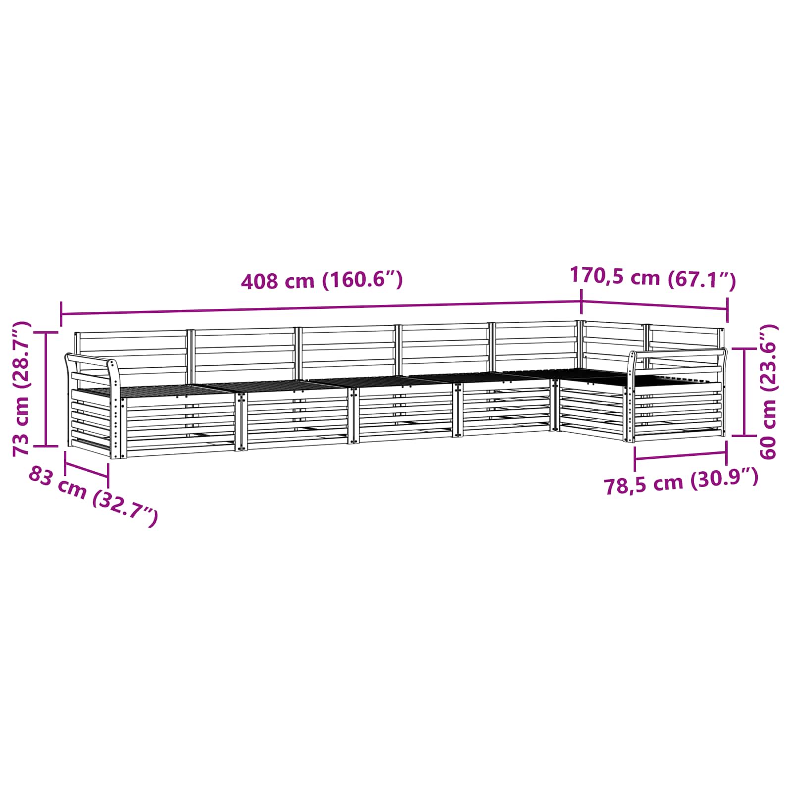 - 1 x Kotna sedežna garnitura: 83 x 83 x 73 cm (D x Š x V)