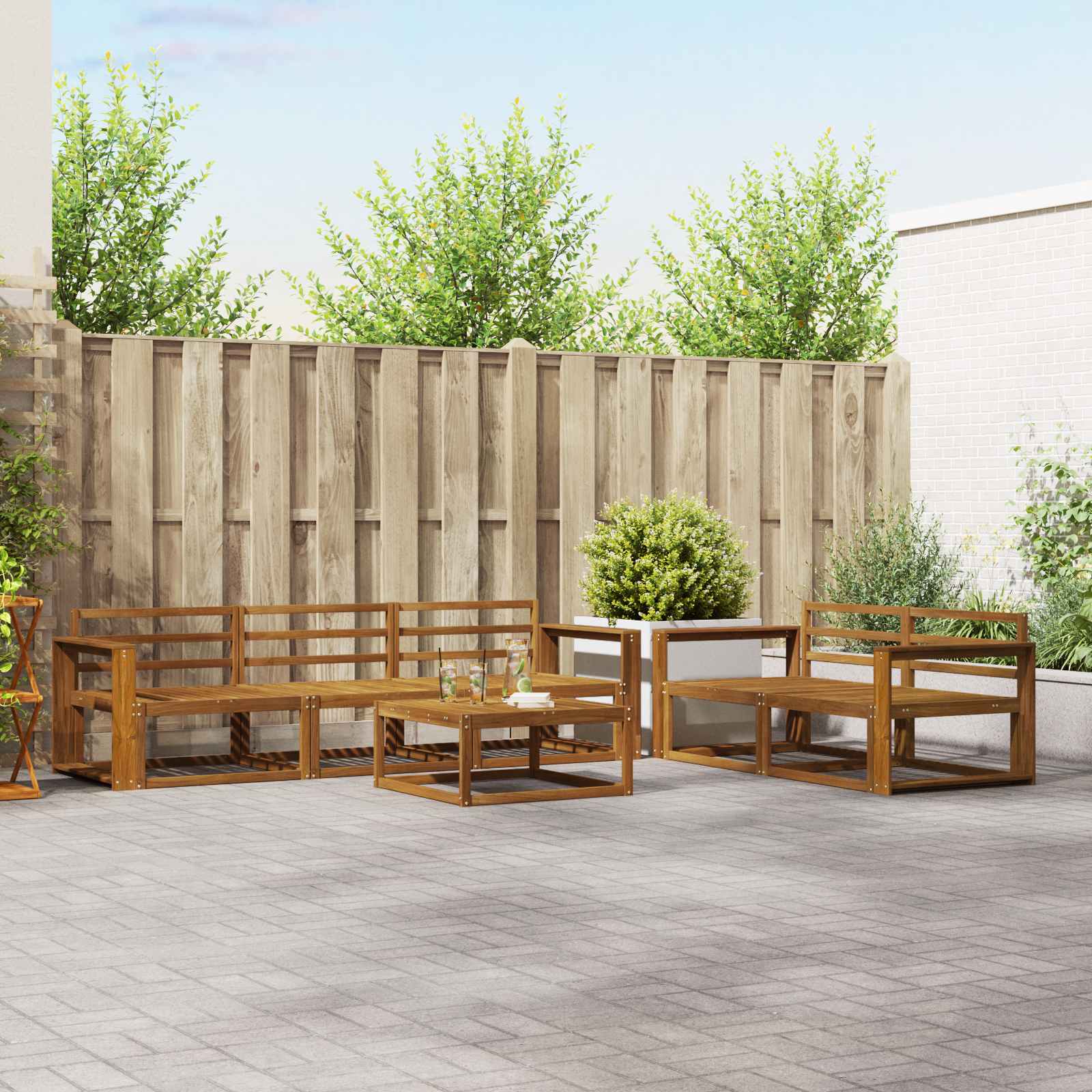 Ta eleganten set sofasetov je točno tisto, kar potrebujete za vaš vrt, teraso ali bazen. Moderno zasnovan, združuje stil in funkcionalnost, njegove tople rjave barve in letvasta hrbtišča prinašajo pridih luksuza, ter ustvarjajo udoben prostor za druženje ali sproščanje. Ne glede na to, ali ste pod streho ali na soncu, ta set prinaša brezčasen šarm in prilagodljivost, kar vabi vse, da uživajo v zunanjih trenutkih. Trden akacijev les: Ta sofaset je narejen iz vrhunskega trdega akacijevega lesa, kar zagotavlja naravno lepoto in trpežnost. Akacija je znana po svoji odpornosti na vreme in obrabo, kar podaljšuje življenjsko dobo pohištva. Lesena struktura je enostavna za vzdrževanje in idealna za moderne uporabnike. Letvasta zasnova: Z elegantno letvasto zasnovo, ta sofaset prinaša funkcionalnost in zračnost. Ergonomična podpora za hrbet nudi udobje, estetska zasnova pa izboljšuje zunanje površine, kar ustvarja prijetna mesta za druženje ali sprostitev. Fiksni letvičasti okvir: Z močno, fiksno zasnovo okvirja, ta sofaset zagotavlja stabilnost in zanesljivost. Idealna izbira za zunanje prostore, konstrukcija pa doda estetsko vrednost, ki poudarja tako trpežnost kot šik izgled. Lastnost odporna na vreme: Zasnovan za zunanjo uporabo, ta set je odporen na različne vremenske pogoje. Od sončnega vremena do vetrovnih večerov, materiali in zasnova zaščitijo pohištvo, da ostane udobno skozi vse leto. Modularna konfiguracija: Ta sofaset vam omogoča, da prilagodite svoje sedežne postavitve, kar je super za različne priložnosti. Ustvarite intime skupine ali širša ležišča, kar se enostavno prilagaja vašim potrebam. Njegova vsestranskost povečuje uporabnost in omogoča prilagoditev prostora po želji.