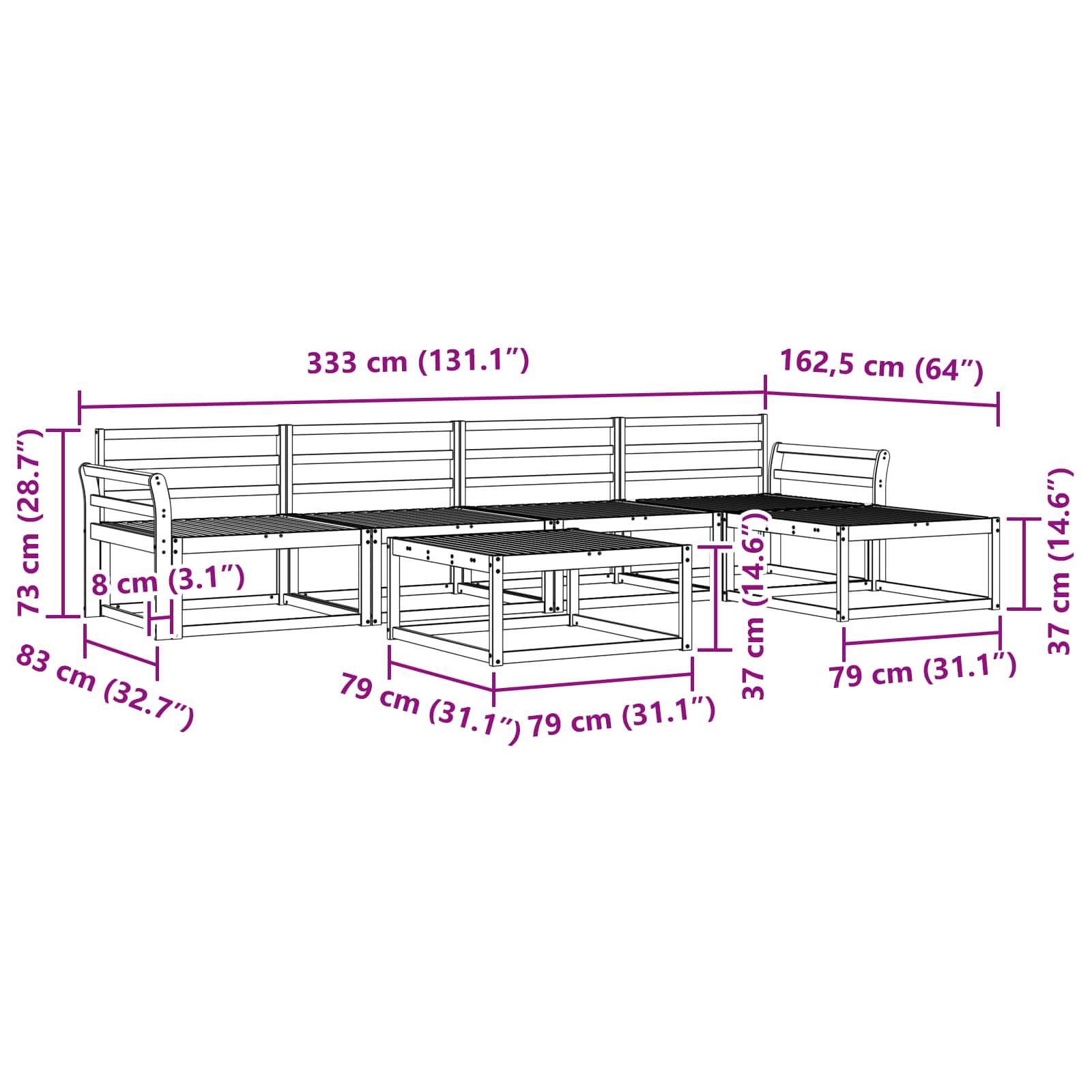 - Splošne dimenzije: 79 x 79 x 37 cm (D x Š x V)