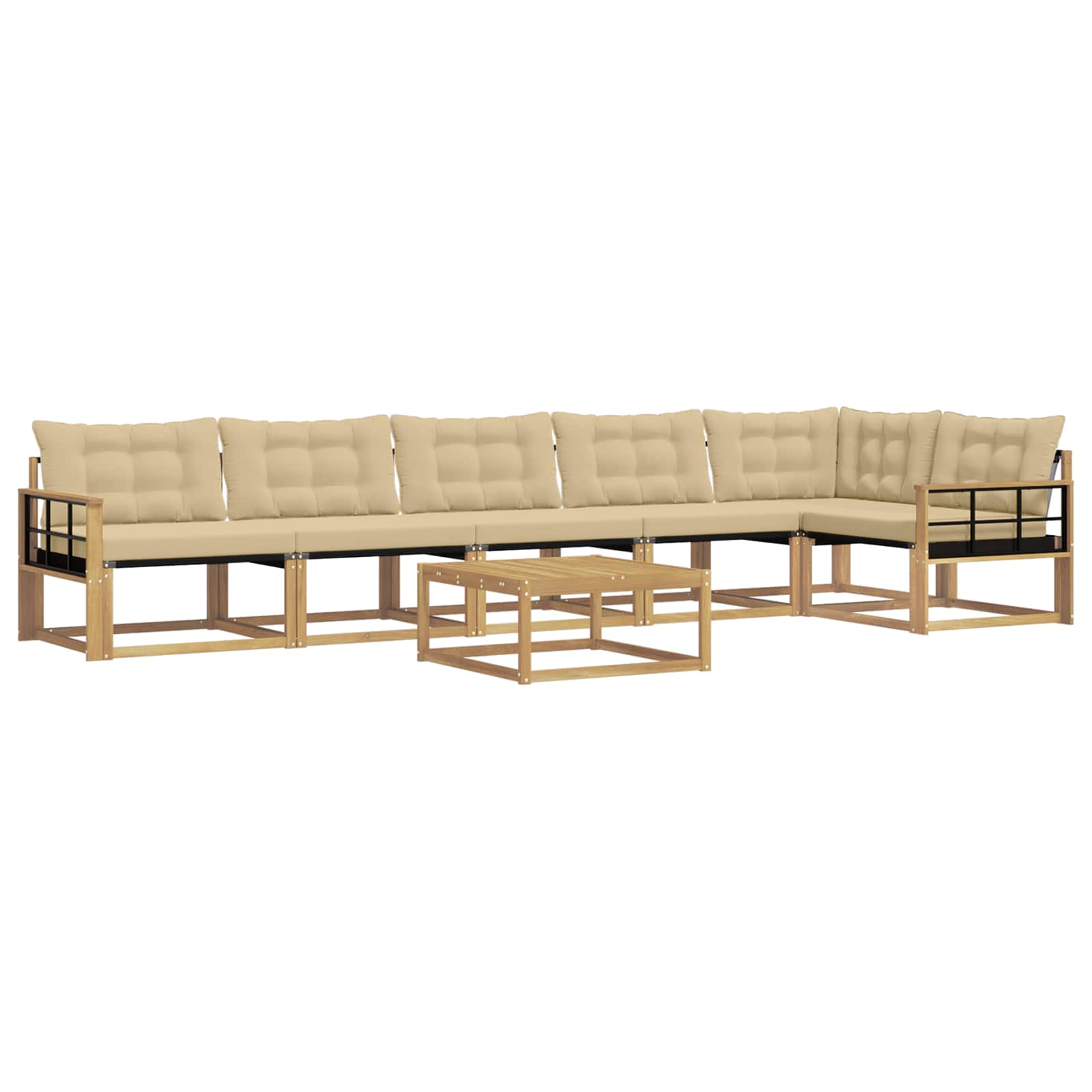 Ta zunanji pohištveni komplet združuje stil in praktičnost ter ponuja osupljivo središče za vsak vrt ali teraso. Njegova moderna zasnova s čistimi linijami in minimalnimi detajli doda eleganco, hkrati pa omogoča sproščanje na prostem in družabne dogodke. Akacijev les zagotavlja trajnost in lepo estetiko, kar ga naredi idealno izbiro za vse, ki iščejo funkcionalnost in eleganco v zunanjem pohištvu. Vzdržljiv trden akacijev les: Ta zunanji pohištveni komplet, izdelan iz trdnega akacijevega lesa, se ponaša z dolgotrajnostjo in odpornostjo na zunanje vplive. Njegova trdna konstrukcija nudi stabilnost in zanesljivo podporo, pri tem pa toplina naravnega tona izboljša videz vašega vrta ali terase. Vremensko odporna zasnova: Ta komplet ima zaščitno lakirano površino, ki ščiti pred soncem, blagim dežjem in drugimi zunanjimi vplivi. Poliran zaključek ohranja videz in funkcionalnost ter zagotavlja dolgo življenjsko dobo za vašo teraso, vrt ali dvorišče. Komponente in zasnova: Vsak del, od naslonov do sedežne površine, je zasnovan za udobje in slog. Podporne lastnosti zagotavljajo dodatno udobje, medtem ko kohezivna zasnova ustvari vizualno usklajen set, primeren za različne zunanje priložnosti. Udobje in prilagodljivost: Modularna zasnova omogoča različne konfiguracije, primerne za vsak prostor in potrebe. Odlična je za sprostitev, druženja ali mirne trenutke s knjigo, saj se ta komplet enostavno prilagodi vsakemu zunanjemu okolju. Enostavno vzdrževanje: Da bo pohištvo dolgo v dobrem stanju, ga obrišite z vlažno krpo in se izogibajte ostrim čistilom. Redno vzdrževanje ohranja njegov videz in podaljšuje življenjsko dobo pohištva.