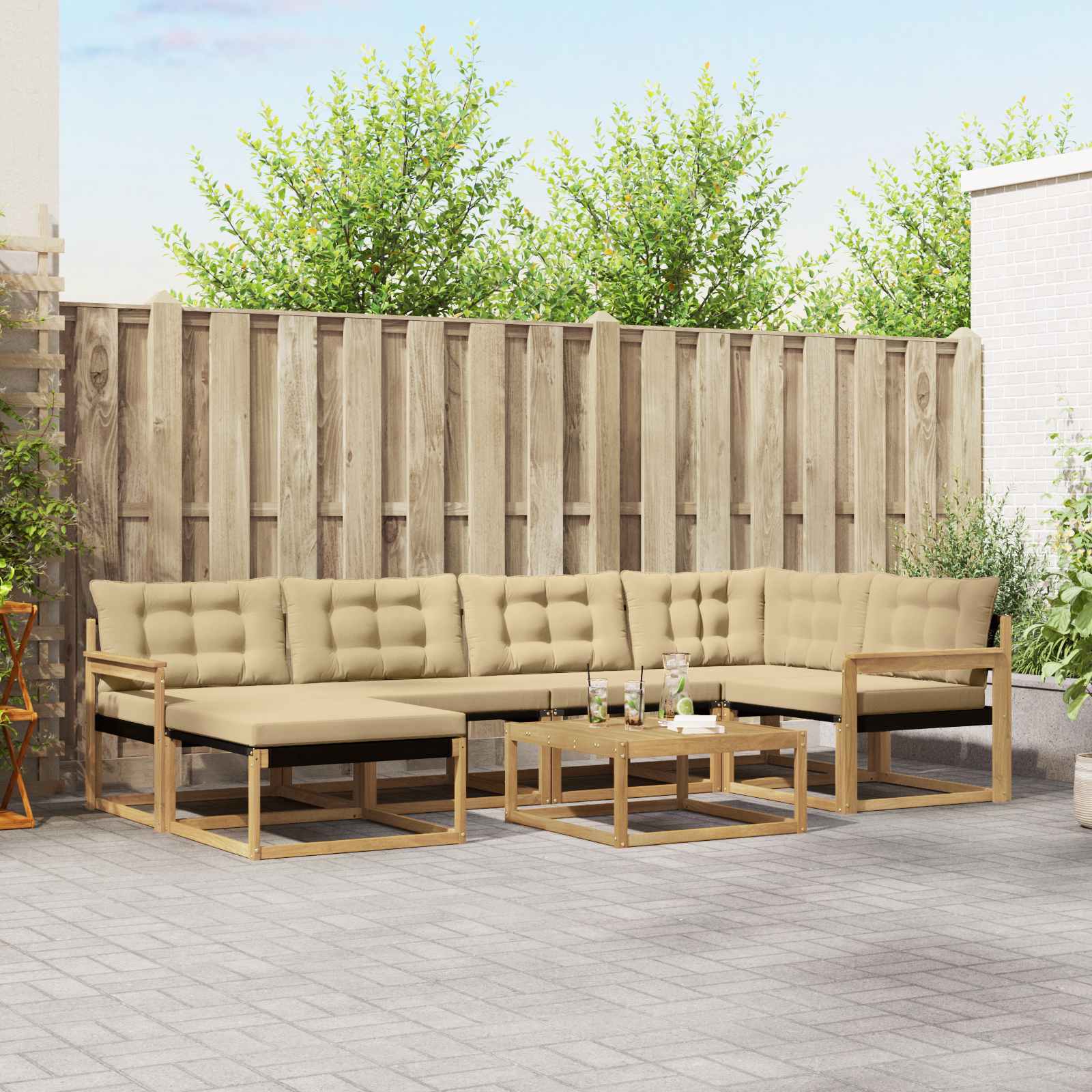 Ta soglasna sedežna garnitura lepo popestri vsak vrt ali teraso. Združuje udobje in stil ter je idealna za družinska srečanja. Trden akacijev les: Ta material dvigne videz seta in zagotavlja dolgo življenjsko dobo, ne glede na vreme. Naravni leseni toni se super zlijejo z zunanjim okoljem, kar ga naredi za brezčasno izbiro za vaš vrt ali teraso. Njegova odpornost proti obrabi ga naredi primerno za družabna srečanja in mirne trenutke. Integrirani elementi: Sofe imajo udobne naslone za roke in robusten okvir, oba narejena iz akacijevega lesa. Textilene hrbtne stene in debelo oblazinjene blazine nudijo dolgotrajno udobje. Snemljive sedežne blazine so z zadrgo, kar omogoča, da hitro in lahko očistite. Funkcionalne lastnosti: Zasnovan za uporabo na prostem, ta set je odporen na bledenje in enostaven za čiščenje, kar zagotavlja, da ostane videti nov. Naslon za hrbet podpori pravilno držo, medtem ko praktični nasloni za roke omogočajo udobno ležanje brez skrbi. Vsestrane uporabe: Ta sofa je odlična za različne zahteve, kot na primer zabave, piknike ali pa zgolj uživanje v mirnem večeru s knjigo. Njena zasnova se lepo dopolnjuje s sodobnimi prostori, kar jo naredi za odlično izbiro za digne ambient. Enostavno vzdrževanje: Da ohranite njen videz, jo enostavno obrišite z vlažno krpo. Ta preprosta rutina pomaga ohraniti vašo sedežno garnituro svežo skozi vse letne čase. Brez težav zaščitite svoj zunanji prostor in uživajte v dolgotrajnih druženjih.