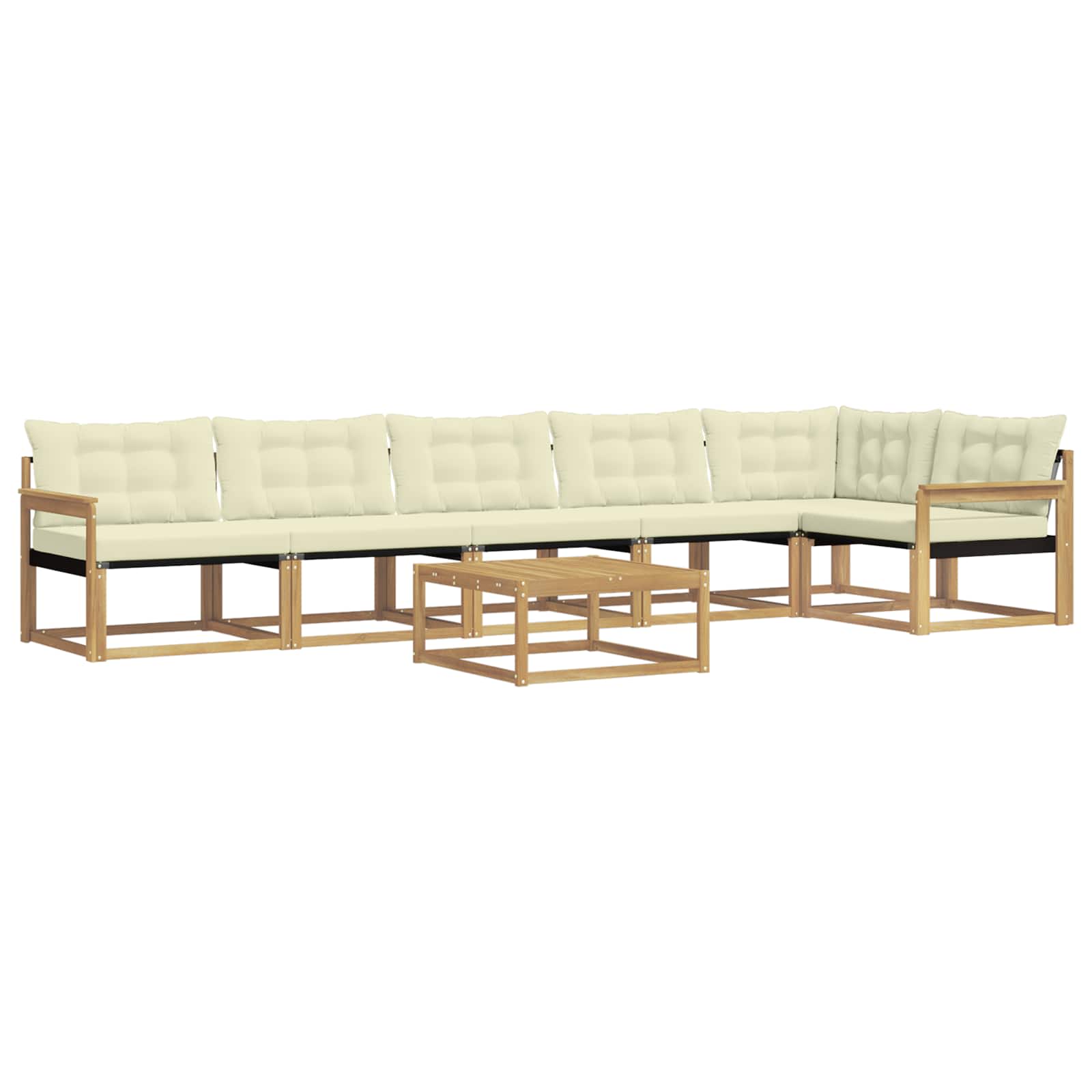 Ta zunanji pohištveni komplet združuje stil in praktičnost ter ponuja osupljivo središče za vsak vrt ali teraso. Njegova moderna zasnova s čistimi linijami in minimalnimi detajli doda eleganco, hkrati pa omogoča sproščanje na prostem in družabne dogodke. Akacijev les zagotavlja trajnost in lepo estetiko, kar ga naredi idealno izbiro za vse, ki iščejo funkcionalnost in eleganco v zunanjem pohištvu. Vzdržljiv trden akacijev les: Ta zunanji pohištveni komplet, izdelan iz trdnega akacijevega lesa, se ponaša z dolgotrajnostjo in odpornostjo na zunanje vplive. Njegova trdna konstrukcija nudi stabilnost in zanesljivo podporo, pri tem pa toplina naravnega tona izboljša videz vašega vrta ali terase. Vremensko odporna zasnova: Ta komplet ima zaščitno lakirano površino, ki ščiti pred soncem, blagim dežjem in drugimi zunanjimi vplivi. Poliran zaključek ohranja videz in funkcionalnost ter zagotavlja dolgo življenjsko dobo za vašo teraso, vrt ali dvorišče. Komponente in zasnova: Vsak del, od naslonov do sedežne površine, je zasnovan za udobje in slog. Podporne lastnosti zagotavljajo dodatno udobje, medtem ko kohezivna zasnova ustvari vizualno usklajen set, primeren za različne zunanje priložnosti. Udobje in prilagodljivost: Modularna zasnova omogoča različne konfiguracije, primerne za vsak prostor in potrebe. Odlična je za sprostitev, druženja ali mirne trenutke s knjigo, saj se ta komplet enostavno prilagodi vsakemu zunanjemu okolju. Enostavno vzdrževanje: Da bo pohištvo dolgo v dobrem stanju, ga obrišite z vlažno krpo in se izogibajte ostrim čistilom. Redno vzdrževanje ohranja njegov videz in podaljšuje življenjsko dobo pohištva.