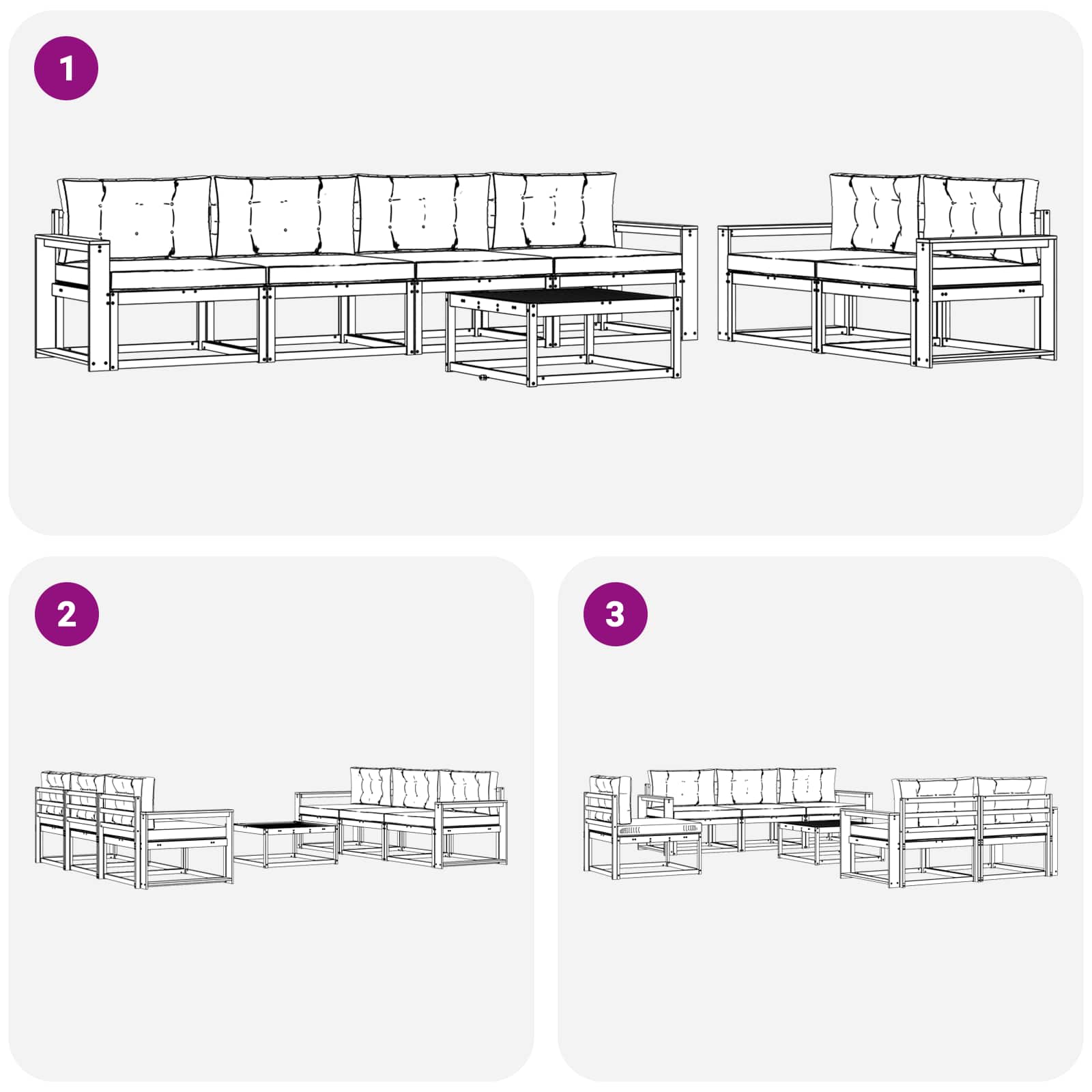 - 6 x Sedežna blazina: 80 x 80 x 8 cm (D x Š x V)