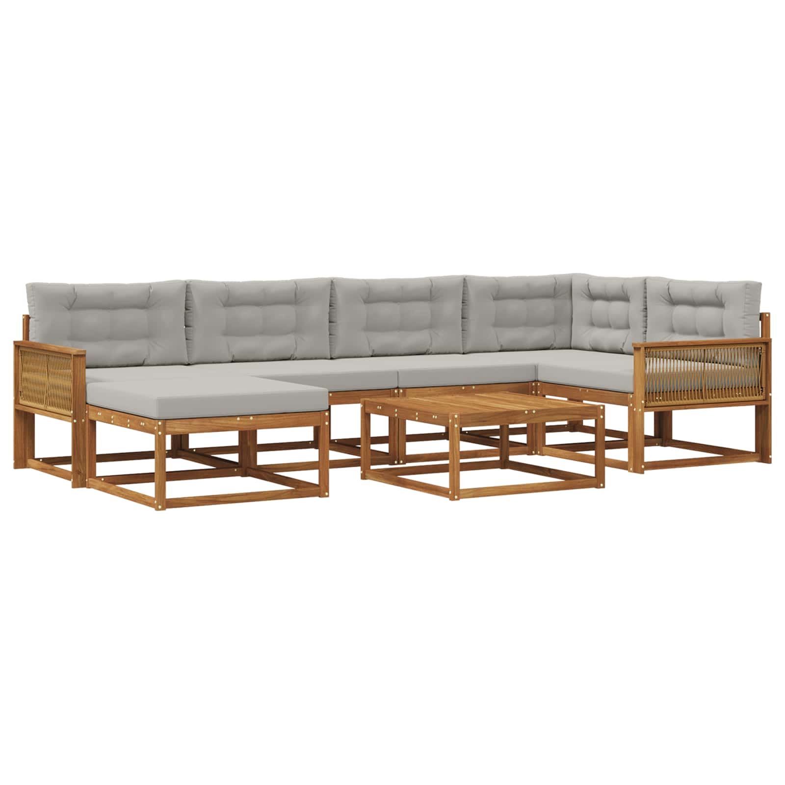 Ta zunanja vogalna sedežna garnitura ima moderno estetiko in preprosto funkcionalnost, kar jo naredi idealno za vsak vrt, teraso, dvorišče ali bazen. Oblikovana za udobje in prilagodljivost, je modularna, kar pomeni, da jo lahko reorganiziraš za različne dogodke ali mirne trenutke. Vsaka enota ima čiste linije in minimalno okrasitev, kar ustvari prijeten prostor za sprostitev. Ta niz se odlično ujema z različnimi zunanjimi dekoracijami in bo postal osrednji element vsakega stilskega zunanjega okolja. Materiali: Zgrajena iz trpežnega akacijevega lesa, ki je znan po svoji dolgi življenjski dobi. Material prenese vremenske vplive, kar omogoča dolgotrajno rabo na prostem. Njegova fina zrna in globoka rjava barva dodajata eleganco in toplino zunanjim prostorom, ne da bi ogrozila robustnost. Enostavno ga je čistiti, kar ohranja izvirno teksturo in privlačnost skozi čas. Vključene komponente: Ta set vključuje trdno letvičasto strukturo, ki nudi stabilnost in udobje. Letvičasti hrbtni del in naslonjali iz akacije se bomo odlično ujeli v celotno zasnovo in dodali udobje ter vizualno harmonijo. Vsaka komponenta vam nudi funkcionalno podporo in udobylje v vašem vrtu ali ob bazenu. Lastnosti / Funkcija / Zasnova: Ta sedežna garnitura je zasnovana s praktičnostjo in modularnostjo, kar omogoča prilagodljivo postavitev za različne potrebe. Njena letvičasta zasnova nudi udobje in zračen prostor, medtem ko hrbtni del zagotavlja dobro držo pri sedenju. Sodobna estetika se spoji s funkcionalnostjo in ustvari sproščujoče območje na prostem. Priporočena raba: Odlična je za vrtove, terase, dvorišča ali ob bazenih, nudi udobno sedenje za družinske piknike, popoldansko čajanko ali mirne trenutke sami. Njena prilagodljivost jo dela za brezčasno izbiro pri zunanji dekoraciji doma. Vzdrževanje: Z ustreznim vzdrževanjem lahko podaljšate življenjsko dobo niza. Redno ga brišite z vlažno krpo in se izogibajte dolgotrajni izpostavljenosti soncu. Uporabite zaščitne prevleke v slabem vremenu, da ohranite njegovo privlačnost in funkcionalnost. Tak pristop zagotavlja, da ostane pohištvo lahko privlačen dodatek vašemu zunanjemu prostoru.