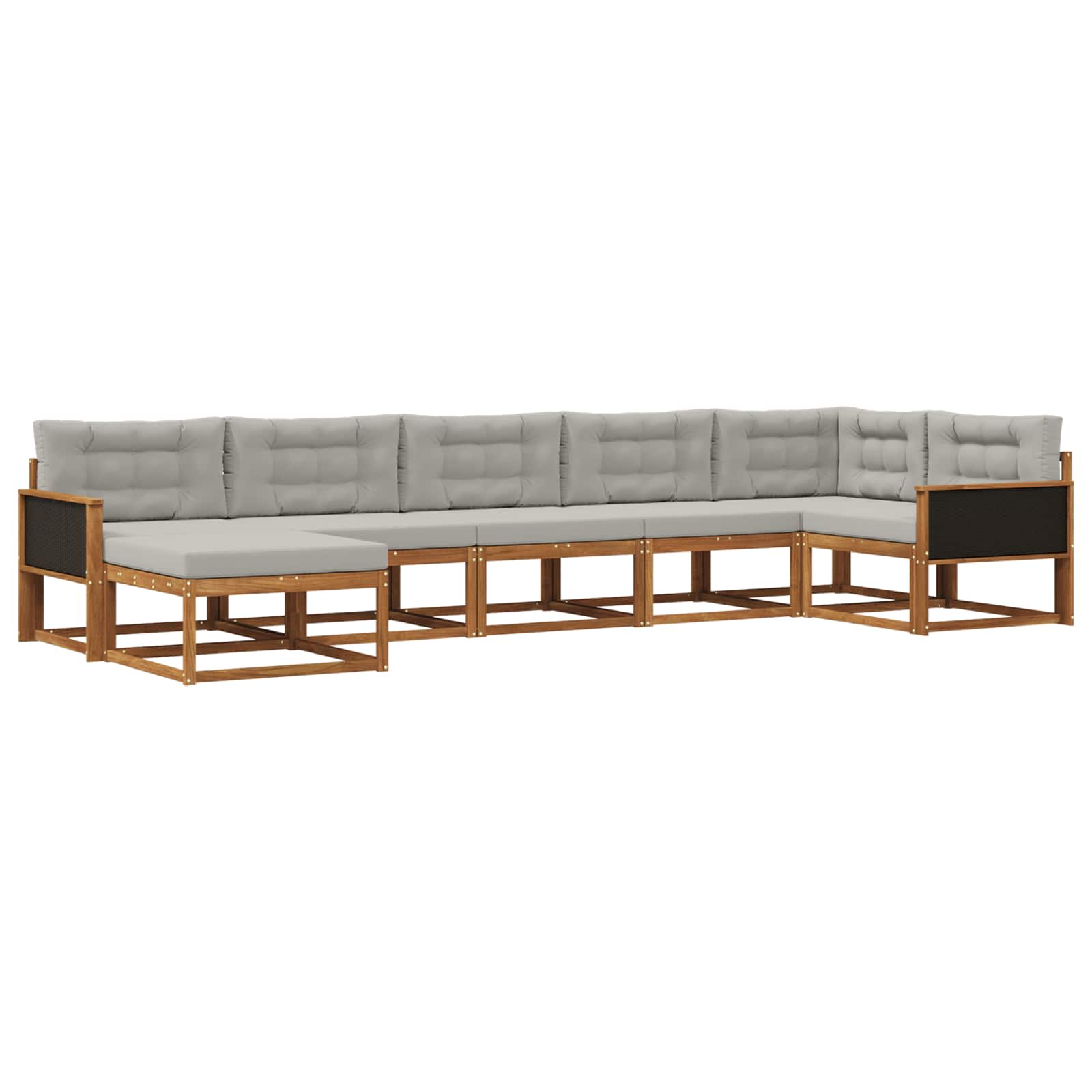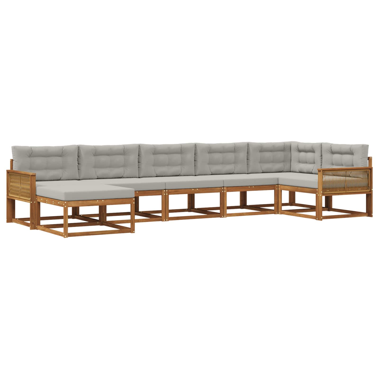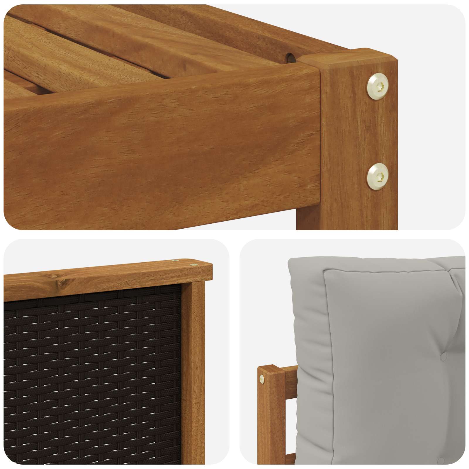 Ta zunanji sekcijski kavč je vsestranska oprema za vse zunanje prostore, saj združuje stil in funkcionalnost. Njegove čiste linije in edinstven dizajn so idealni za poležavanje, zabavo ali preprosto sproščanje kar v dvorišču, vrtu ali ob bazenu. Naravni toni in teksture se lepo zlijejo z okolico in ustvarjajo prijeten ambijent, idealen za družinska srečanja ali mirne trenutke. Kakovostni materiali: Ta kavč je narejen iz trdnega akacijevega lesa, ki je vzdržljiv in odporen na vremenske vplive. Održuje estetski videz in doda naravni pridih zunanjim prostorom. Funkcionalna letvičasta struktura: Fiksni okvir nudi trdno stabilnost. Letvice zagotavljajo dobro prezračevanje, zmanjšujejo vlago in olajšajo vzdrževanje. Obsežno udobje: S sladkim naslonjalom in praktičnimi naslonali ta set ponuja podporo za sproščanje med druženjem. Ergonomična zasnova je primerna za dolgotrajno uporabo. Prilagodljiva zasnova: Modularna struktura omogoča različne postavitve za različne priložnosti, bodisi za velike dogodke bodisi za intimne trenutke. Zunanje vzdrževanje: Ohranite videz z rednim brisanjem prahu z vlažno krpo in zaščitite pred neposredno sončno svetlobo, kamor ga shranite, ko ga ne potrebujete.