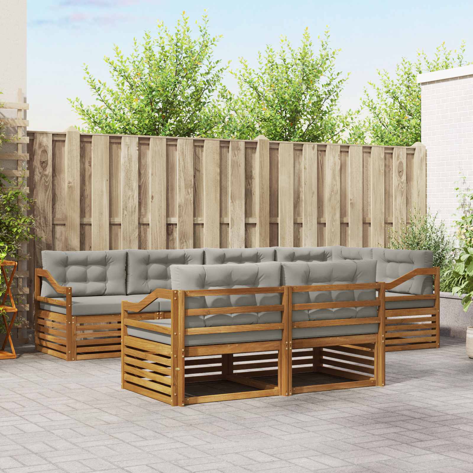 Ta set zunanjega pohištva združuje slog in uporabnost ter je odličen osrednji kos za vsak vrt ali teraso. Ima sodoben videz s čistimi linijami in minimalnimi podrobnostmi, kar doda eleganco, medtem ko vas spodbuja k uživanju na prostem in druženju. Narejen je iz trdnega akacijevega lesa, kar mu zagotavlja vzdržljivost in dolgotrajen videz, to je prava izbira za vse, ki iščete praktično in lepoto v zunanjem pohištvu. Vzdržljiv trden akacijev les: Ta set je znan po svoji trdnosti in sposobnosti, da prenese vse vremenske razmere. Njegova trdna konstrukcija nudi zanesljivo podporo in dolgotrajno uporabnost, medtem ko topel naravni ton polepša vsak vrt ali teraso. Oblikovanje, odporno na vreme: Ima lakirano površino, ki zagotavlja dodatno zaščito pred soncem in lahko padavinami. Njegov poliran zaključek ohranja izgled in funkcionalnost ter zagotavlja dolgo življenjsko dobo v vašem zunanjem prostoru. Komponente in dizajn: Vsak del, od naslonov za roke do naslonov za hrbet, je zasnovan tako za stil kot uporabnost. Doda udobje in zagotavlja harmoničen videz, kar je primerno za vse zunanje priložnosti. Udobje in vsestranskost: Modularna zasnova omogoča prilagodljive postavitve, primerne za različne prostore in potrebe. Ta set je popoln za sproščanje, družabne dogodke ali sproščene trenutke, se zlahka prilagaja vsakemu zunanjemu okolju, zagotavlja udobje in uporabnost. Enostavna nega in vzdrževanje: Preprosto obrišite površje z vlažno krpo in se izogibajte ostrim čistilom. Redna nega ohranja videz in podaljšuje življenjsko dobo pohištva.