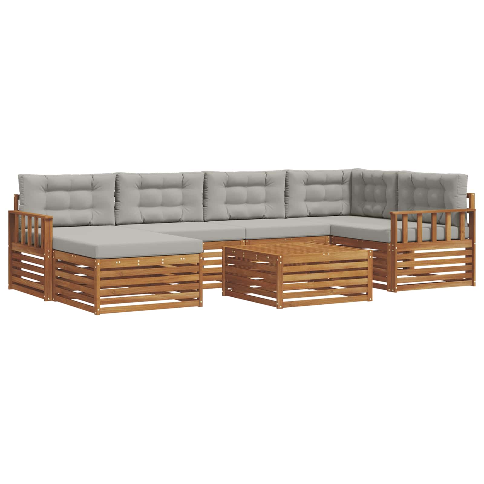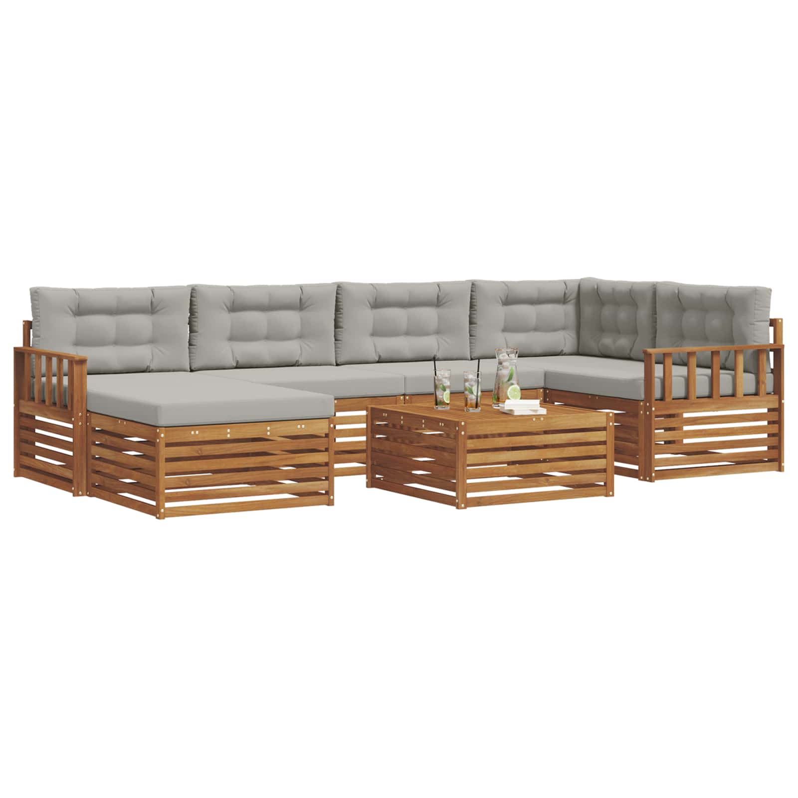 Ta komplet zunanjega pohištva odlično združuje stil in funkcionalnost, kar ga dela za pravi osrednji kos v vsakem vrtu ali na terasi. S svojim modernim dizajnom in čistimi linijami prinaša eleganco ter hkrati omogoča prijetno sprostitev in druženje na prostem. Izdelan iz trdnega akacijevega lesa, je ta komplet trpežen in dolgo časa lepo izgleda. Idealna izbira, če želite kombinirati praktičnost in dober dizajn v svojem zunanjem pohištvu. Vzdržljiv trden akacijev les: Ta zunanji pohištveni komplet je znan po svoji trdnosti in vzdržljivosti. Trdna konstrukcija zagotavlja dolgotrajno stabilnost, njegova topla naravna toni pa naredijo vsak vrt še lepši. Odpornost na vreme: S lakirano površino, je ta zunanjost zaščitena pred sončnimi žarki in lahkim dežjem. Poliran finiš ohranja videz in funkcionalnost, kar zagotavlja dolgo življenjsko dobo vašega pohištva. Komponente in oblikovanje: Vsak del kompleta je zasnovan za udobje in slog. Ergonomija in koherentno oblikovanje zagotavljata njegovo vizualno harmonijo in odličnost na vsakem srečanju. Udobje in vsestranskost: Modularna zasnova pomeni, da lahko prilagodite postavitev, da ustreza vašim potrebam. Od sprostitve do družabnih srečanj, ta set se brez težav prilagaja vsakemu zunanjemu prostoru. Enostavno vzdrževanje: Očistite ga z vlažno krpo in se izogibajte ostrim čistilnim sredstvom. Redna nega ohranja videz in podaljšuje življenjsko dobo pohištva.