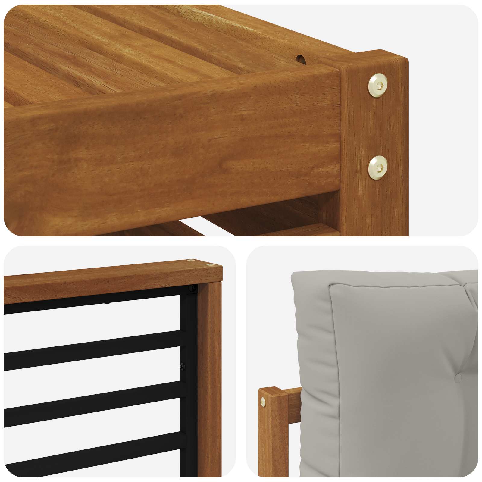 Ta komplet zunanjega pohištva odlično združuje stil in funkcionalnost, kar ga dela za pravi osrednji kos v vsakem vrtu ali na terasi. S svojim modernim dizajnom in čistimi linijami prinaša eleganco ter hkrati omogoča prijetno sprostitev in druženje na prostem. Izdelan iz trdnega akacijevega lesa, je ta komplet trpežen in dolgo časa lepo izgleda. Idealna izbira, če želite kombinirati praktičnost in dober dizajn v svojem zunanjem pohištvu. Vzdržljiv trden akacijev les: Ta zunanji pohištveni komplet je znan po svoji trdnosti in vzdržljivosti. Trdna konstrukcija zagotavlja dolgotrajno stabilnost, njegova topla naravna toni pa naredijo vsak vrt še lepši. Odpornost na vreme: S lakirano površino, je ta zunanjost zaščitena pred sončnimi žarki in lahkim dežjem. Poliran finiš ohranja videz in funkcionalnost, kar zagotavlja dolgo življenjsko dobo vašega pohištva. Komponente in oblikovanje: Vsak del kompleta je zasnovan za udobje in slog. Ergonomija in koherentno oblikovanje zagotavljata njegovo vizualno harmonijo in odličnost na vsakem srečanju. Udobje in vsestranskost: Modularna zasnova pomeni, da lahko prilagodite postavitev, da ustreza vašim potrebam. Od sprostitve do družabnih srečanj, ta set se brez težav prilagaja vsakemu zunanjemu prostoru. Enostavno vzdrževanje: Očistite ga z vlažno krpo in se izogibajte ostrim čistilnim sredstvom. Redna nega ohranja videz in podaljšuje življenjsko dobo pohištva.