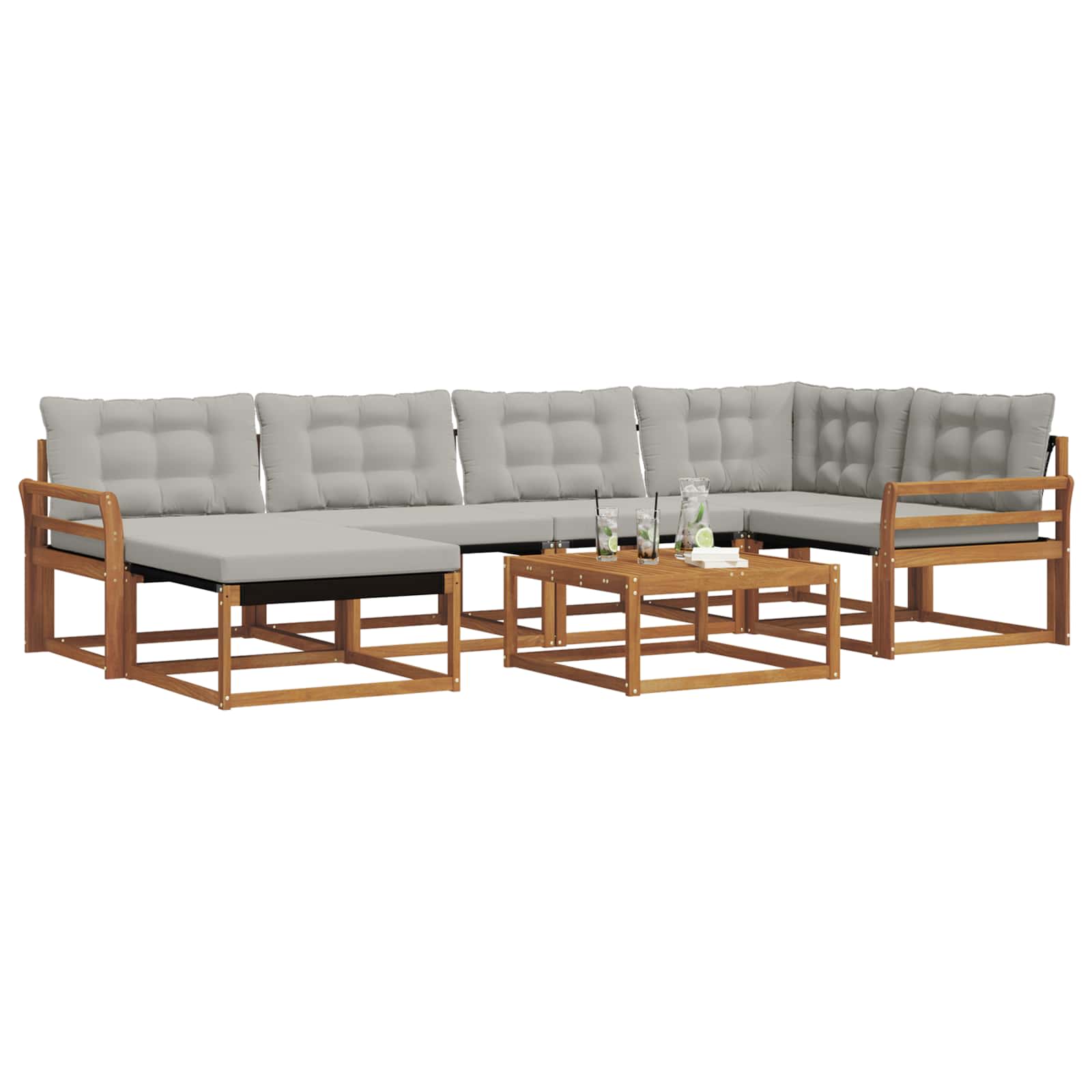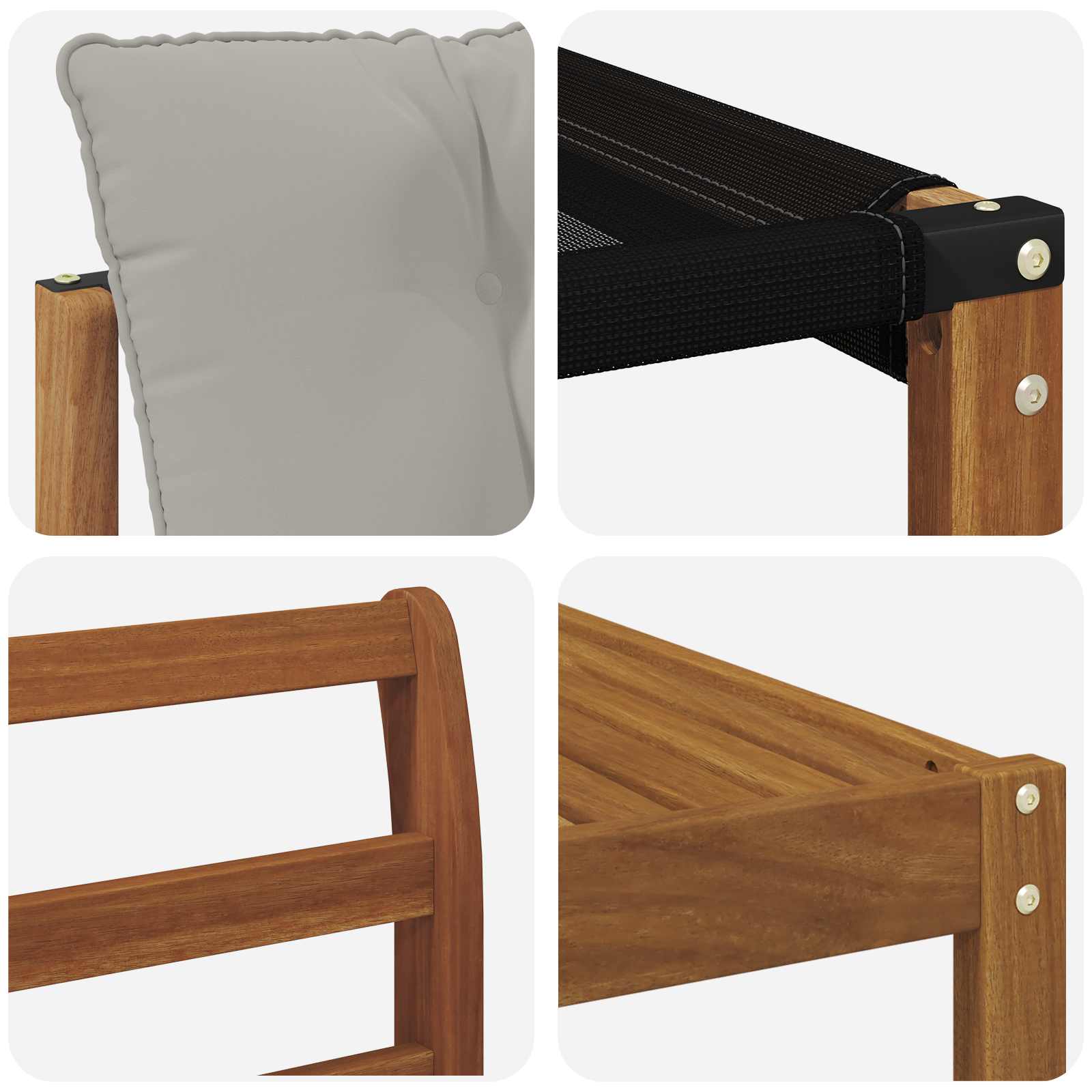 Ta soglasna sedežna garnitura lepo popestri vsak vrt ali teraso. Združuje udobje in stil ter je idealna za družinska srečanja. Trden akacijev les: Ta material dvigne videz seta in zagotavlja dolgo življenjsko dobo, ne glede na vreme. Naravni leseni toni se super zlijejo z zunanjim okoljem, kar ga naredi za brezčasno izbiro za vaš vrt ali teraso. Njegova odpornost proti obrabi ga naredi primerno za družabna srečanja in mirne trenutke. Integrirani elementi: Sofe imajo udobne naslone za roke in robusten okvir, oba narejena iz akacijevega lesa. Textilene hrbtne stene in debelo oblazinjene blazine nudijo dolgotrajno udobje. Snemljive sedežne blazine so z zadrgo, kar omogoča, da hitro in lahko očistite. Funkcionalne lastnosti: Zasnovan za uporabo na prostem, ta set je odporen na bledenje in enostaven za čiščenje, kar zagotavlja, da ostane videti nov. Naslon za hrbet podpori pravilno držo, medtem ko praktični nasloni za roke omogočajo udobno ležanje brez skrbi. Vsestrane uporabe: Ta sofa je odlična za različne zahteve, kot na primer zabave, piknike ali pa zgolj uživanje v mirnem večeru s knjigo. Njena zasnova se lepo dopolnjuje s sodobnimi prostori, kar jo naredi za odlično izbiro za digne ambient. Enostavno vzdrževanje: Da ohranite njen videz, jo enostavno obrišite z vlažno krpo. Ta preprosta rutina pomaga ohraniti vašo sedežno garnituro svežo skozi vse letne čase. Brez težav zaščitite svoj zunanji prostor in uživajte v dolgotrajnih druženjih.