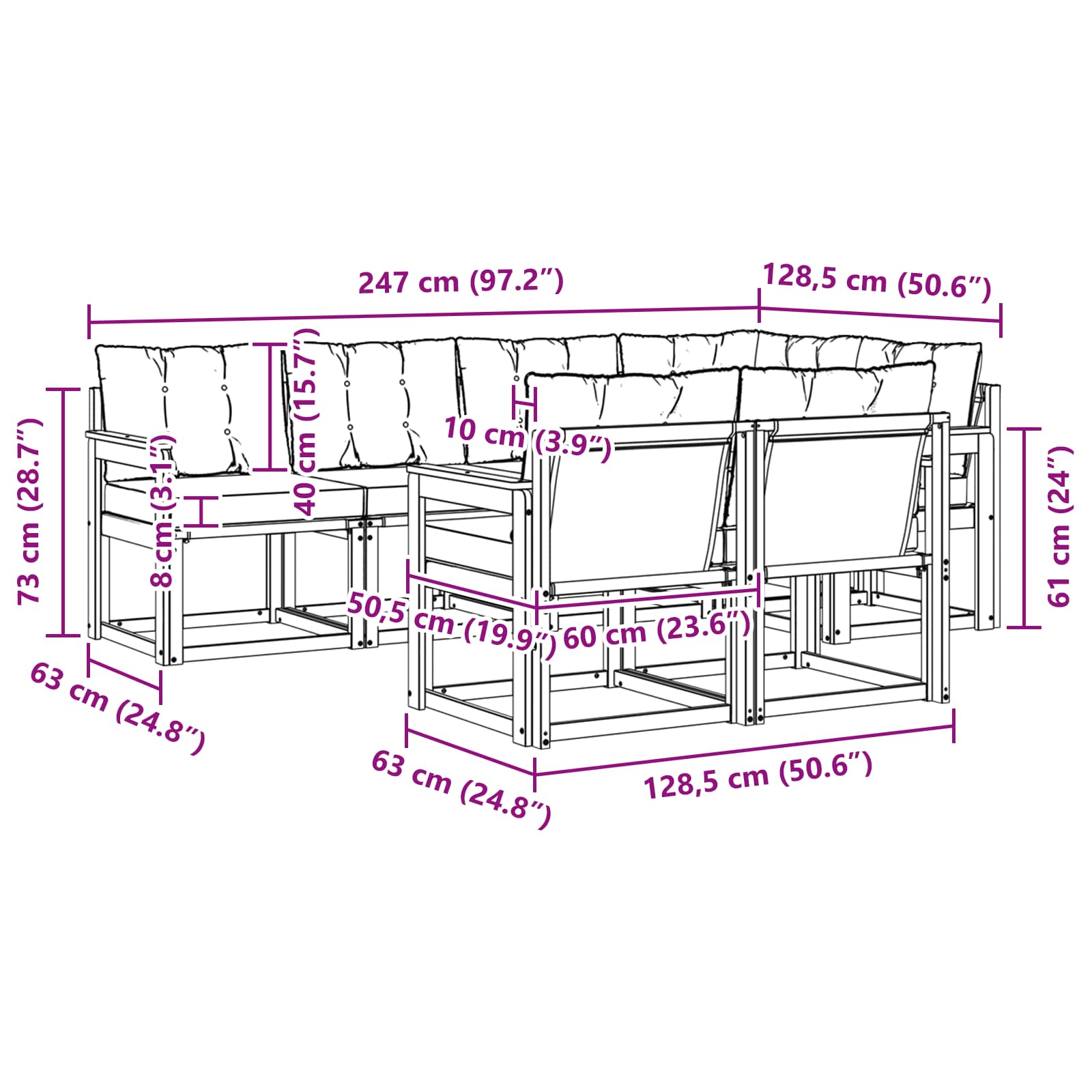 - 6 x Sedalna blazina: 60 x 50,5 x 8 cm (D x Š x V)