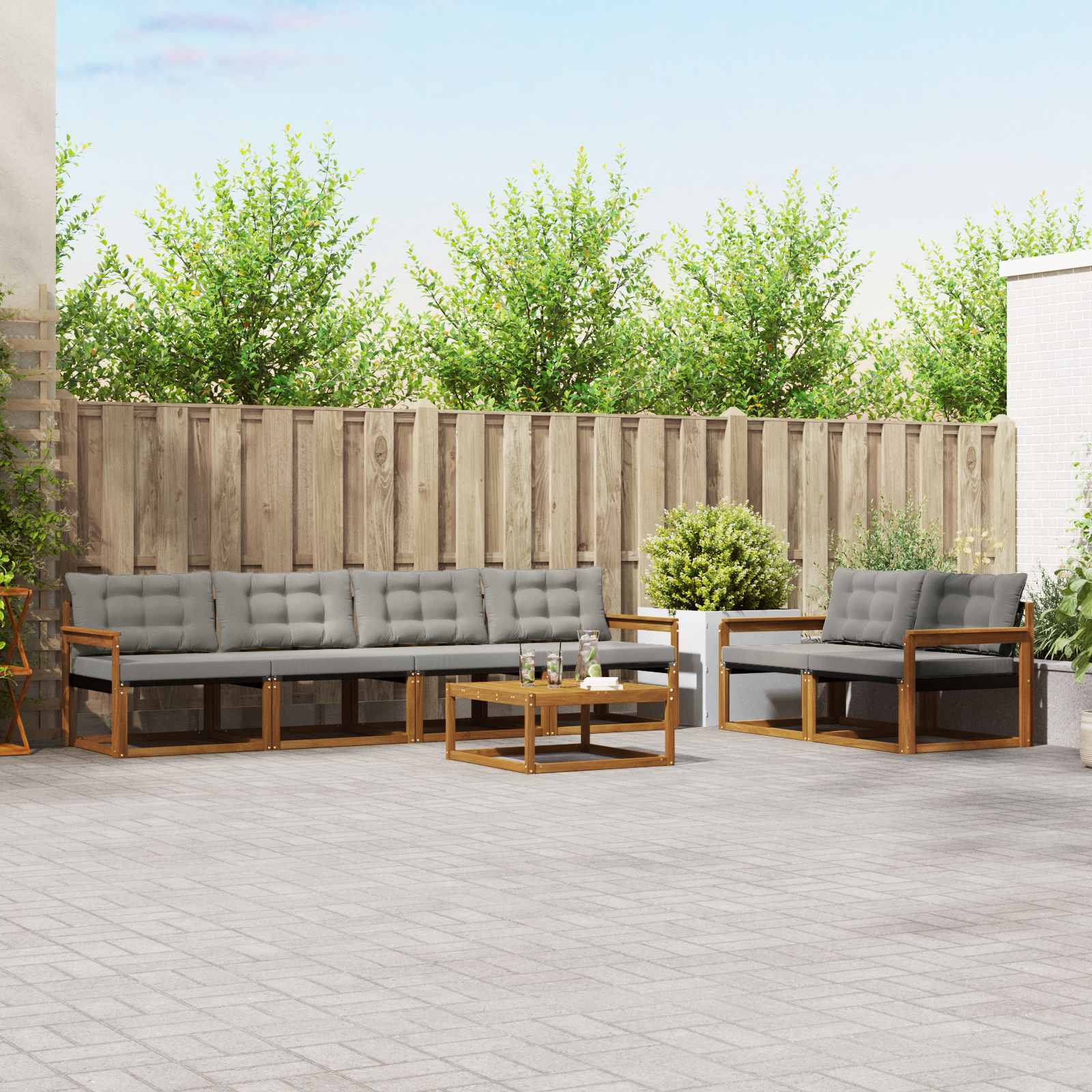 Set zunanjega pohištva povezuje slog in funkcionalnost ter ustvari osupljiv osrednji del za vsak vrt ali teraso. Njegova moderna zasnova s čistimi linijami in minimalizmom prinaša eleganco, hkrati pa omogoča sproščanje in družabna srečanja. Celotno je iz trdega akacijevega lesa, kar mu daje vzdržljivost in dolgotrajno lepoto – idealna izbira za tiste, ki cenijo tako praktičnost kot prefinjen dizajn zunanjega pohištva. Vzdržljiv trden akacijev les: Ta set zunanjega pohištva je znan po svoji dolgi življenjski dobi in odpornosti na zunanjo okolico. Njegova trdna konstrukcija nudi zanesljivo podporo, medtem ko topli naravni ton izboljša videz vašega vrta ali terase. Oblikovanje odporne na vreme: Set ima lakirano površino, ki daje dodaten sloj zaščite pred soncem in rahlim dežjem. Poliran zaključek ohranja tako videz kot funkcionalnost, kar zagotavlja dolgo življenjsko dobo za vaš zunanji prostor. Komponente in zasnova: Vsak kos, od naslonjal za roke do sedežnih delov, je zasnovan tako za slog kot funkcijo. Podporne značilnosti nudijo dodatno udobje, prav tako pa usklajena zasnova zagotavlja vizualno harmonijo za različne zunanje priložnosti. Udobje in vsestranskost: Modularna zasnova omogoča prilagodljive konfiguracije za različne prostore in potrebe. Idealno je za sprostitev, družabna srečanja ali mirno branje – ta set se prilagaja vsaki zunanji situaciji in optimizira udobje. Enostavna oskrba in vzdrževanje: Ohranite pohištvo v dobrem stanju tako, da ga obrišite z vlažno krpo in se izogibate ostrih čistilom. Redna oskrba podaljšuje življenje pohištva in ohranja njegov videz.
