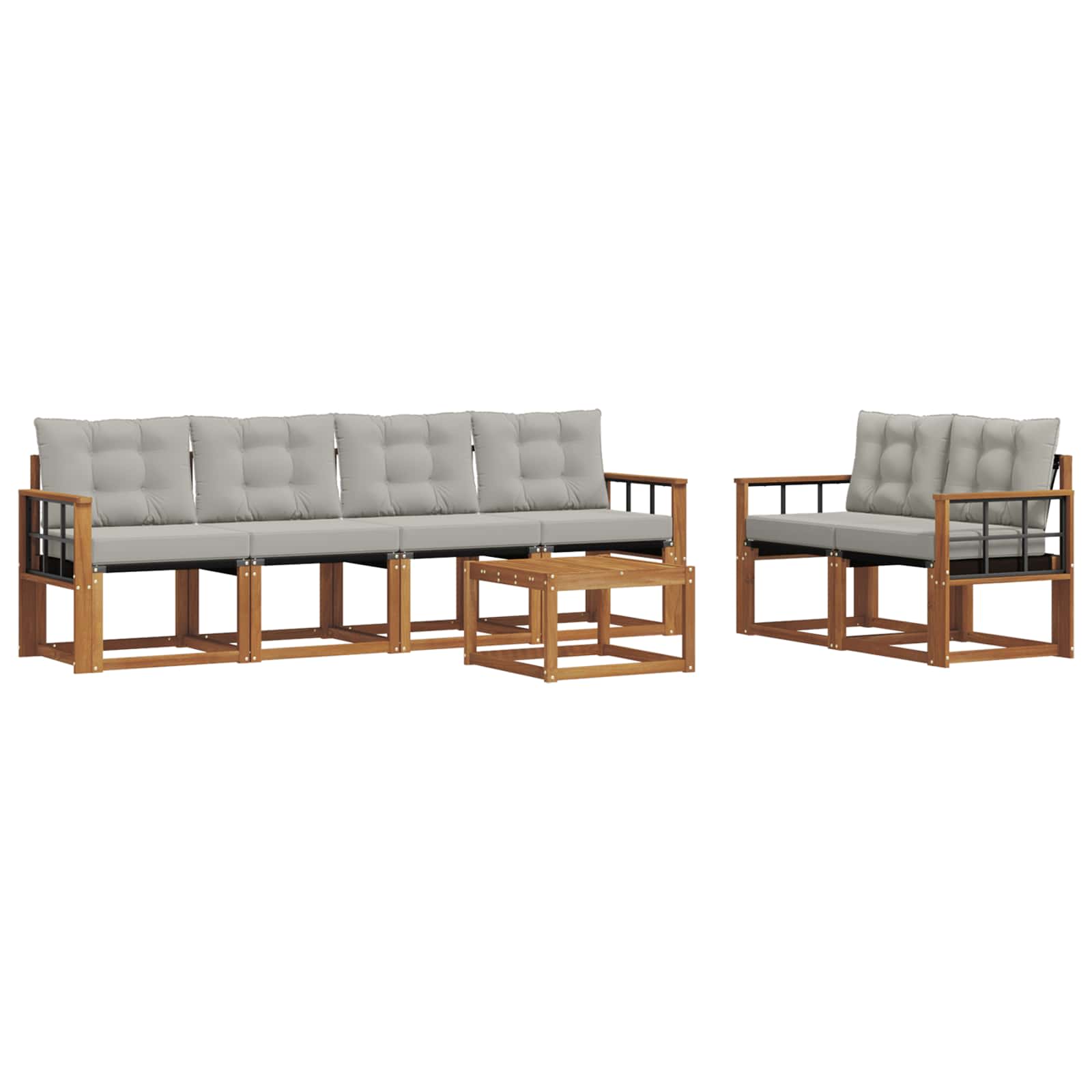 Zunanji pohištveni set povezuje stil in funkcionalnost ter postane osrednji del vsakega vrta ali terase. Njegov sodoben dizajn s čistimi linijami in preprostimi detajli doda eleganco ter omogoča sprostitev in družabne trenutke na prostem. Ta set, izdelan iz trdnega akacijevega lesa, nudi vzdržljivost in dolgo življenjsko dobo ter je popolna izbira za tiste, ki iščejo funkcionalno in estetsko privlačnost v zunanjih prostorih. Vzdržljiv trd acacijev les: Ta set zunanjega pohištva je zelo trden in odporen na vremenske vplive. Trdna konstrukcija nudi dolgotrajno podporo, naravni ton pa izboljša vsak vrt ali teraso. Odporen na vreme: Lakirana površina ponuja dodatno zaščito pred soncem in rahlim dežjem. Polirana končna obdelava ohranja lepoto in funkcionalnost, kar zagotavlja dolgotrajno vzdržljivost. Komponente in dizajn: Vsak del seta je zasnovan s stilom in funkcijo v mislih. Dodatne podpore natančno skrbijo za udobje, kar ohranja usklajeno in privlačno zasnovo. Udobje in prilagodljivost: Modularna zasnova omogoča prilagoditve za različne potrebe. Idealno za sprostitev ali družabna srečanja; ta set se enostavno prilagaja različnim zunanjim ambientom. Enostavna nega: Za ohranjanje pohištva obrišite z vlažno krpo in se izogibajte ostrim čistilom. Redno vzdrževanje podaljšuje življenjsko dobo pohištva.