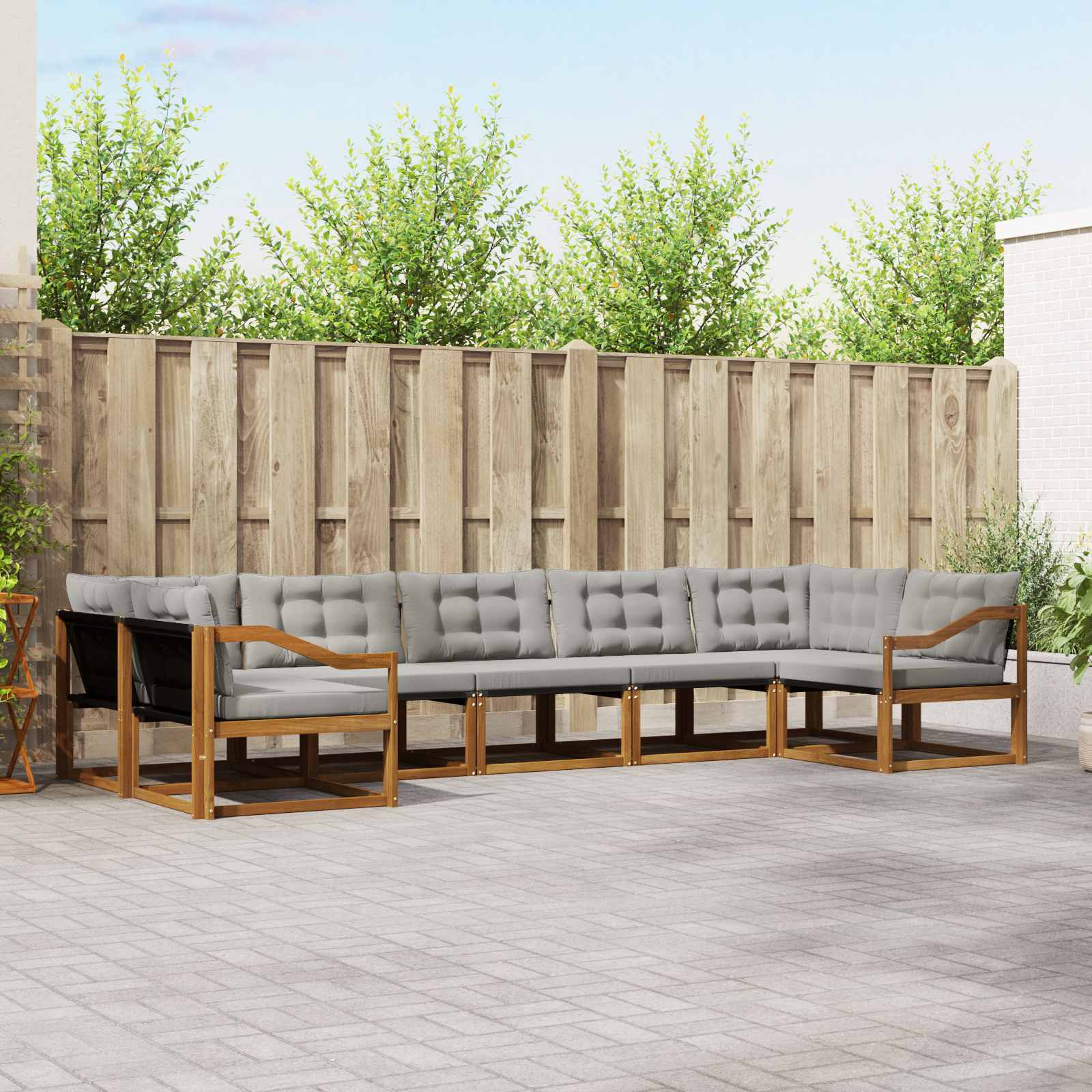 Ta set zunanjega pohištva združuje stil in funkcionalnost, kar ga naredi osrednji kos za vsak vrt ali teraso. Modernen dizajn s čistimi linijami in minimalističnim dodatkom doda kanček elegance, medtem ko skrbi za sprostitev na prostem in družabna srečanja. Izdelan iz trdnega akacijevega lesa, ta set je vzdržljiv in dolgo časa privlačen. Vzdržljiv trdno akacijevo les: Ta set je trpežen in klinast, kar je idealno za zunanje pogoje. Ima trdno konstrukcijo, ki nudi stabilnost in lepo naravno barvo, ki polepša vsak zunanji prostor. Oblikovanje odporne na vreme: Set ima lakirano površino, ki ga ščiti pred UV žarki in dežjem. Poliran zaključek mu omogoča dolgoživost in ohrani njegov videz. Udobje in vsestranskost: Modularna zasnova omogoča prilagojevanje potrebam in prostorom, saj je idealen za sprostitev ali družabne trenutke. Enostavna oskrba in vzdrževanje: Samo obrišite z vlažno krpo, da ohranite ta set v vrhunski formi. Redno vzdrževanje podaljša življenjsko dobo pohištva.