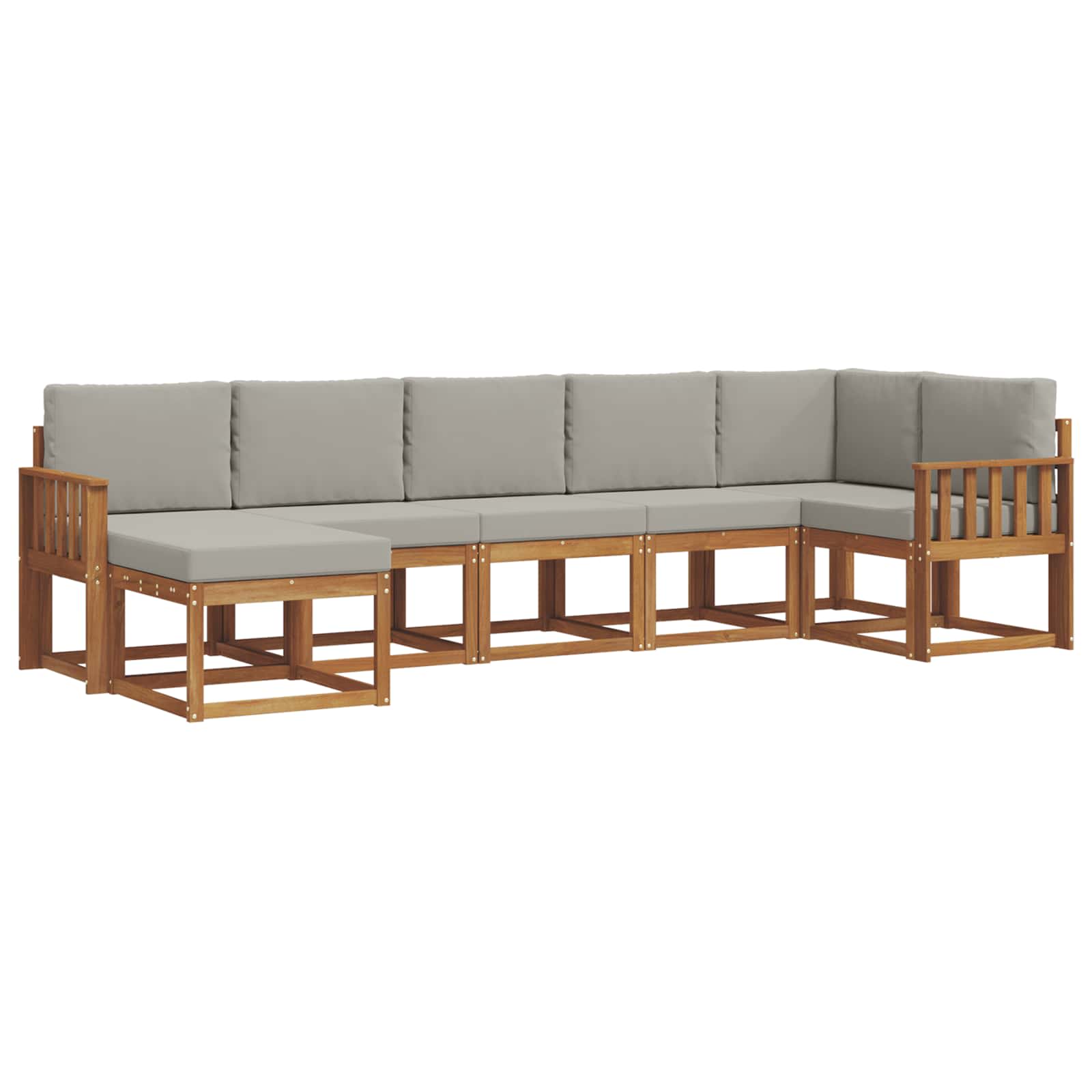 Ta čudovit Outdoor Sectional Sofa Set daje nov pomen zunanjim prostorom s svojim modernim in elegantnim stilom ter praktično modularno zasnovo. Odličen je za vrtnarjenje ali sproščanje ob bazenu, ta sofaset predstavlja sodoben dizajn, ki se ponaša s čistimi linijami in elegantno rjavo barvo, ki polepša vsak zunanji prostor. Ne glede na to, ali se sončite ali gostite prijatelje, ta kos ponuja fleksibilnost in milino, kar obljublja perfektno kombinacijo stila in funkcionalnosti. Trden akacijev les: Zasnova sofaseta vključuje vrhunski trden akacijev les, ki je znan po trdnosti in vzdržljivosti. Naravna tekstura vključuje elegance in ustvari topel ter prijeten prostor, kot nalašč za zunaj. Lamelni naslon: Oblika z lamelnim naslonom nudi odlično podporo in doda sodoben videz s svojimi elegantnimi linijami. Ta slog izgleda odlično in poskrbi, da vaši gostje uživajo v udobju. Fiksni letvičasti okvir: Ta sofa ima trden in stabilen okvir, ki ponuja stalno udobje in varnost. Njegova močna konstrukcija je idealna za vse zunanje pogoje. Modularna konfiguracija: Modularna zasnova omogoča enostavno prilagajanje in preurejanje sofaseta za različne nastavitve in priložnosti. Fleksibilnost je perfekna za vaša srečanja ali sproščujoče trenutke brez žrtvovanja udobja. Izbor nege: Da ohranite njegov izgled, uporabljajte prevleko, ko ga ne uporabljate, izogibajte se direktni sončni svetlobi in ga obrišite z vlažno krpo, ko je potrebna. Ta enostavna rutina zagotavlja dolgo življenjsko dobo in privlačnost vašega zunanjega pohištva.