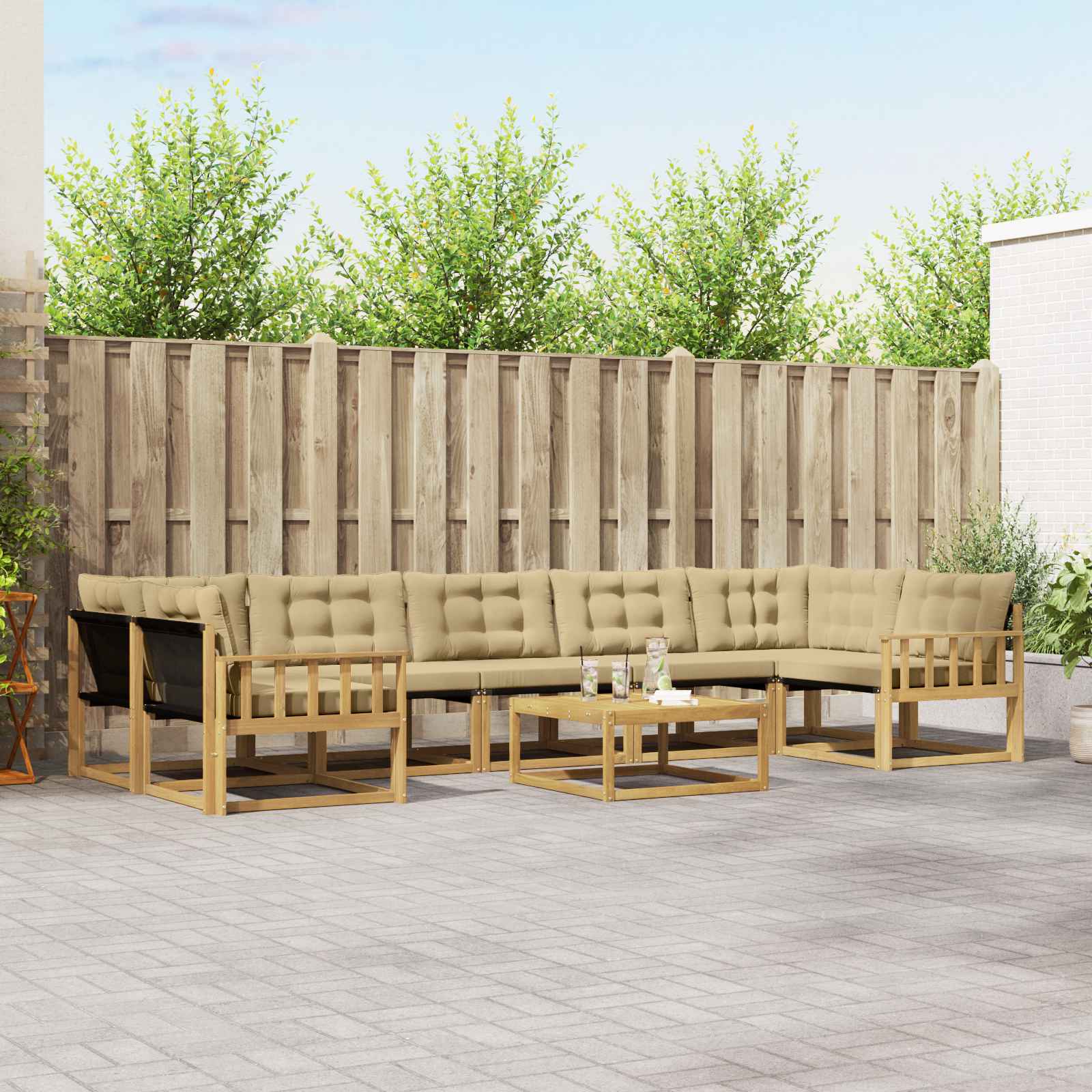 Ta sedežni set, narejen za zunanjo uporabo, združuje stil in funkcionalnost. Ima moderni videz z čistimi linijami in minimalno okrasitvijo, kar je idealno za vrtnarske ali terasne postavitve. Bogat rjav ton skupaj s privlačno lesno teksturo doda pridih elegance in vabi k sprostitvi in pogovoru. Ne glede na to, ali prirejaš poletno večerjo ali le uživaš pod zvezdami, se ta set brez težav prilagodi trenutku in ti omogoča, da ga konfiguriraš po svojih željah. Materiali in zaključek Narejen iz trdnega akacijevega lesa in Textilene, ta sedežni set združuje lepoto in uporabnost. Naravna odpornost akacijevega lesa ščiti pred vremenskimi vplivi, kar ga naredi primernega za zunanjo uporabo. V kombinaciji s tkanino Textilene, ki je znana po svoji vzdržljivosti in odpornosti proti bledenju, ta set obljublja, da bo dolgo ohranil svoj privlačen videz. Vključene komponente Set vsebuje različne kose, ki so prilagojeni udobju in uporabnosti. Vsak kos ima dobro oporo za hrbet in udobne naslone za roke, kar povečuje udobje med druženjem. Modularna zasnova omogoča enostavno preoblikovanje prostora, kar ga dela prilagodljivega za vsako priložnost. Lastnosti in funkcionalnost Ta set je zasnovan tako, da je odporen proti bledenju in enostaven za čiščenje, kar pomeni malo vzdrževanja. Zadrga na odstranljivih blazinah dodaja še eno plast udobja in omogoča preprosto vzdrževanje. Takšne funkcije zagotavljajo mešanico razkošja in praktičnosti, kar spodbuja daljšo uporabo. Priporočene uporabe Idealno za vrtove in terase, ta set je super izbira za zunanje prostore. Njegov moderen dizajn se lepo ujema z vsakim sodobnim okoljem, medtem ko robustni materiali zdržijo vremenske vplive, kar ga dela primernega tako za stanovanjske kot komercialne nastavitve. Vzdrževanje in oskrba Ohranjanje tega seta je enostavno: le obrišite površino z vlažno krpo, da ostane brezhiben. V slabem vremenu ga lahko pokrijete, da ohranite njegovo stanje skozi vse leto. Ti preprosti postopki oskrbe zagotavljajo, da vsak kos ohranja svoj čar in delovanje, kar se brez težav vključuje v vaš način življenja na prostem.