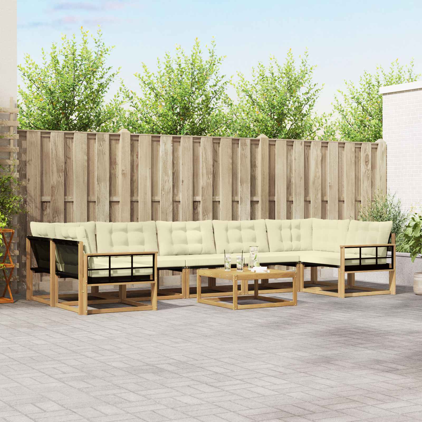 Ta sedežni set, narejen za zunanjo uporabo, združuje stil in funkcionalnost. Ima moderni videz z čistimi linijami in minimalno okrasitvijo, kar je idealno za vrtnarske ali terasne postavitve. Bogat rjav ton skupaj s privlačno lesno teksturo doda pridih elegance in vabi k sprostitvi in pogovoru. Ne glede na to, ali prirejaš poletno večerjo ali le uživaš pod zvezdami, se ta set brez težav prilagodi trenutku in ti omogoča, da ga konfiguriraš po svojih željah. Materiali in zaključek Narejen iz trdnega akacijevega lesa in Textilene, ta sedežni set združuje lepoto in uporabnost. Naravna odpornost akacijevega lesa ščiti pred vremenskimi vplivi, kar ga naredi primernega za zunanjo uporabo. V kombinaciji s tkanino Textilene, ki je znana po svoji vzdržljivosti in odpornosti proti bledenju, ta set obljublja, da bo dolgo ohranil svoj privlačen videz. Vključene komponente Set vsebuje različne kose, ki so prilagojeni udobju in uporabnosti. Vsak kos ima dobro oporo za hrbet in udobne naslone za roke, kar povečuje udobje med druženjem. Modularna zasnova omogoča enostavno preoblikovanje prostora, kar ga dela prilagodljivega za vsako priložnost. Lastnosti in funkcionalnost Ta set je zasnovan tako, da je odporen proti bledenju in enostaven za čiščenje, kar pomeni malo vzdrževanja. Zadrga na odstranljivih blazinah dodaja še eno plast udobja in omogoča preprosto vzdrževanje. Takšne funkcije zagotavljajo mešanico razkošja in praktičnosti, kar spodbuja daljšo uporabo. Priporočene uporabe Idealno za vrtove in terase, ta set je super izbira za zunanje prostore. Njegov moderen dizajn se lepo ujema z vsakim sodobnim okoljem, medtem ko robustni materiali zdržijo vremenske vplive, kar ga dela primernega tako za stanovanjske kot komercialne nastavitve. Vzdrževanje in oskrba Ohranjanje tega seta je enostavno: le obrišite površino z vlažno krpo, da ostane brezhiben. V slabem vremenu ga lahko pokrijete, da ohranite njegovo stanje skozi vse leto. Ti preprosti postopki oskrbe zagotavljajo, da vsak kos ohranja svoj čar in delovanje, kar se brez težav vključuje v vaš način življenja na prostem.