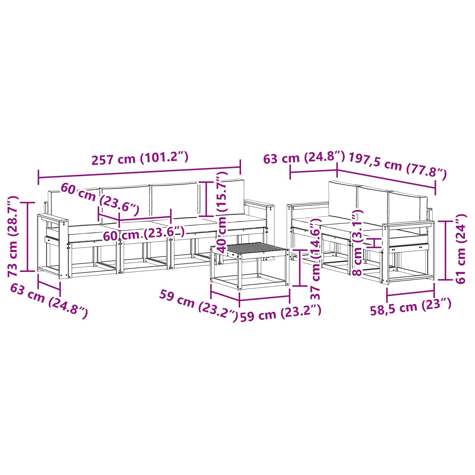 - 7 x sedežna blazina: 60 x 60 x 8 cm (D x Š x V)