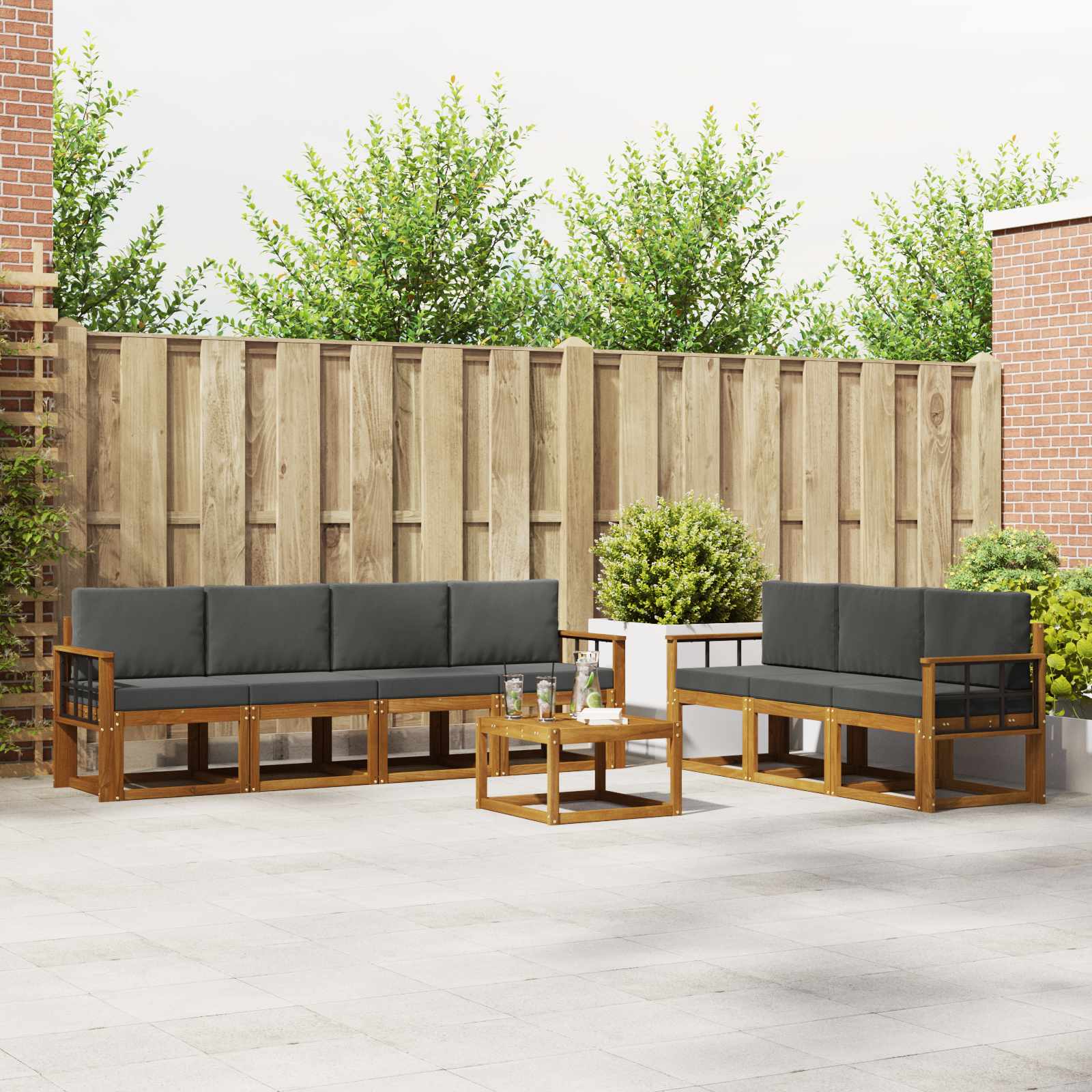 Ta zunanja garnitura združuje stil in prakso in deluje kot super osrednji del za vašo teraso ali vrt. Moderna zasnova s preprostimi linijami prinaša eleganco in hkrati nudi prostor za sprostitev in druženje s prijatelji. Izdelana iz trdnega akacijevega lesa, kar zagotavlja, da je trajna in privlačna dolgoročno, idealna za vse, ki iščejo praktično in elegantno zunanje pohištvo. Trden akacijev les: Ta garnitura je narejena iz močnega akacijevega lesa, znanega po svoji odpornosti in vzdržljivosti na zunanje pogoje. Stabilna konstrukcija zagotavlja dolgotrajno podporo, medtem ko naravne barve dodajajo lepoto vašemu prostoru. Na vreme odporna zasnova: Garnitura ima zaščiteno površino, kar nudi dodatno zaščito pred vremenskimi vplivi. Lakiran zaključek ohranja videz in funkcionalnost, kar zagotavlja dolgotrajno vzdržljivost na vaši terasi ali dvorišču. Kosi in zasnova: Vsak del je zasnovan za udobje in stil. Podporniki dodajajo udobje, medtem ko celotna zasnova ustvarja vizualno harmonijo, primerno za razne priložnosti na prostem. Udobje in prilagodljivost: Modularna zasnova omogoča prilagojene postavitve, ki se prilegajo različnim prostorom in potrebam. Popolna je za sprostitev, družabna srečanja ali mirno branje. Garnitura se brez težav prilagaja vsakemu zunanjemu prostoru. Enostavno vzdrževanje: Da ohranite pohištvo v super stanju, obrišite z vlažno krpo in se izogibajte močnim čistilom. Redna oskrba pomaga ohranjati lep videz in dolgotrajnost pohištva.
