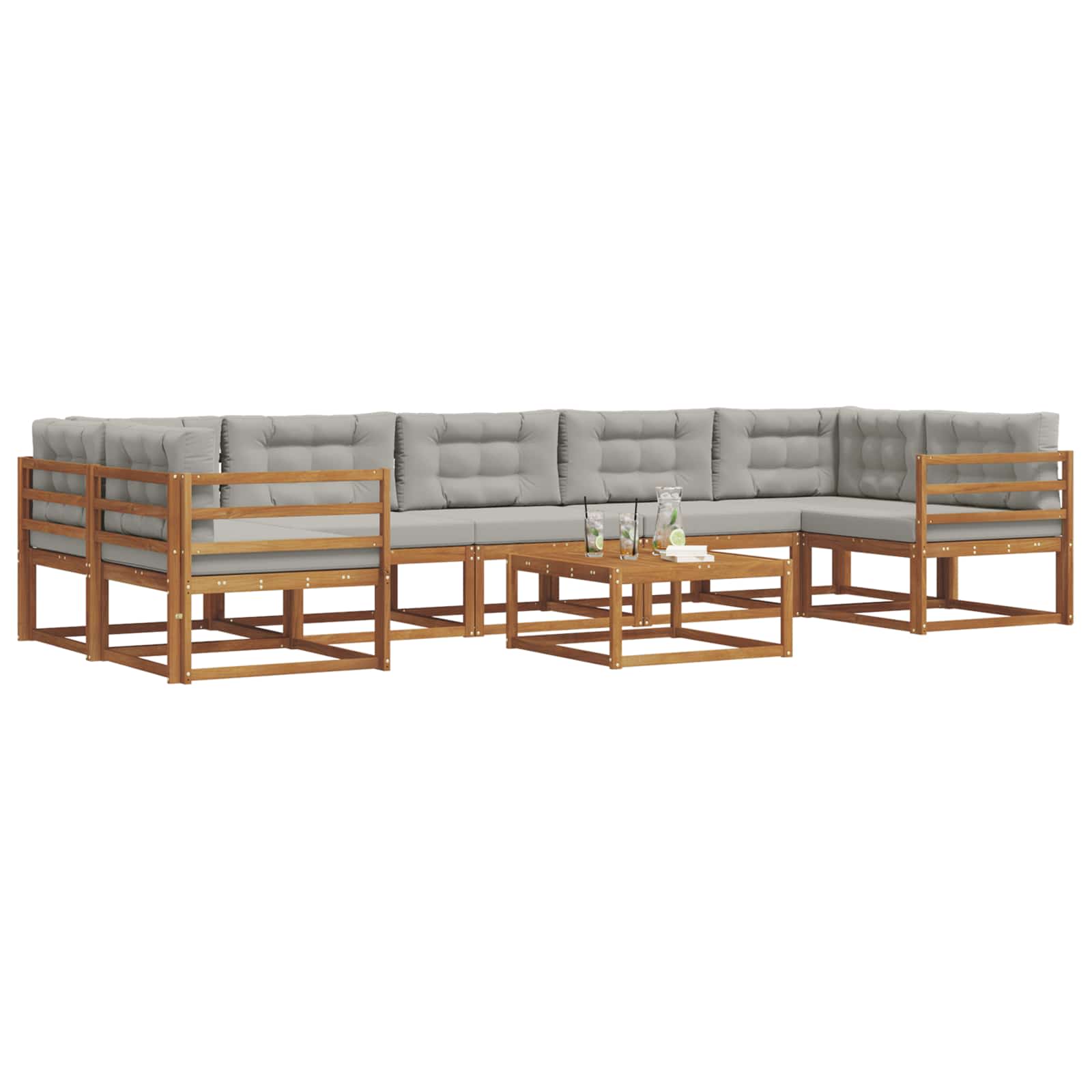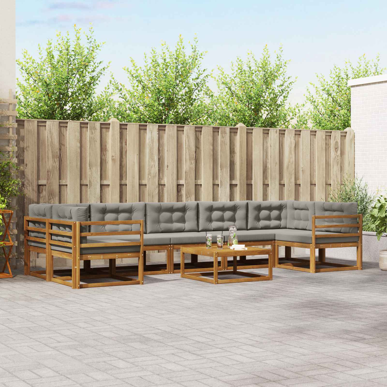 Ta komplet zunanji sekcijski kavč bo brez truda polepšal vaš vrt ali teraso s svojim modernim videzom in prilagodljivimi postavitvami. Zasnovan za prileganje različnim prostorom, ustvarja prijetno zatočišče, ki je idealno za sprostitev in druženja. Materiali: Zasnovan iz trdnega akacijevega lesa, ta sekcijski kavč prinaša naravno eleganco s svojo subtilno rjavo barvo. Naravna moč lesa zagotavlja odpornost na vremenske vplive in dolgo življenjsko dobo. Njegova barva in tekstura obogatita vse vrste zunanje dekoracije in dodata prostor toplino ter občutek domačnosti. Vključeni elementi: Komplet vključuje trdne okvirje, ki nudijo stabilnost, skupaj z rešetkastimi nasloni, ki izboljšajo udobje. Nasloni so prav tako iz istega trdnega materiala, kar zagotavlja podporo. Ti elementi skupaj ustvarijo enoten sklop, ki vaš patio spremeni v stilno lounge območje. Značilnosti / Funkcija / Zasnova: Praktični nasloni in podporni elementi so zasnovani za povečanje sprostitve. Rešetkasta zasnova ne le da povečuje estetsko privlačnost, temveč tudi zagotavlja zračnost s kroženjem zraka, kar je pomembno v toplih dneh. Modularna zasnova vam omogoča, da preuredite sedenje po želji in priložnostih. Priporočene uporabe: Ne glede na to, ali prirejate zabavo ali uživate v mirnih trenutkih, se ta kavč prilagaja. Njegova prijetna energija odlično ustreza različnim zunanjim prostorom, kot so terase, dvorišča in vrtnarije, saj nudi idealno zatočišče za zabavo in sprostitev. Skrb in vzdrževanje: Da bo kavč dolgo zdržal, priporočamo uporabo pokrova, ko ni v uporabi. Izogibajte se dolgotrajni izpostavljenosti soncu, da ohranite naravni lesk. Redno čiščenje s krpo bo dovolj za odstranitev prahu in umazanije ter ohranjanje svežega videza.