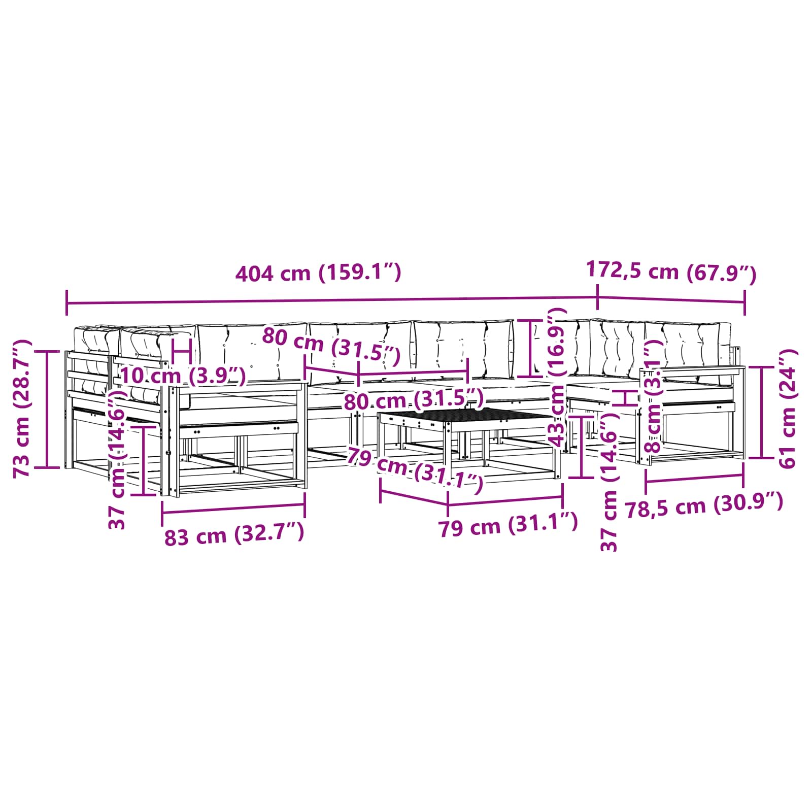 - 9 x hrbtno blazino: 80 x 43 x 10 cm (D x Š x V)