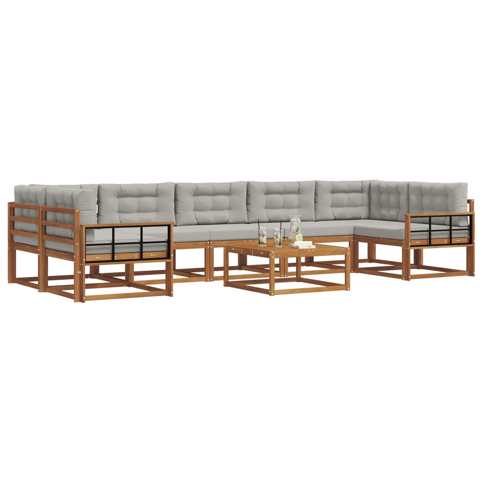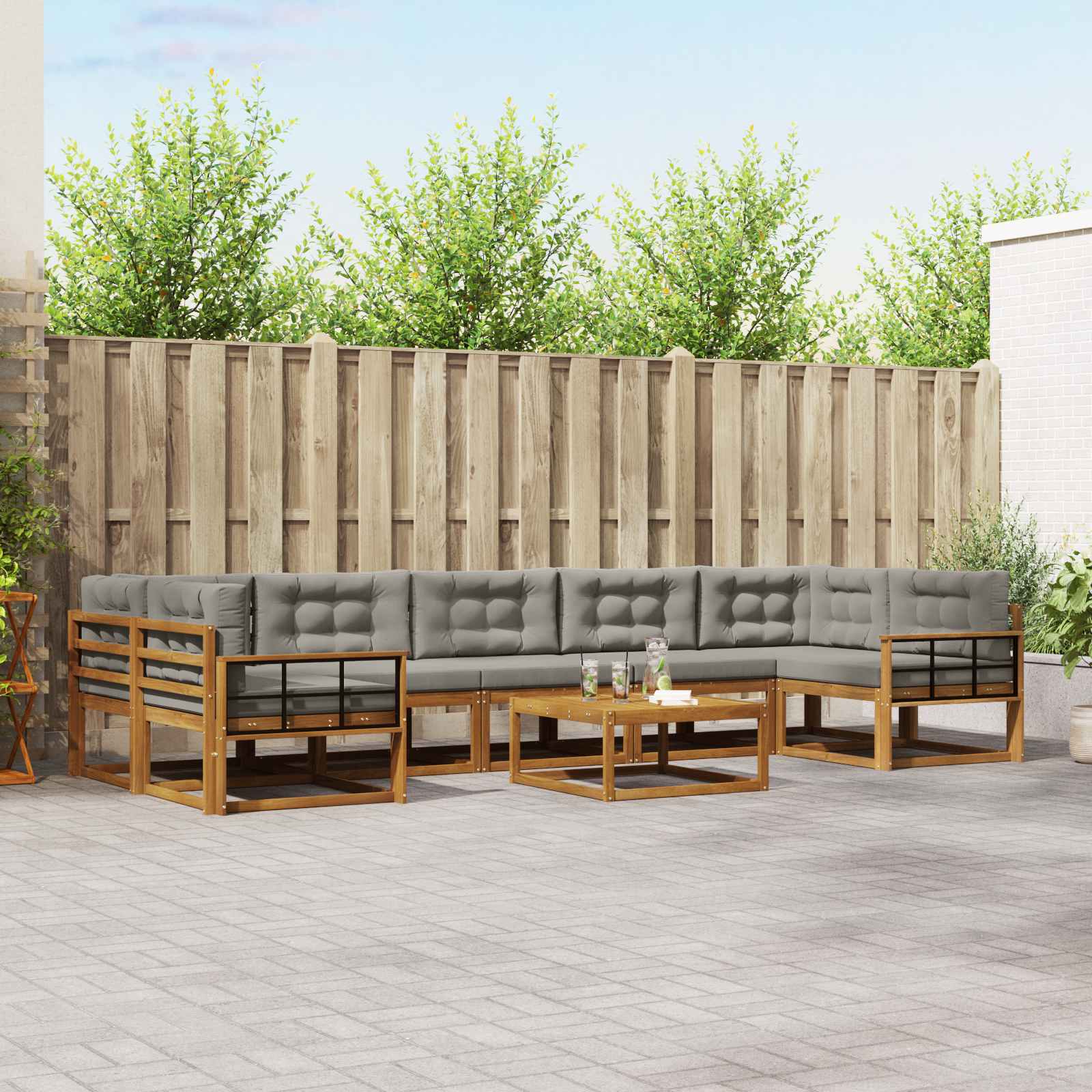 Ta komplet zunanji sekcijski kavč bo brez truda polepšal vaš vrt ali teraso s svojim modernim videzom in prilagodljivimi postavitvami. Zasnovan za prileganje različnim prostorom, ustvarja prijetno zatočišče, ki je idealno za sprostitev in druženja. Materiali: Zasnovan iz trdnega akacijevega lesa, ta sekcijski kavč prinaša naravno eleganco s svojo subtilno rjavo barvo. Naravna moč lesa zagotavlja odpornost na vremenske vplive in dolgo življenjsko dobo. Njegova barva in tekstura obogatita vse vrste zunanje dekoracije in dodata prostor toplino ter občutek domačnosti. Vključeni elementi: Komplet vključuje trdne okvirje, ki nudijo stabilnost, skupaj z rešetkastimi nasloni, ki izboljšajo udobje. Nasloni so prav tako iz istega trdnega materiala, kar zagotavlja podporo. Ti elementi skupaj ustvarijo enoten sklop, ki vaš patio spremeni v stilno lounge območje. Značilnosti / Funkcija / Zasnova: Praktični nasloni in podporni elementi so zasnovani za povečanje sprostitve. Rešetkasta zasnova ne le da povečuje estetsko privlačnost, temveč tudi zagotavlja zračnost s kroženjem zraka, kar je pomembno v toplih dneh. Modularna zasnova vam omogoča, da preuredite sedenje po želji in priložnostih. Priporočene uporabe: Ne glede na to, ali prirejate zabavo ali uživate v mirnih trenutkih, se ta kavč prilagaja. Njegova prijetna energija odlično ustreza različnim zunanjim prostorom, kot so terase, dvorišča in vrtnarije, saj nudi idealno zatočišče za zabavo in sprostitev. Skrb in vzdrževanje: Da bo kavč dolgo zdržal, priporočamo uporabo pokrova, ko ni v uporabi. Izogibajte se dolgotrajni izpostavljenosti soncu, da ohranite naravni lesk. Redno čiščenje s krpo bo dovolj za odstranitev prahu in umazanije ter ohranjanje svežega videza.
