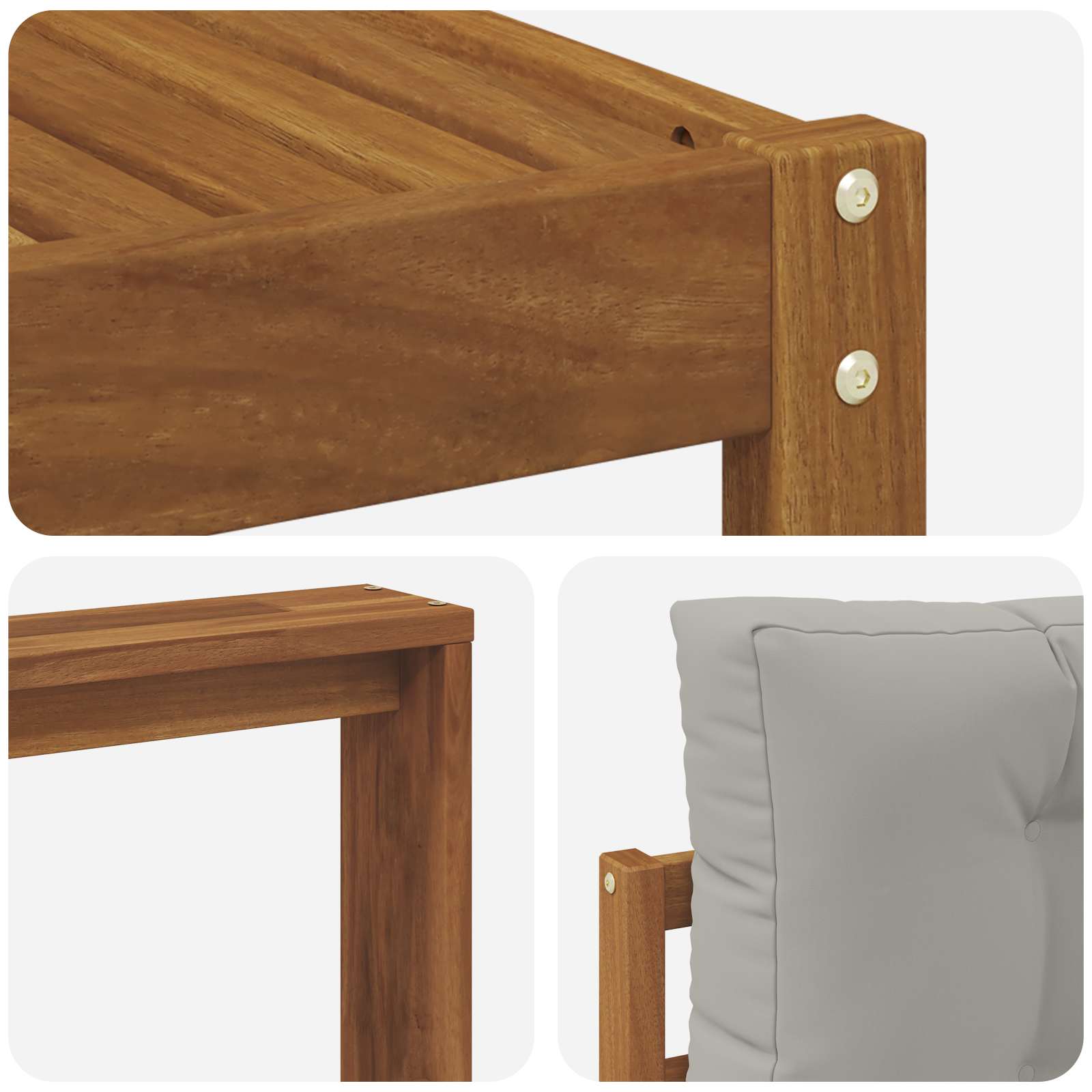 Ta zunanja sekcijska kavč skupina je moderna pohištvena enota, ki izboljša vsak zunanji prostor s svojimi čistimi, minimalističnimi linijami in funkcionalnostjo. Ponuja popolno mešanico stila in substance, kar jo dela idealno za vsakogar, ki si želi izboljšati svoj vrt, teraso ali prostor ob bazenu. Skupina se ponaša z bogato rjavo barvo, ki se ujema z naravo, in dodaja prijeten in sodoben občutek druženju na prostem. Zasnovana je za tiste, ki iščejo estetiko in udobje, ta kavč skupina postane prava osrednja točka družabnih aktivnosti ali mirnega sproščanja. Trden akacijev les: Ta skupina je narejena iz trdnega akacijevega lesa, znanega po svoji bogati teksturi in naravnih vzorcih. Les je izjemno odporen na zunanje elemente, kar pomeni, da bo pohištvo ohranilo svoj čar tudi po sezoni. Akacijev les je trden in dolgotrajen, kar pomeni, da prenese vsakodnevno uporabo. Lamelni naslon: Lamelno naslonjalo zagotavlja udobje in podporo hrbtu med daljšim sedenjem. Ne le, da doda estetski vidik, ampak tudi omogoča zračno kroženje, kar vas drži svežega in sproščenega. Ta funkcija zagotavlja, da je skupina tako funkcionalna kot privlačna, kar jo dela priljubljeno pri tistih, ki uživajo na svežem zraku. Fiksni letvičasti okvir: Ima trden okvir iz letvic, kar nudi odlično podporo in stabilnost. Čeprav konstrukcija ni prilagodljiva, pokriva vse potrebe po udobnem sedenju, kar je idealno za zunanje okolje. Oblikovanje okvirja je praktično in dopolnjuje sodoben izgled kavča. Obsežne funkcije udobja: Zasnovan z udobnimi nasloni za roke iz trdnega akacijevega lesa, ta kavč skupina nudi dodatno plast udobja. Nasloni omogočajo dovolj prostora za počitek rok ali celo pijač, kar povečuje uporabnost pohištva, zlasti med družabnimi dogodki. Odporna zasnova: Zasnovana za uporabo na prostem, ustreza različnim vremenskim razmeram. Kosi ohranjajo svojo celovitost pred soncem in vlago. Njihova robustnost je združena z lepim videzom, kar poenostavi vzdrževanje s preprostim brisanjem z vlažno krpo, ko je to potrebno.