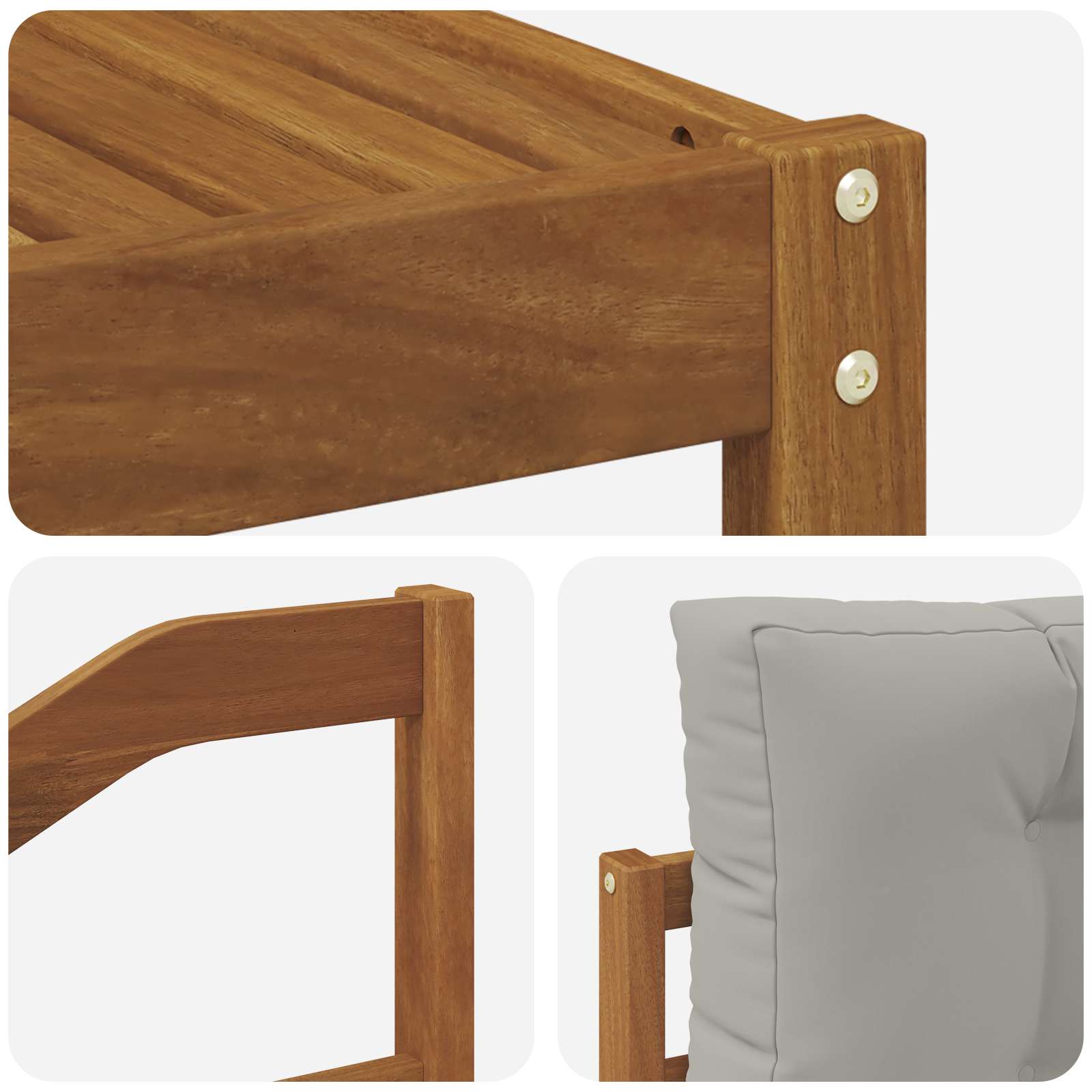 Ta zunanja sekcijska kavč skupina je moderna pohištvena enota, ki izboljša vsak zunanji prostor s svojimi čistimi, minimalističnimi linijami in funkcionalnostjo. Ponuja popolno mešanico stila in substance, kar jo dela idealno za vsakogar, ki si želi izboljšati svoj vrt, teraso ali prostor ob bazenu. Skupina se ponaša z bogato rjavo barvo, ki se ujema z naravo, in dodaja prijeten in sodoben občutek druženju na prostem. Zasnovana je za tiste, ki iščejo estetiko in udobje, ta kavč skupina postane prava osrednja točka družabnih aktivnosti ali mirnega sproščanja. Trden akacijev les: Ta skupina je narejena iz trdnega akacijevega lesa, znanega po svoji bogati teksturi in naravnih vzorcih. Les je izjemno odporen na zunanje elemente, kar pomeni, da bo pohištvo ohranilo svoj čar tudi po sezoni. Akacijev les je trden in dolgotrajen, kar pomeni, da prenese vsakodnevno uporabo. Lamelni naslon: Lamelno naslonjalo zagotavlja udobje in podporo hrbtu med daljšim sedenjem. Ne le, da doda estetski vidik, ampak tudi omogoča zračno kroženje, kar vas drži svežega in sproščenega. Ta funkcija zagotavlja, da je skupina tako funkcionalna kot privlačna, kar jo dela priljubljeno pri tistih, ki uživajo na svežem zraku. Fiksni letvičasti okvir: Ima trden okvir iz letvic, kar nudi odlično podporo in stabilnost. Čeprav konstrukcija ni prilagodljiva, pokriva vse potrebe po udobnem sedenju, kar je idealno za zunanje okolje. Oblikovanje okvirja je praktično in dopolnjuje sodoben izgled kavča. Obsežne funkcije udobja: Zasnovan z udobnimi nasloni za roke iz trdnega akacijevega lesa, ta kavč skupina nudi dodatno plast udobja. Nasloni omogočajo dovolj prostora za počitek rok ali celo pijač, kar povečuje uporabnost pohištva, zlasti med družabnimi dogodki. Odporna zasnova: Zasnovana za uporabo na prostem, ustreza različnim vremenskim razmeram. Kosi ohranjajo svojo celovitost pred soncem in vlago. Njihova robustnost je združena z lepim videzom, kar poenostavi vzdrževanje s preprostim brisanjem z vlažno krpo, ko je to potrebno.