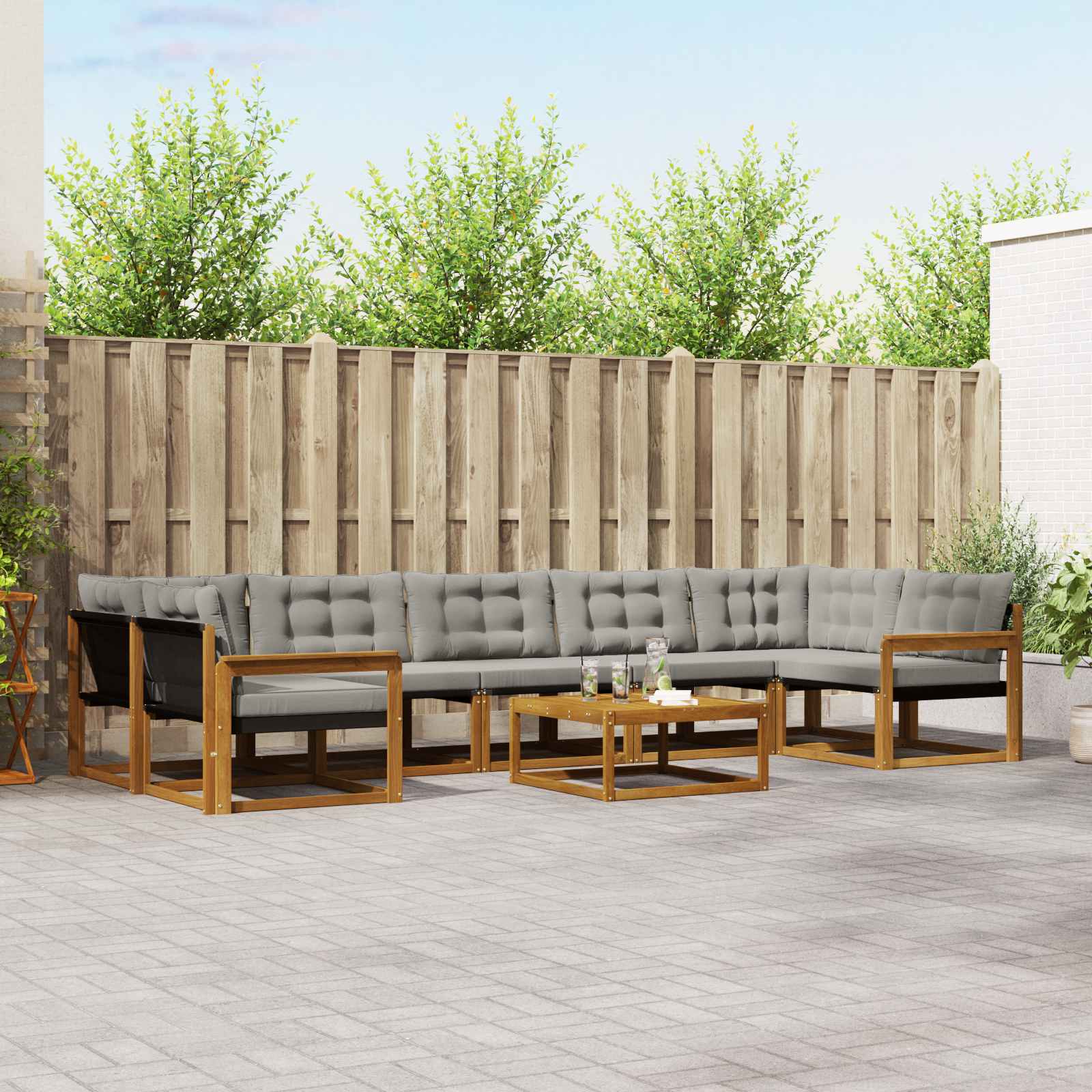 Ta sedežni set, narejen za zunanjo uporabo, združuje stil in funkcionalnost. Ima moderni videz z čistimi linijami in minimalno okrasitvijo, kar je idealno za vrtnarske ali terasne postavitve. Bogat rjav ton skupaj s privlačno lesno teksturo doda pridih elegance in vabi k sprostitvi in pogovoru. Ne glede na to, ali prirejaš poletno večerjo ali le uživaš pod zvezdami, se ta set brez težav prilagodi trenutku in ti omogoča, da ga konfiguriraš po svojih željah. Materiali in zaključek Narejen iz trdnega akacijevega lesa in Textilene, ta sedežni set združuje lepoto in uporabnost. Naravna odpornost akacijevega lesa ščiti pred vremenskimi vplivi, kar ga naredi primernega za zunanjo uporabo. V kombinaciji s tkanino Textilene, ki je znana po svoji vzdržljivosti in odpornosti proti bledenju, ta set obljublja, da bo dolgo ohranil svoj privlačen videz. Vključene komponente Set vsebuje različne kose, ki so prilagojeni udobju in uporabnosti. Vsak kos ima dobro oporo za hrbet in udobne naslone za roke, kar povečuje udobje med druženjem. Modularna zasnova omogoča enostavno preoblikovanje prostora, kar ga dela prilagodljivega za vsako priložnost. Lastnosti in funkcionalnost Ta set je zasnovan tako, da je odporen proti bledenju in enostaven za čiščenje, kar pomeni malo vzdrževanja. Zadrga na odstranljivih blazinah dodaja še eno plast udobja in omogoča preprosto vzdrževanje. Takšne funkcije zagotavljajo mešanico razkošja in praktičnosti, kar spodbuja daljšo uporabo. Priporočene uporabe Idealno za vrtove in terase, ta set je super izbira za zunanje prostore. Njegov moderen dizajn se lepo ujema z vsakim sodobnim okoljem, medtem ko robustni materiali zdržijo vremenske vplive, kar ga dela primernega tako za stanovanjske kot komercialne nastavitve. Vzdrževanje in oskrba Ohranjanje tega seta je enostavno: le obrišite površino z vlažno krpo, da ostane brezhiben. V slabem vremenu ga lahko pokrijete, da ohranite njegovo stanje skozi vse leto. Ti preprosti postopki oskrbe zagotavljajo, da vsak kos ohranja svoj čar in delovanje, kar se brez težav vključuje v vaš način življenja na prostem.