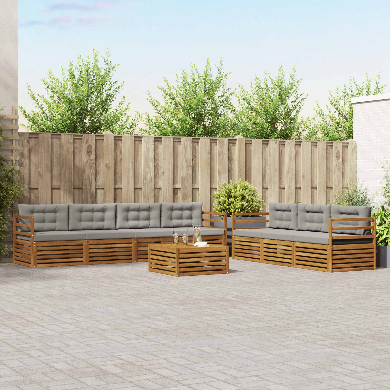 Zunanja pohištvena garnitura združuje slog in funkcionalnost, kar ustvari super središče za vsak vrt ali teraso. S svojo moderno zasnovo in čistimi linijami doda eleganco, hkrati pa omogoča sproščanje na prostem in druženje. Izdelana je iz trdnega akacijevega lesa, kar pomeni, da je trpežna in dolgotrajna, kar jo dela idealno izbiro za tiste, ki želijo praktičnost in odličen dizajn v zunanjem pohištvu. Vzdržljiv trdni akacijev les: Ta zunanja garnitura iz trdnega akacijevega lesa je resna zvezda, znana po svoji dolgi življenjski dobi in odpornosti na zunanje vplive. Trdna konstrukcija nudi zanesljivo podporo in je pozornost pritegnila zahvaljujoč toplemu naravnemu tonu, ki obogati vsak vrt ali teraso. Oblika odporna na vreme: S posebno lakirano površino ta garnitura še bolj ščiti pred soncem, dežjem in drugimi zunanjimi vplivi. Poliran zaključek ohranja tako videz kot funkcionalnost, kar zagotavlja dolgo življenjsko dobo za vaš vrt, teraso ali dvorišče. Komponente & dizajn: Vsak element, od naslonov do naslonov za hrbet, je zasnovan s stilom in funkcijo v mislih. Podporna struktura nudi dodatno udobje, medtem ko harmonična zasnova zagotavlja vizualno privlačnost, primerno za različne zunanje priložnosti. Udobje & vsestranskost: Modularna zasnova omogoča prilagodljive postavitve, ki ustrezajo različnim prostorom in potrebam. Idealna za sprostitev, druženje ali mirno branje, ta garnitura se brez težav prilagodi vsakemu okolju, hkrati pa maksimira udobje in funkcionalnost. Enostavno vzdrževanje: Da bodo vaša pohištvena dela videti dobro, preprosto obrišite površino z vlažno krpo in se izogibajte močnim čistilnikom. Redno vzdrževanje ohranja videz in podaljšuje življenje pohištva.