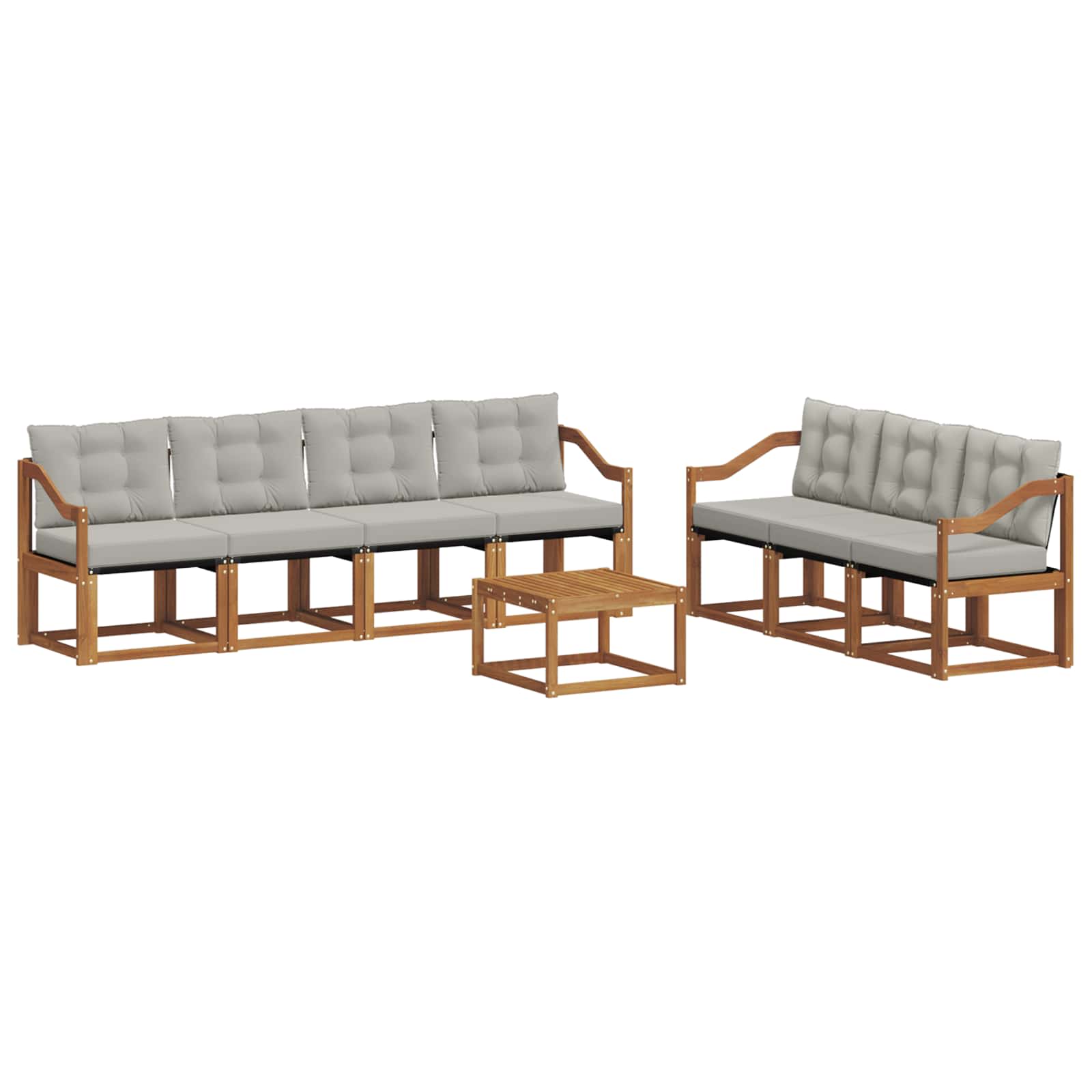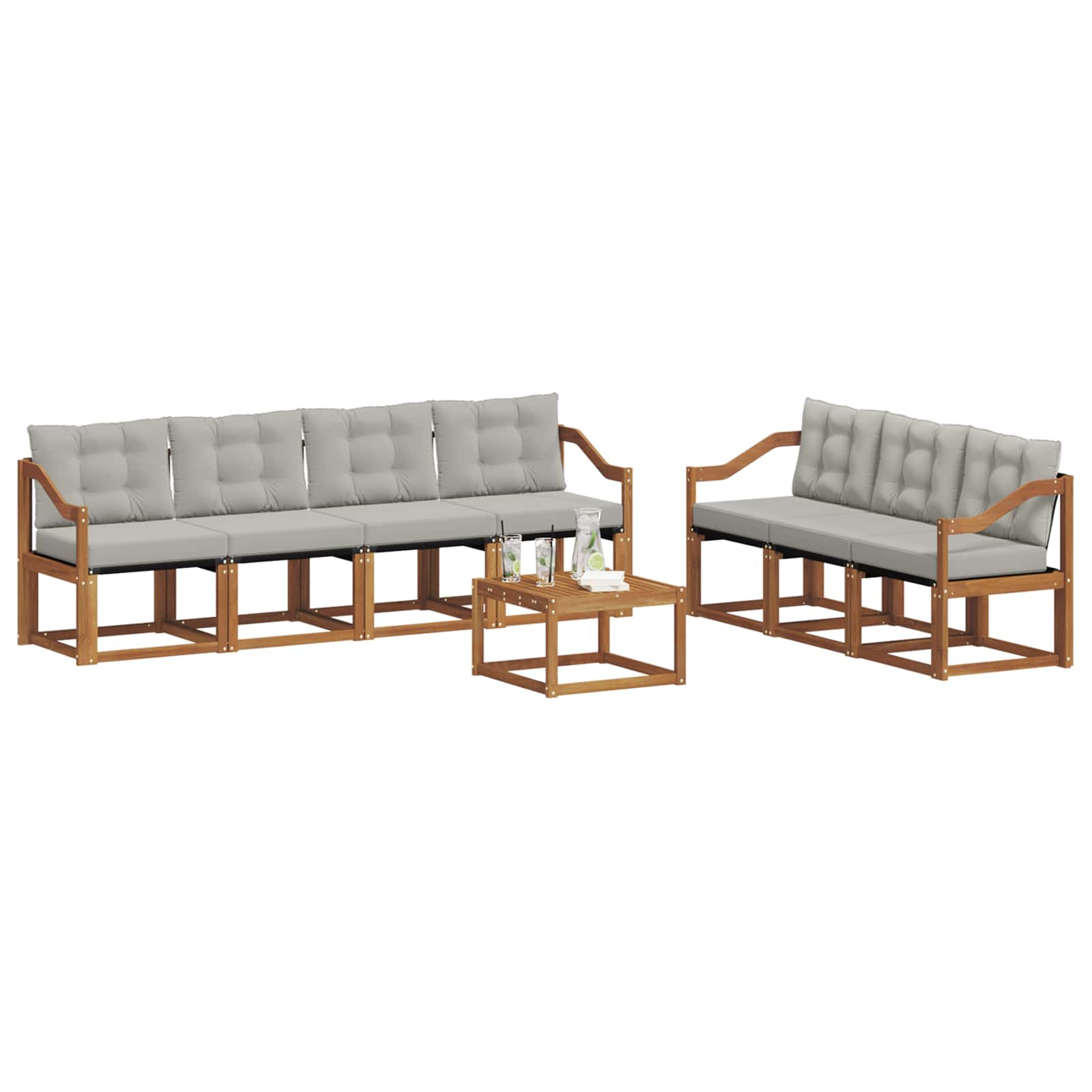 Zunanja pohištvena garnitura združuje slog in funkcionalnost, kar ustvari čudovito središče za kakršen koli vrt ali teraso. Njena moderna zasnova s čistimi linijami in minimalističnim oblikovanjem doda eleganco in podpira sprostitev ter druženje na prostem. Izdelana je iz trdnega akacijevega lesa, ki je vzdržljiv in dolgoživ, kar jo naredi popolno izbiro za tiste, ki iščejo praktičnost in odličen dizajn v zunanjem pohištvu. Trden akacijev les: Ta zunanja garnitura je znana po svoji vzdržljivosti in odpornosti na vreme. Robustna konstrukcija nudi zanesljivo podporo in dolgo stabilnost, naravna barva pa popestri vsak vrt ali teraso. Vremenska zaščita: Garnitura ima lakirano površino, ki nudi zaščito pred soncem in rahlim dežjem. Polirana obdelava pomaga ohraniti videz in funkcionalnost, tako da zagotavlja dolgo življenjsko dobo za tvojo teraso, vrt ali dvorišče. Komponente in zasnova: Vsak del, od naslonjajev do hrbtnih delov, je zasnovan za slog in funkcijo. Podporne lastnosti zagotavljajo dodatno udobje, usklajena zasnova pa ustvarja vizualno harmonijo, primerno za razne zunanje priložnosti. Udobje in prilagodljivost: Modularna zasnova omogoča prilagodljive postavitve, ki ustrezajo različnim prostorom in potrebam. Idealna je za sprostitev, družabna srečanja ali tihe trenutke s knjigo, set se brez težav prilagaja vsakemu zunanjemu okolju za maksimalno udobje in uporabnost. Enostavna nega: Da ohraniš pohištvo v top stanju, ga obriši z vlažno krpo in se izogibaj ostrim čistilnim sredstvom. Redno vzdrževanje pomaga ohranjati njegov videz in podaljšati življenjsko dobo pohištva.