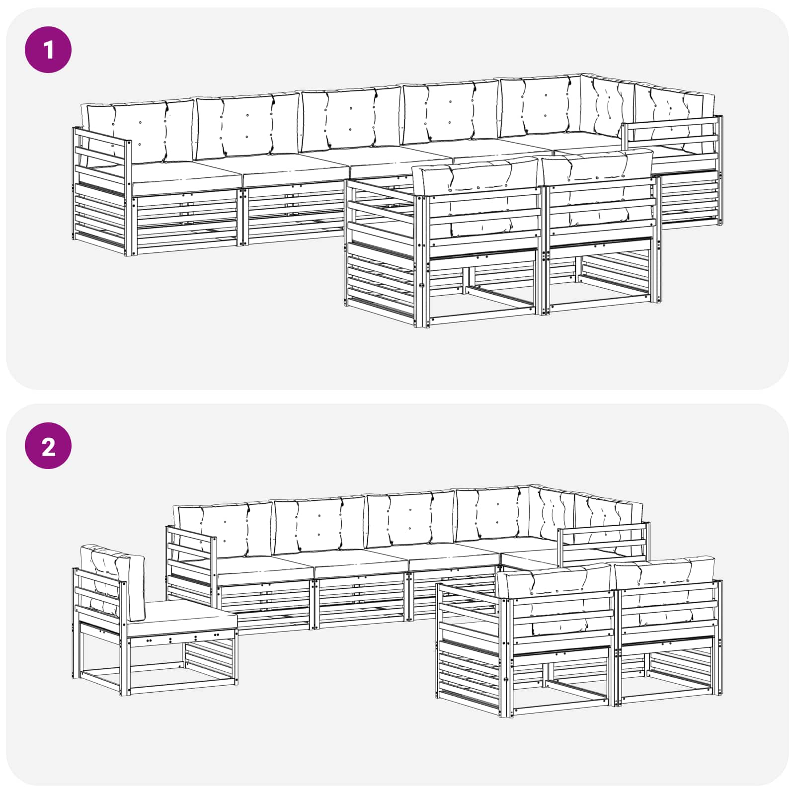 - 8 x sedežna blazina: 80 x 80 x 8 cm (D x Š x V)