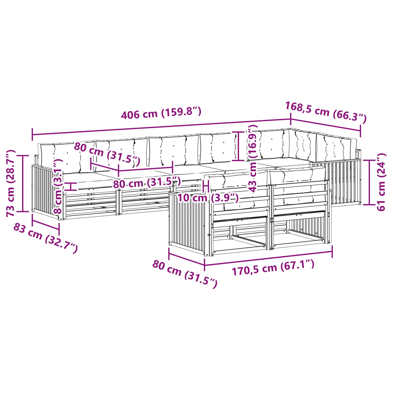 - 8 x sedežna blazina: 80 x 80 x 8 cm (D x Š x V)