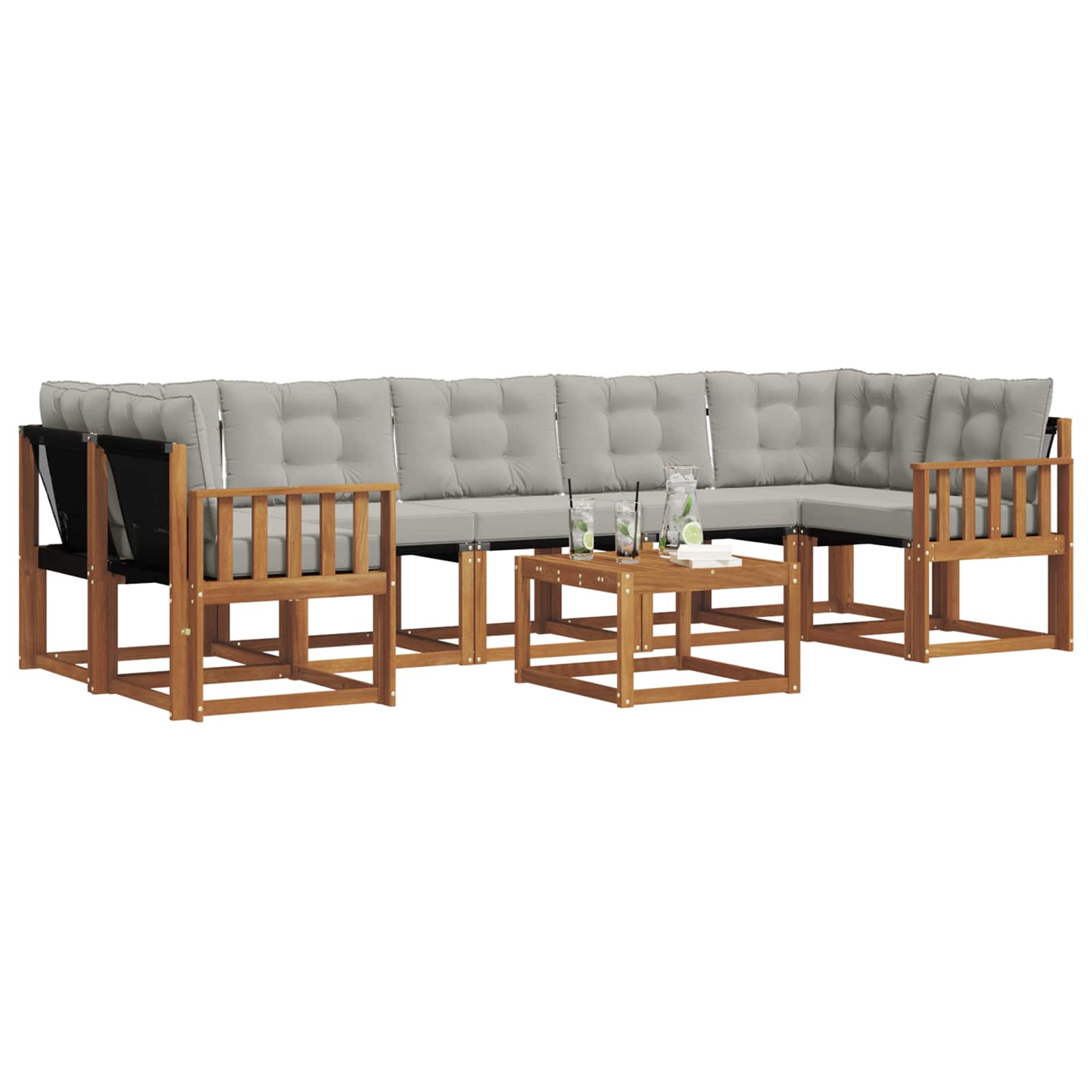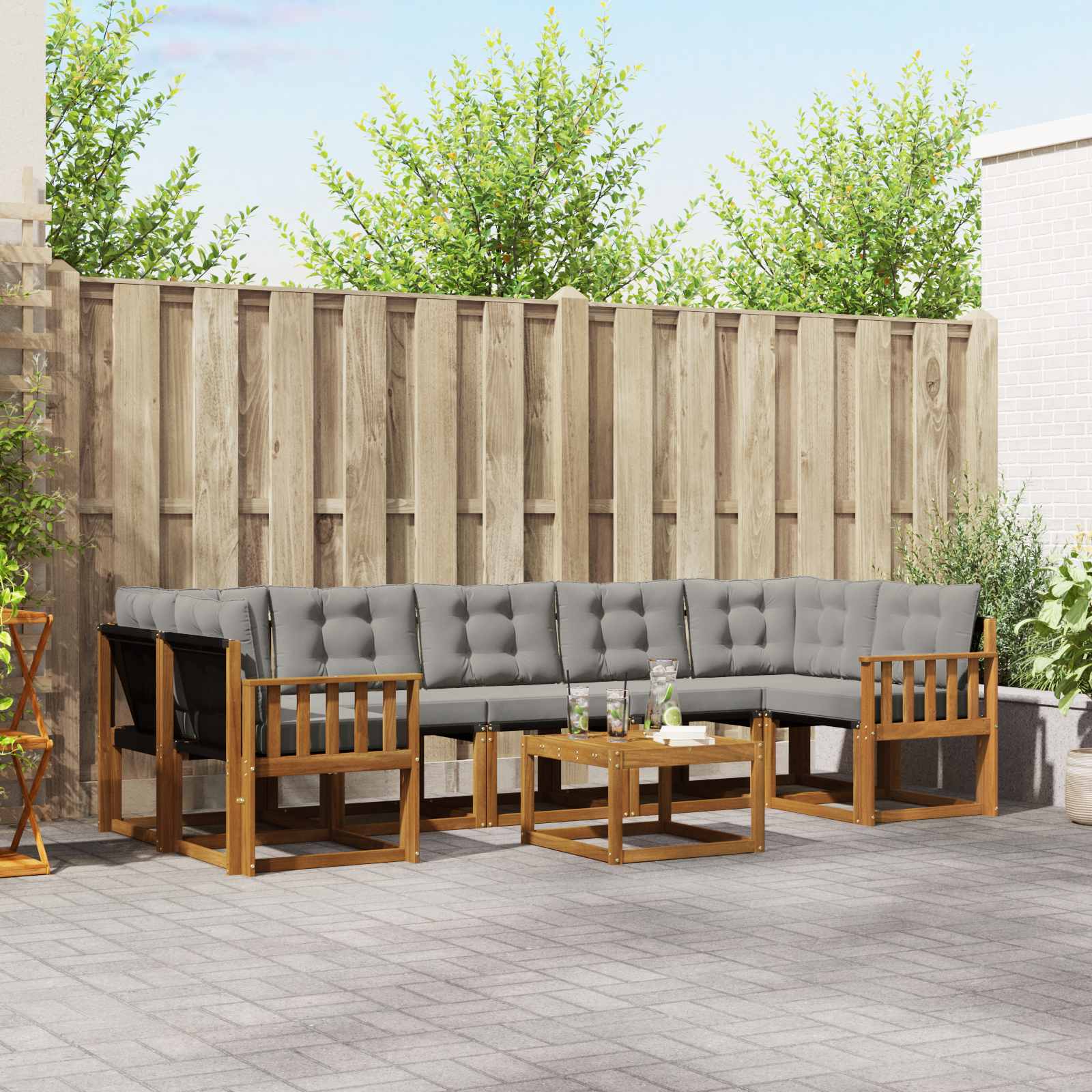 Ta moderni set zof predstavlja idealno izbiro za tiste, ki uživajo v sprostitvi na prostem. Njegova minimalistična zasnova v rjavih odtenkih dvigne vsak vrt ali bazen. Ponuja prijetno vzdušje za druženja, zahvaljujoč kombinaciji topline akacijevega lesa in udobne sedežne površine tekeslina. Ne glede na to, ali gre za poletno zabavo ali samo sproščujoče trenutke, podpira udobje in estetski videz. Materiali: Ta set zof je narejen iz akacijevega lesa, ki je zelo močan in odporen na vlago, kar mu daje dolgoživost na prostem. Skupaj s texilenom ponuja udobje, ki preživi različne vremenske razmere in doda naravno eleganco vsakemu zunanjemu prostoru. Funkcionalna zasnova: Vsaka komponenta seta, od talne plošče do podpore, je zasnovana z namenom izboljšanja uporabniške izkušnje. Slatna plošča omogoča hitro odvajanje dežne vode, tako da preprečuje njeno kopičenje. Podporno naslonjalo poskrbi za optimalno udobje, ko ležite. Praktične lastnosti: Debelo oblazinjene blazine zagotavljajo udobje. Na voljo so tudi zadrge za enostavno čiščenje ali zamenjavo, kar podaljšuje njihovo življenjsko dobo in omogoča enostavno vzdrževanje. Različne uporabnosti: Idealno za vrt, patio ali bazen, ta komplet zof je zelo vsestranski in ustreza različnim potrebam uporabnikov. Njegov sodoben dizajn omogoča prilagoditev različnim okoljem za sprostitev ali družabne aktivnosti. Nizko vzdrževanje: Zelo enostavno je vzdrževati ta set zof. Preprosto obrišite z vlažno krpo, da ostane videti odlično, medtem ko je texilen odporen na bledik. To nizko vzdrževanje zagotavlja, da komplet ostane v formi in vabljiv skozi vse leto.
