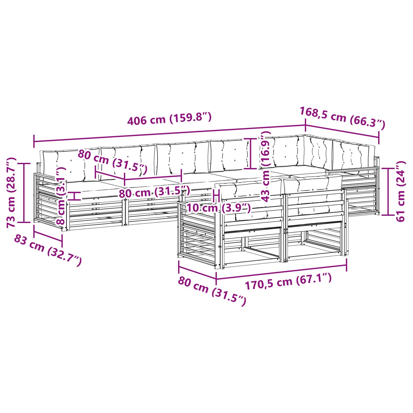- 8 x sedežna blazina: 80 x 80 x 8 cm (D x Š x V)