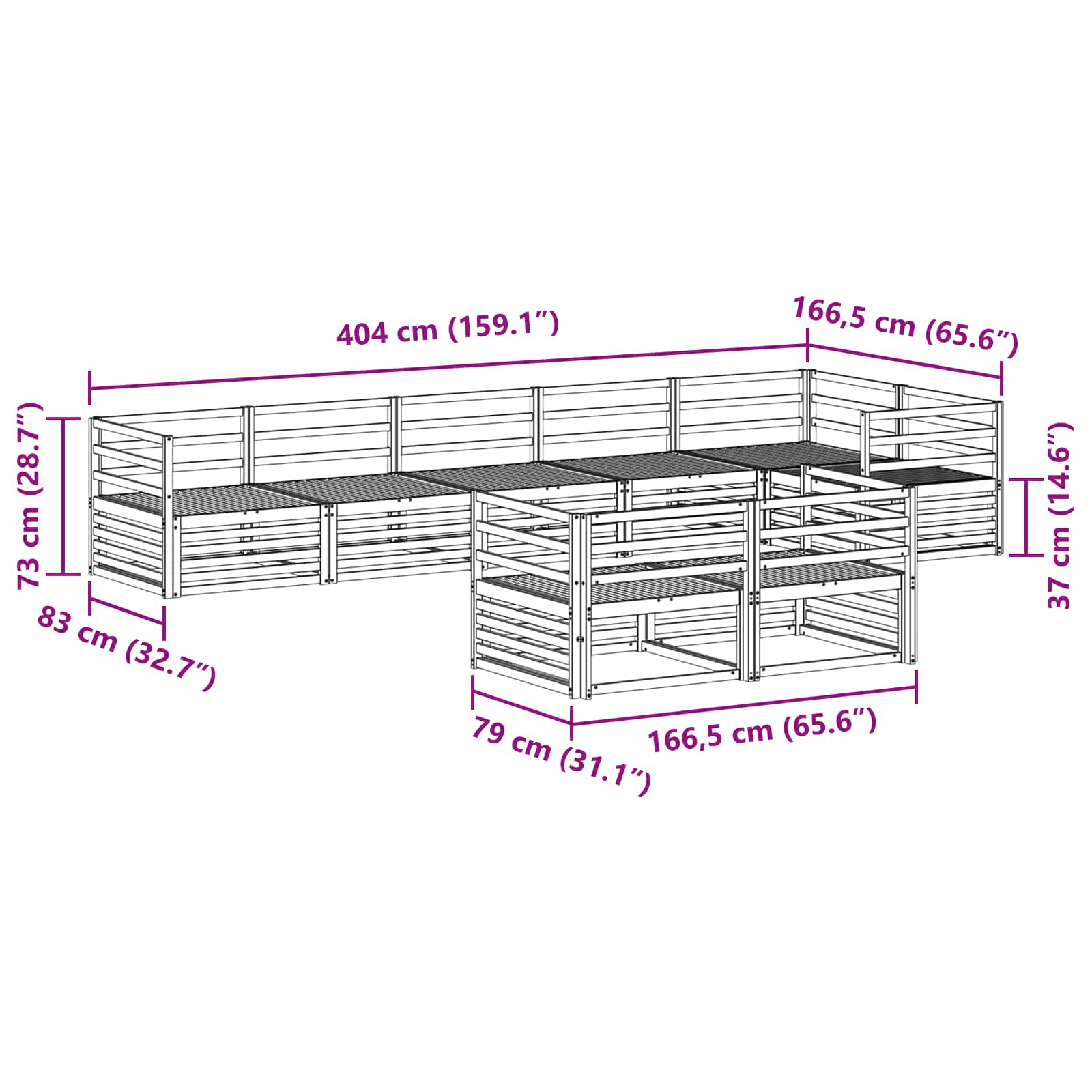 - 7 x Srednji kavč: 79 x 83 x 73 cm (Dolžina x Širina x Višina)